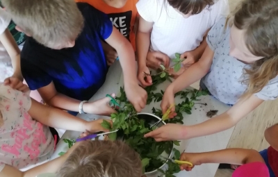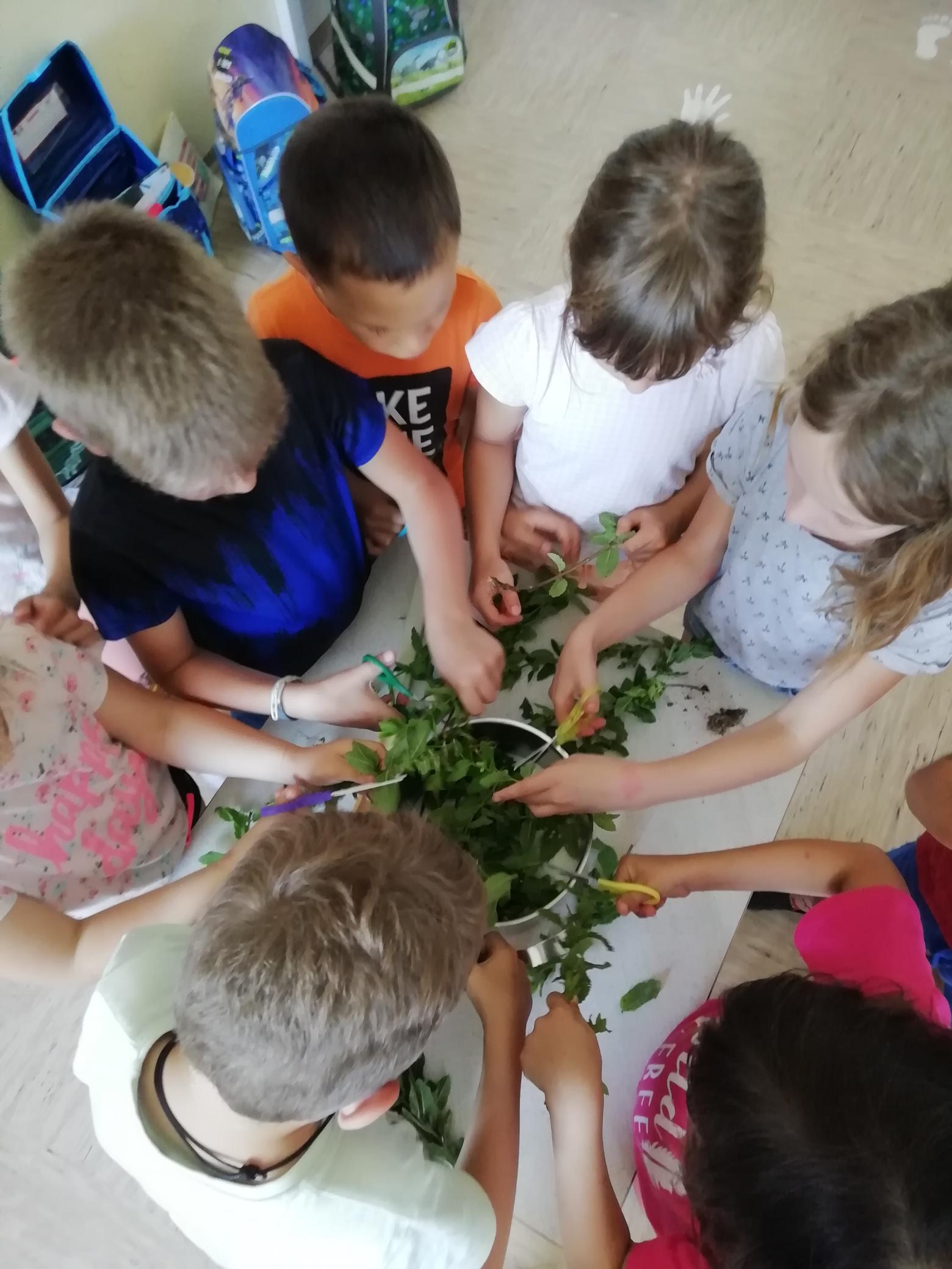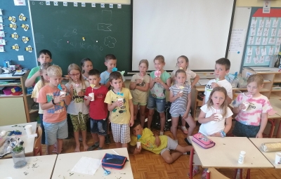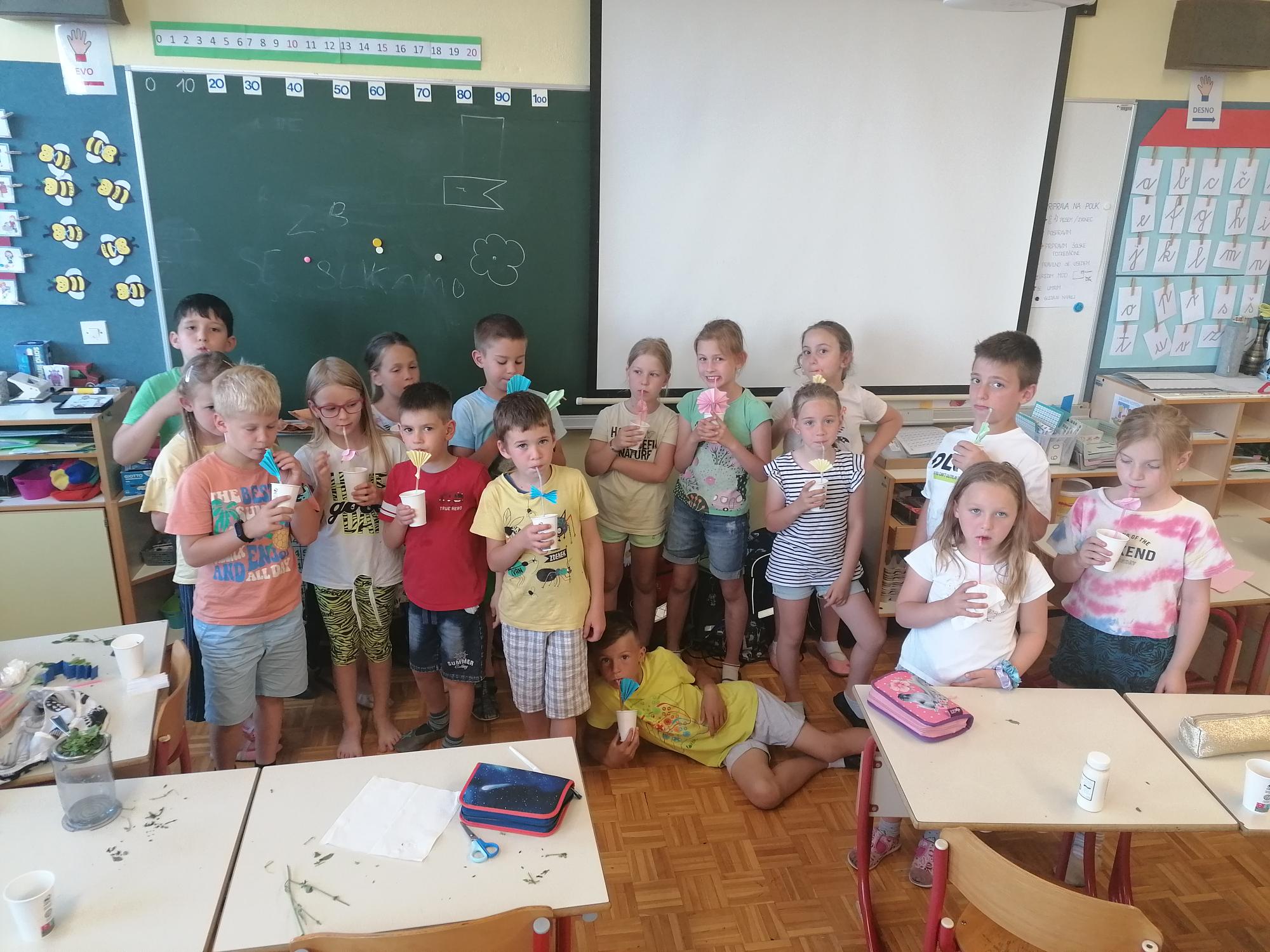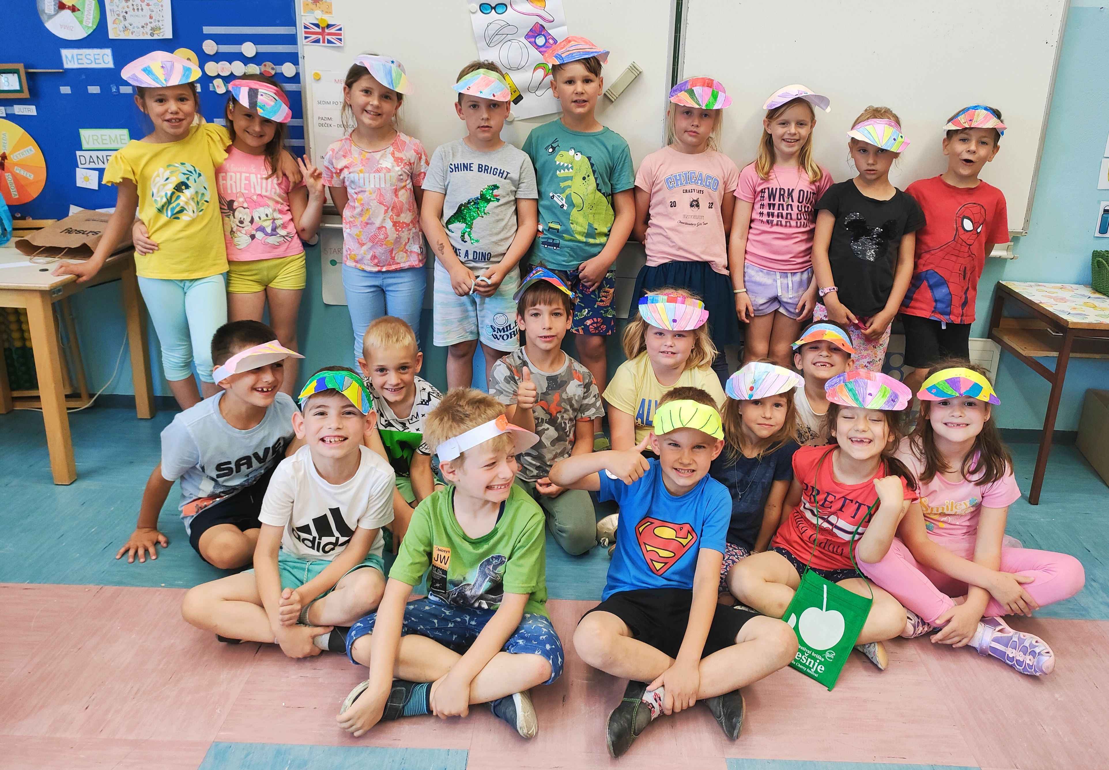V mesecu juniju so se otroci prvih in drugih razredov podaljšanega bivanja na matični šoli ter prvega razreda na podružnični šoli že drugo leto pridružili projektu Varno s soncem. S tem preventivnim programom smo jih učitelji skušali opozarjati na pomen pravilne zaščite pred škodljivim delovanjem sončnih žarkov. Spoznali smo načine, kako se pred soncem zaščititi. V ta namen smo organizirali več različnih dejavnosti. Pogovarjali smo se ob filmčku o pravilni zaščiti pred soncem, oblikovali smo plakate, izdelovali smo kape iz papirja, likovno ustvarjali o soncu ter se tudi hladili z napitkom iz mete ter melise. Pazili smo, da se nismo preveč izpostavljali soncu, ker je ravno v času podaljšanega bivanja sonce najmočnejše.