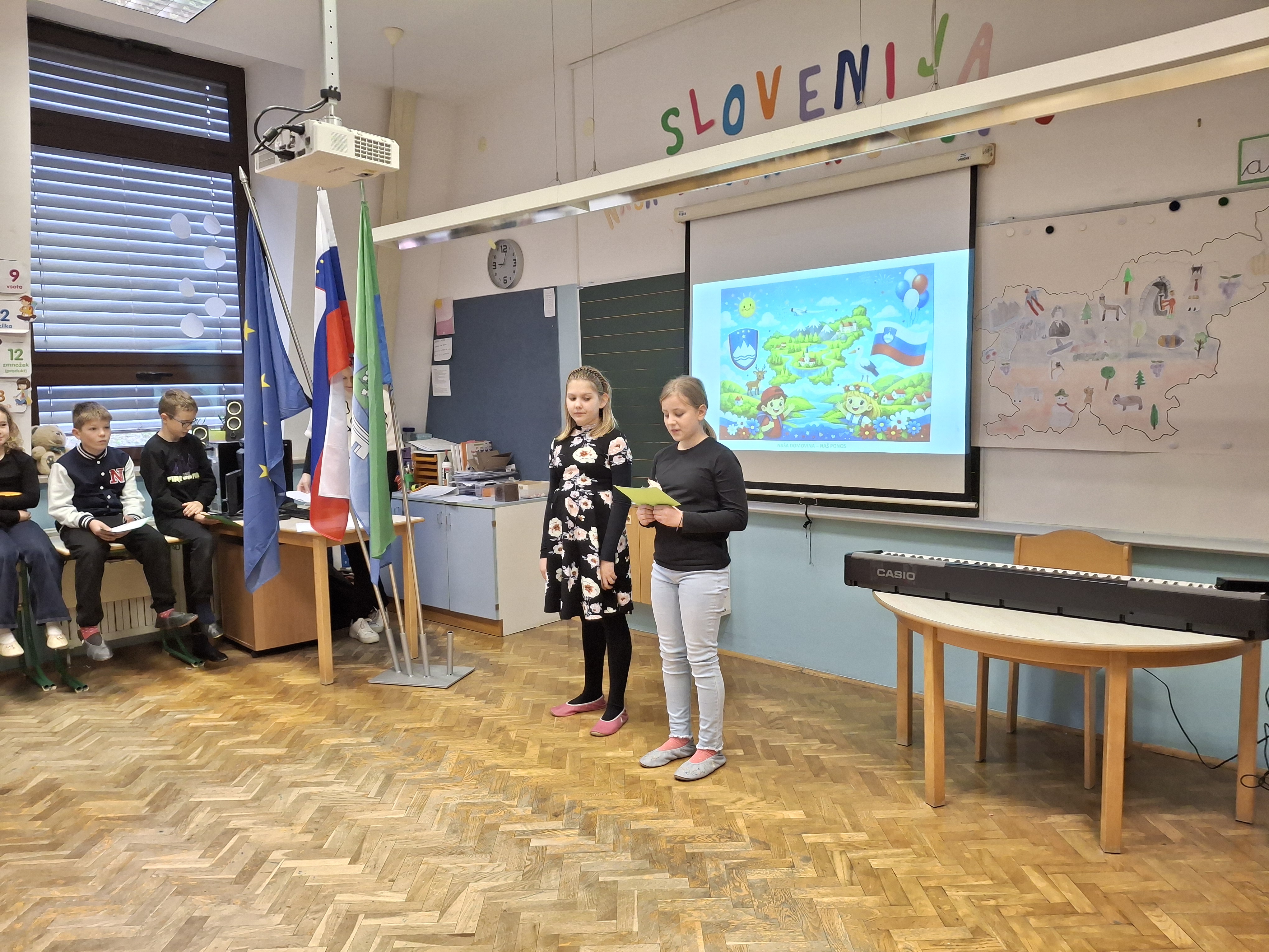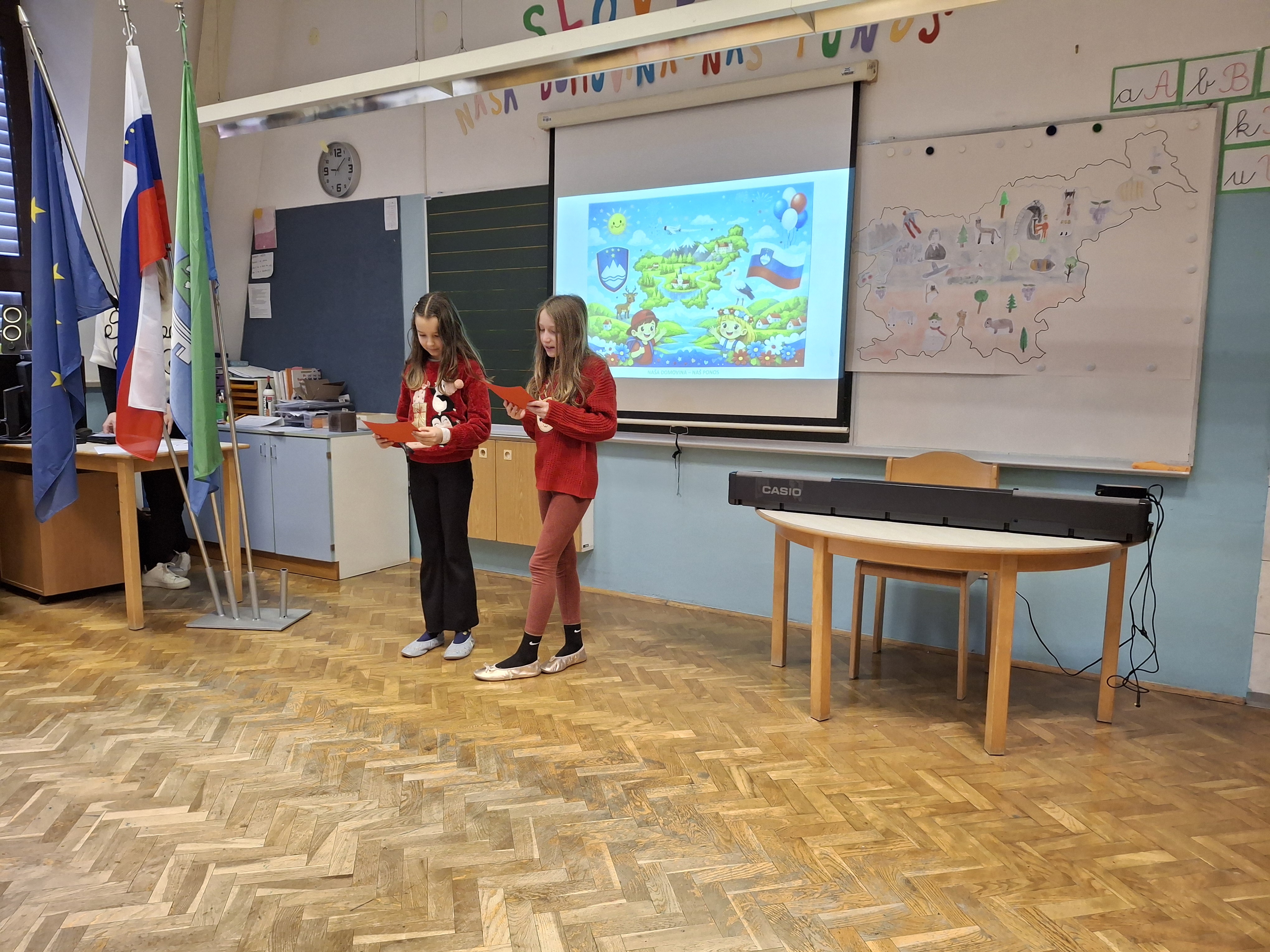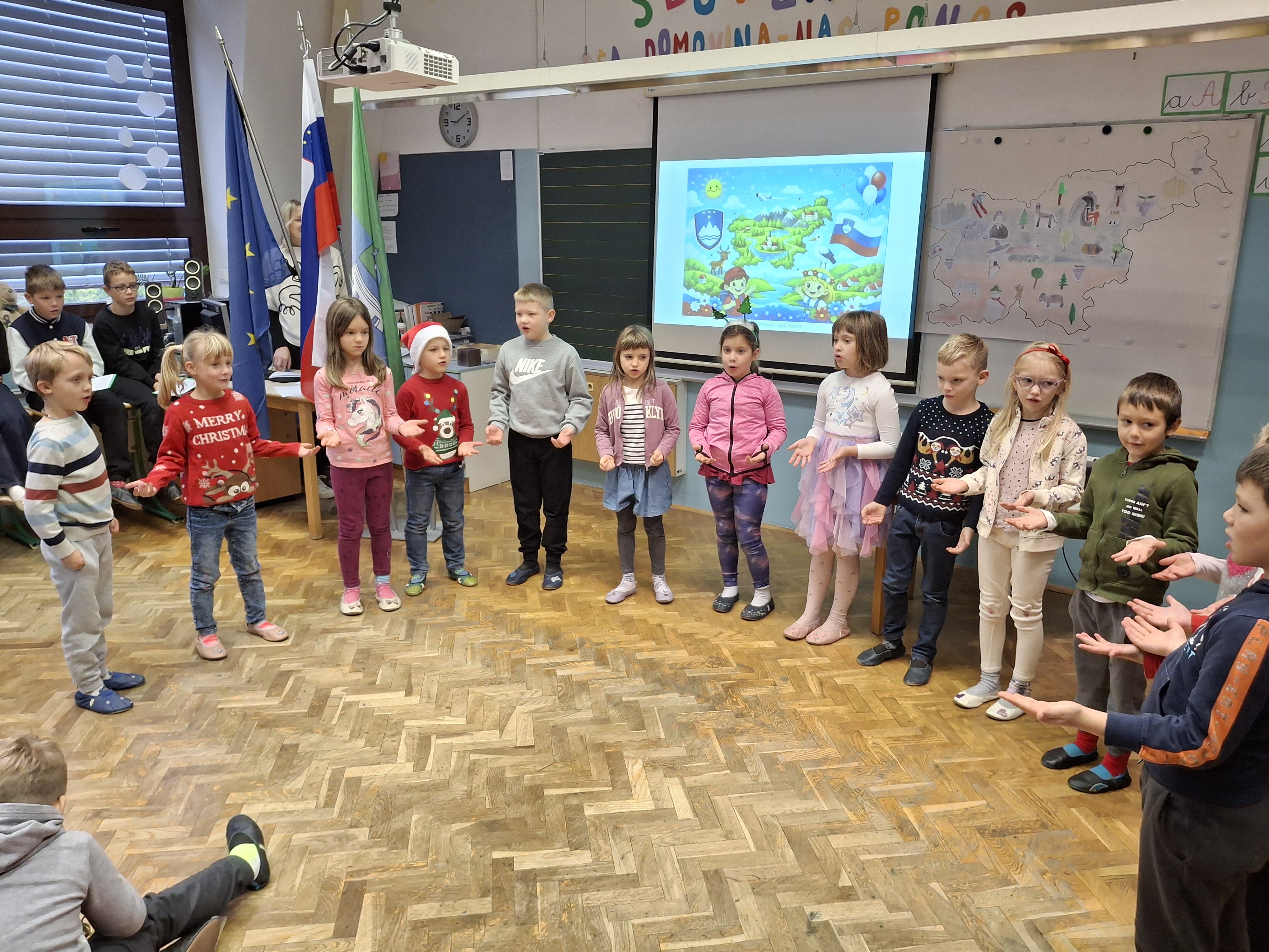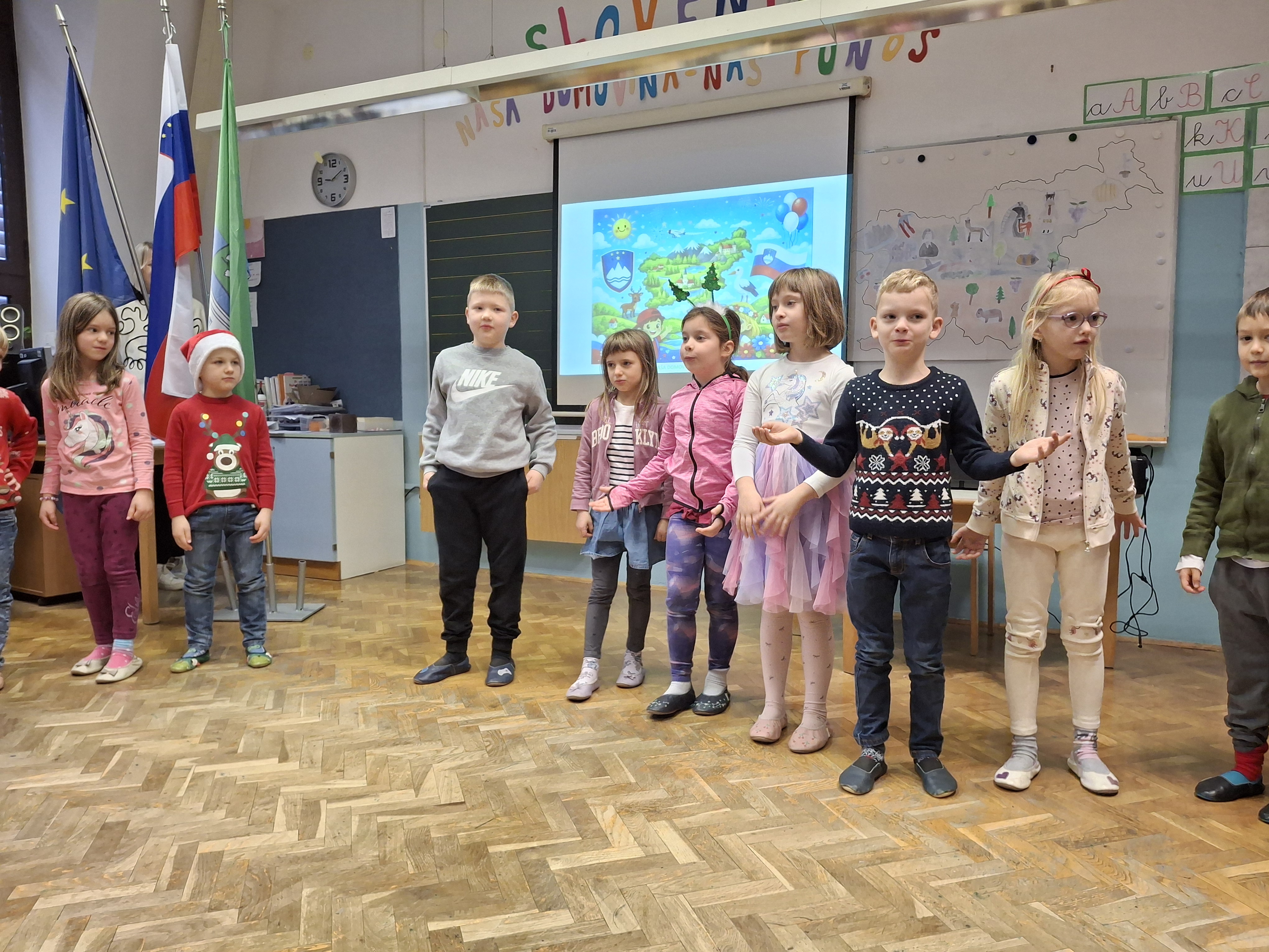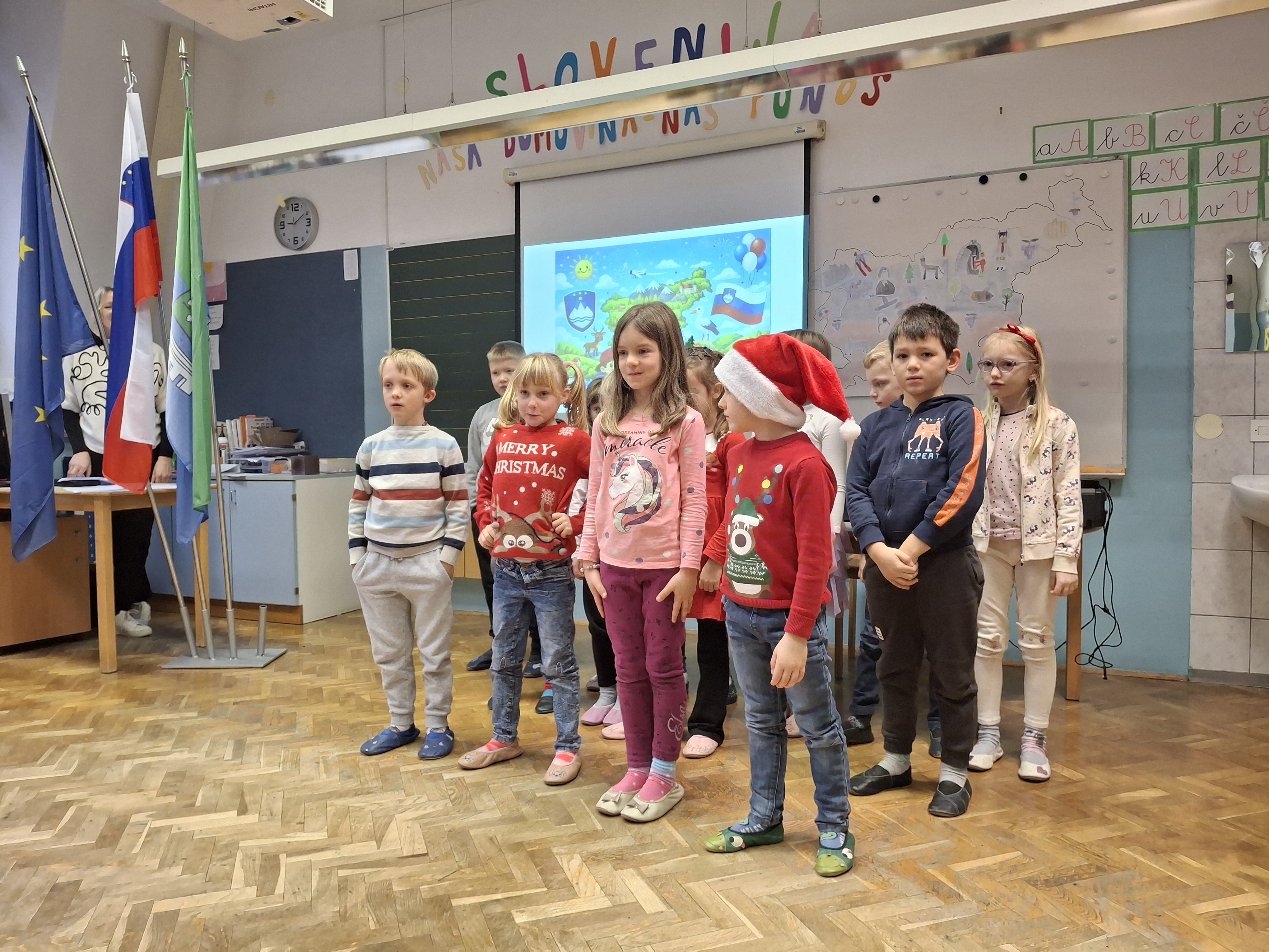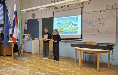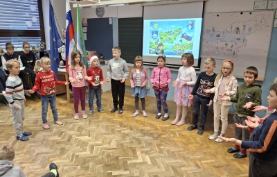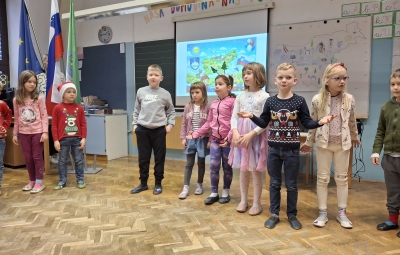Na podružnični šoli smo obeležili dan samostojnosti in enotnosti s posebno proslavo, ki je povezala zgodovinski spomin in praznično veselje. V prvem delu prireditve smo se posvetili pomenu in razlagi tega pomembnega državnega praznika. Z nastopi so učenci želeli poudariti tudi pomen domoljubja ter nas spodbuditi, da smo ponosni na svojo domovino in vrednote, na katerih je zrasla. Drugi del proslave je bil obarvan bolj praznično. V duhu prihajajočih božično-novoletnih praznikov so učenci pripravili raznolike nastope – pesmi, glasbene točke, recitacije, ples in igrico –, s katerimi so ustvarili veselje in praznično vzdušje.