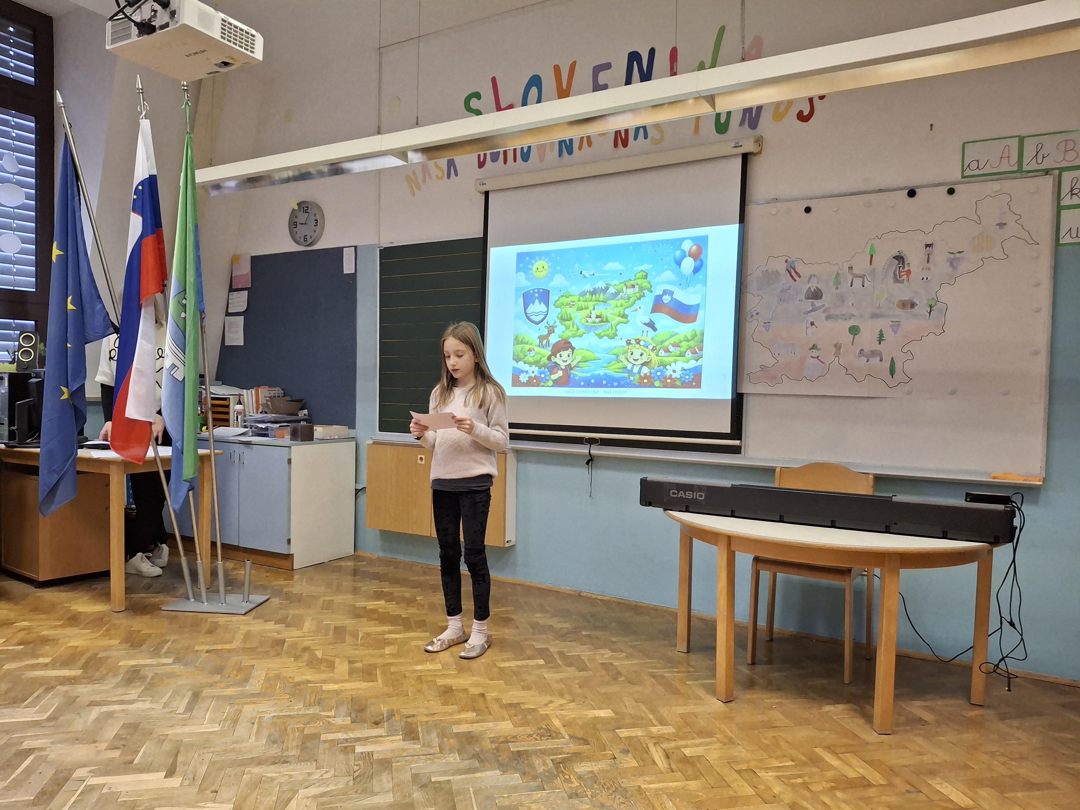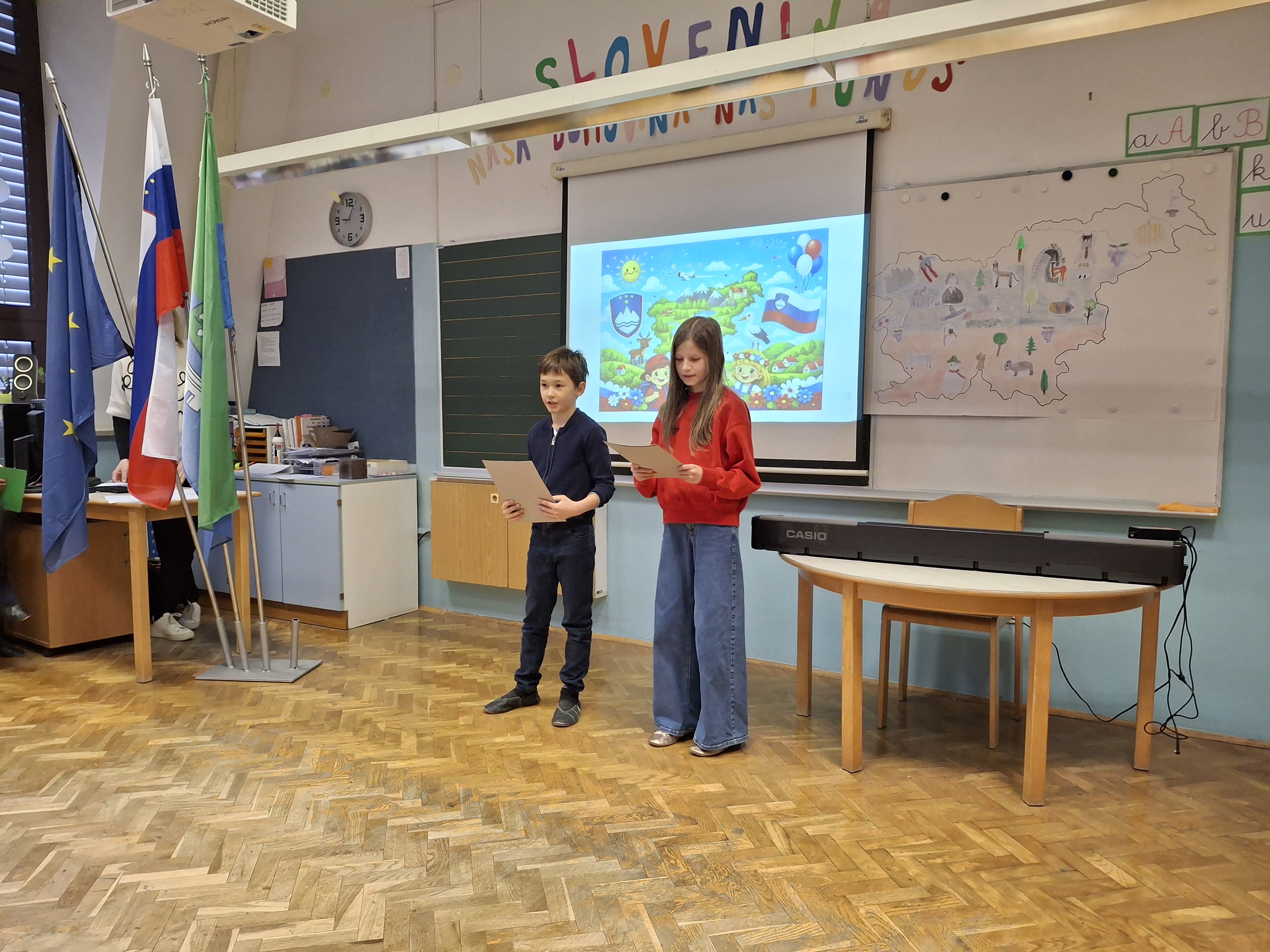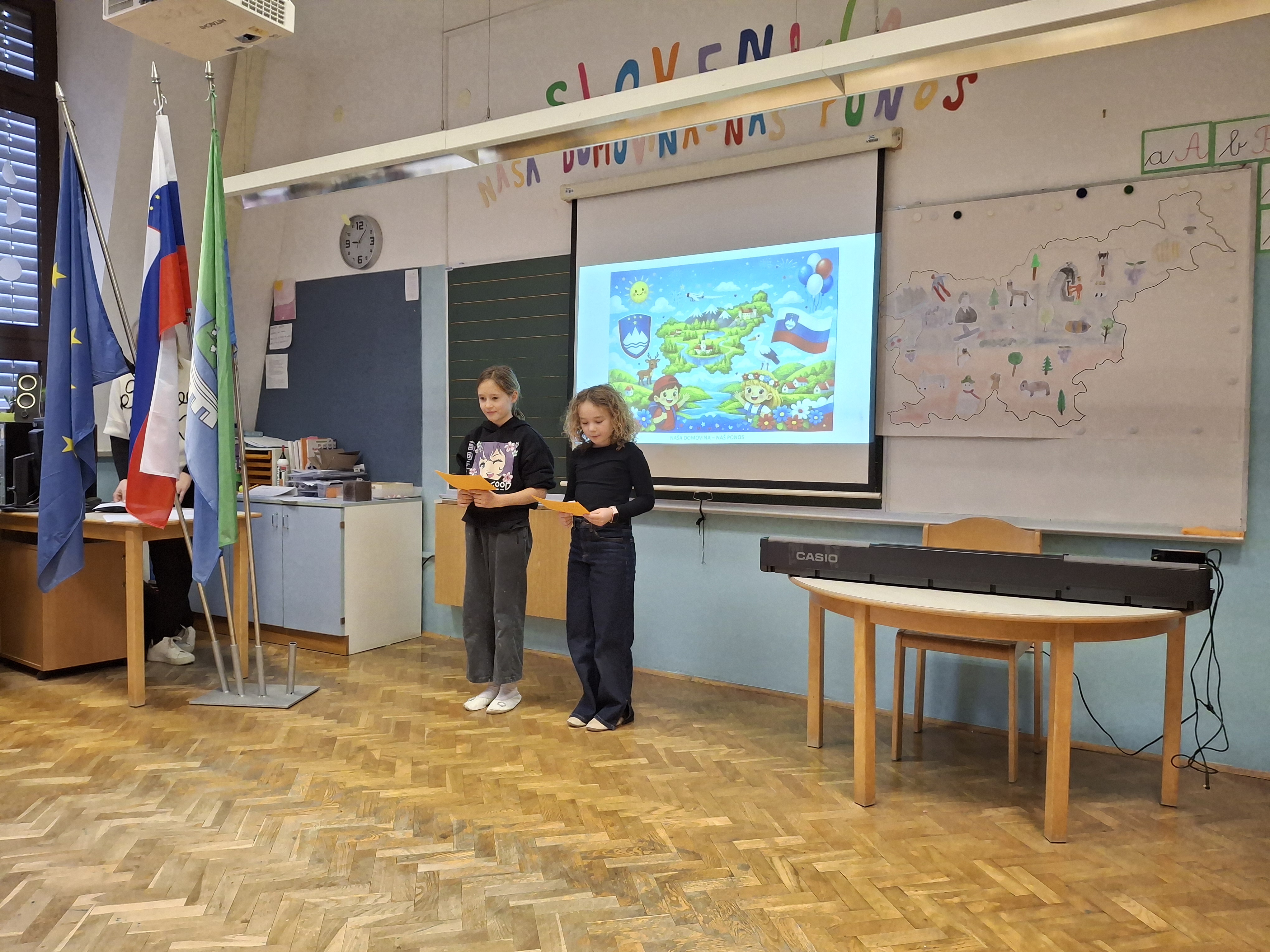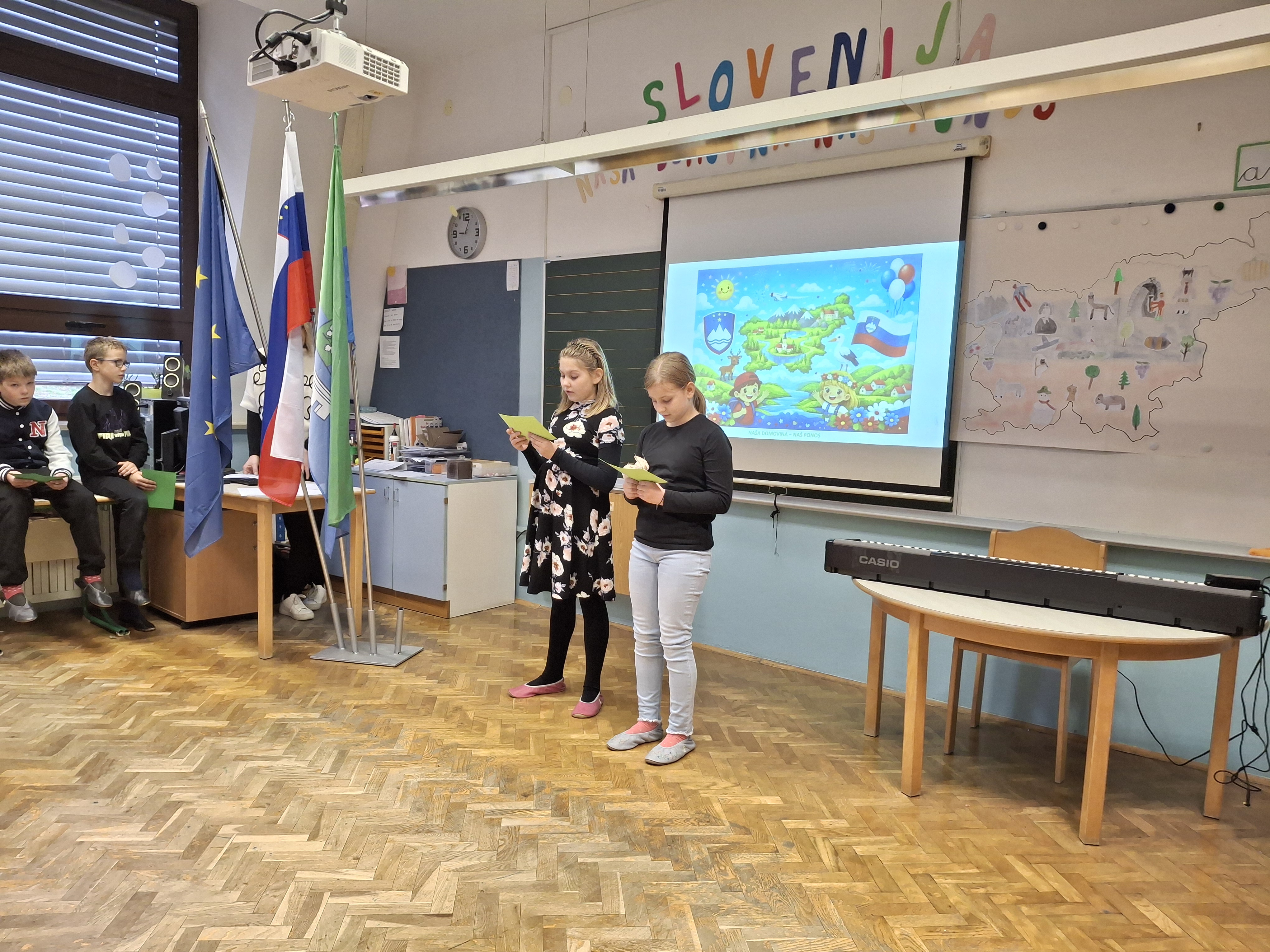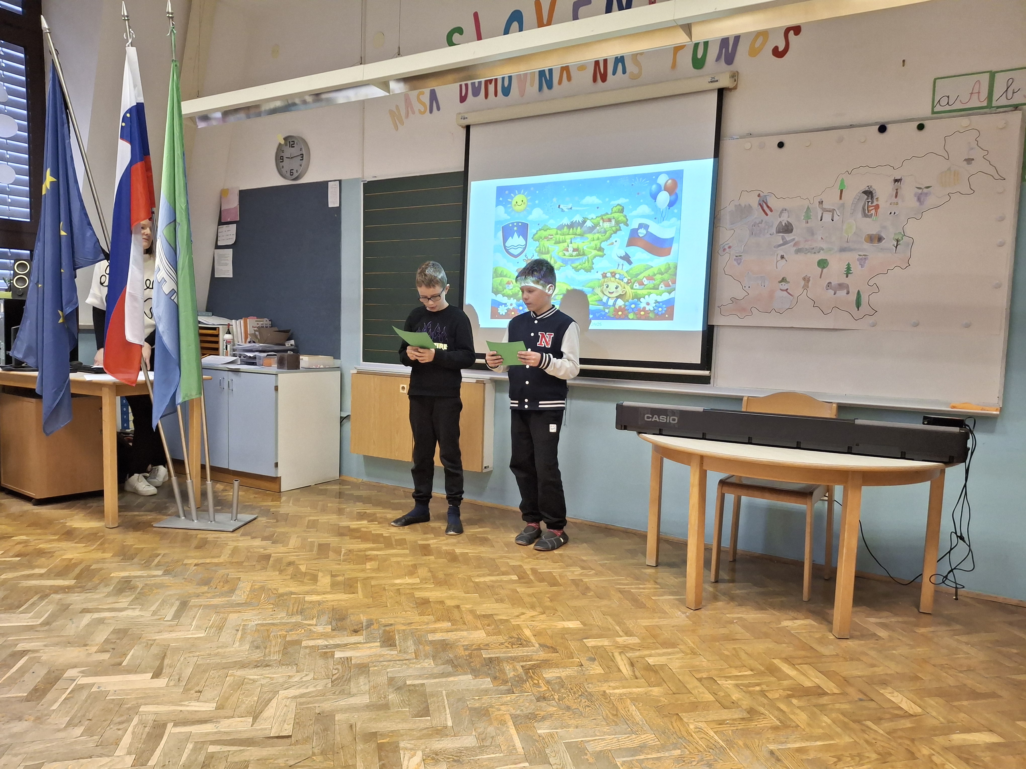 Na podružnični šoli smo obeležili dan samostojnosti in enotnosti s posebno proslavo, ki je povezala zgodovinski spomin in praznično veselje. V prvem delu prireditve smo se posvetili pomenu in razlagi tega pomembnega državnega praznika. Z nastopi so učenci želeli poudariti tudi pomen domoljubja ter nas spodbuditi, da smo ponosni na svojo domovino in vrednote, na katerih je zrasla. Drugi del proslave je bil obarvan bolj praznično. V duhu prihajajočih božično-novoletnih praznikov so učenci pripravili raznolike nastope – pesmi, glasbene točke, recitacije, ples in igrico –, s katerimi so ustvarili veselje in praznično vzdušje.