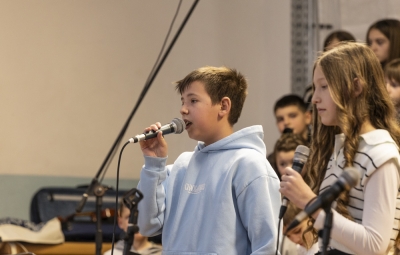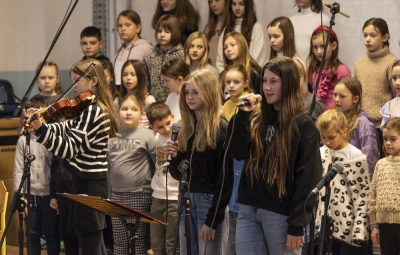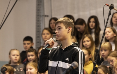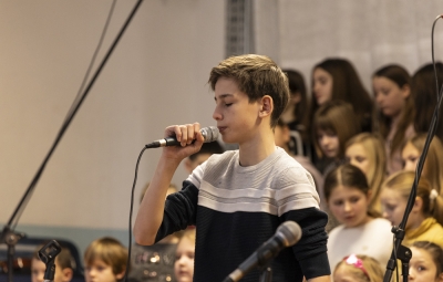 V petek, 7. 2., smo Prešernov dan počastili s proslavo, ki smo jo naslovili Melodije sveta, srce doma. Po uvodni himni smo poudarili tudi pomen drugih dveh slovenskih simbolov – zastave in grba. Nastopajoči pevci solisti, otroški pevski zbor, inštrumentalisti, deklamatorji in plesalci so v bogatem programu ubrano povezali melodije iz različnih koncev sveta ter se s pesmijo in besedo vrnili domov, v Slovenijo, kjer ostaja naše srce. Zbrane je nagovoril tudi gospod ravnatelj, ki se je zahvalil vsem nastopajočim in njihovim mentorjem ter poudaril pomen kulture v našem življenju. Ob tej priložnosti smo tudi otvorili stalno razstavo Marjana Mančka in Silvana Omerzuja v naši knjižnici.