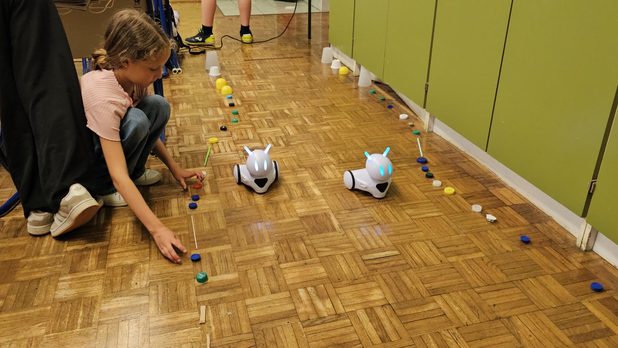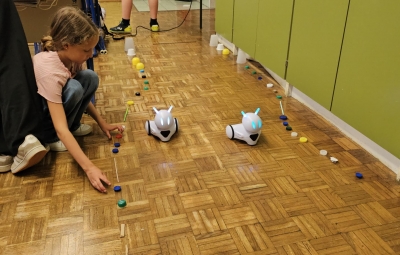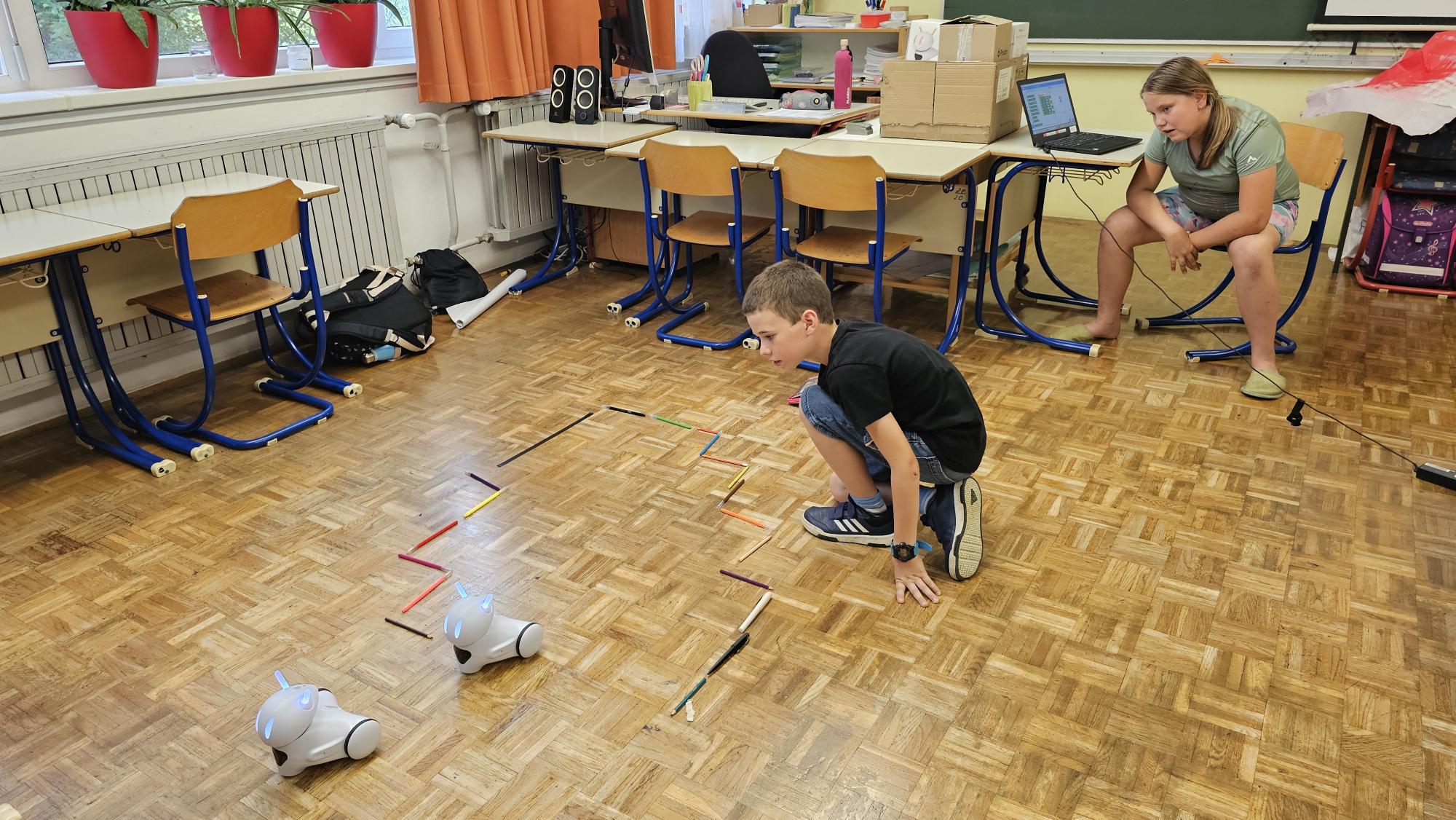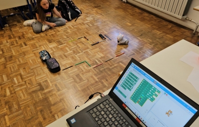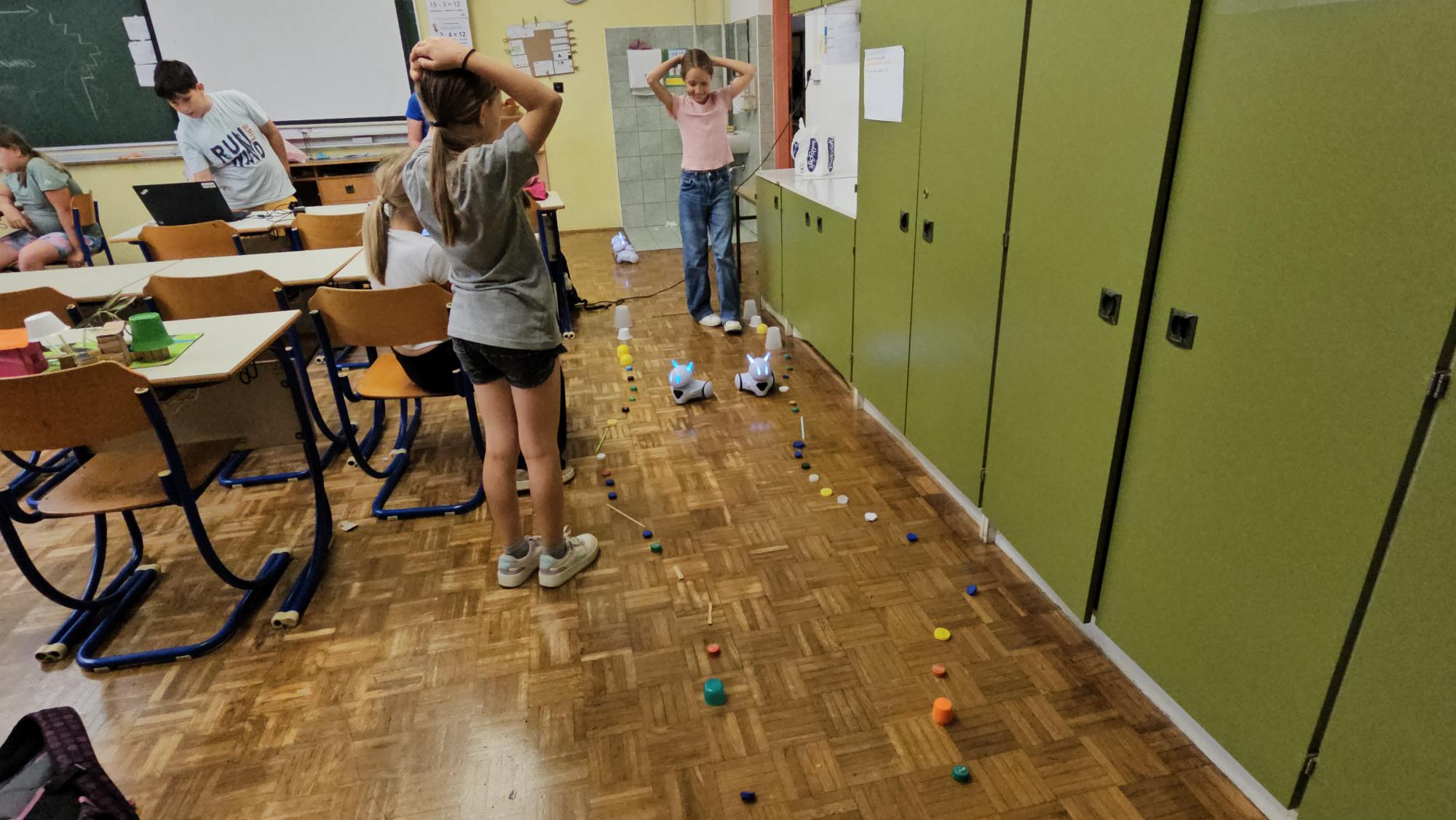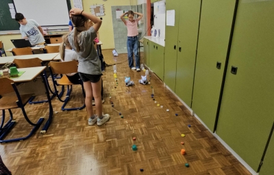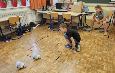 Vsaka skupina je pripravila poligon, po katerem je morala s pomočjo pravilnih ukazov na računalniku svojega robota pripeljati od začetka do konca, ne da bi se zaletel v ovire.
