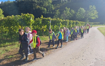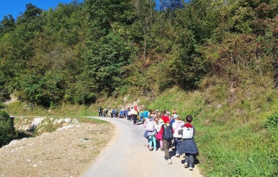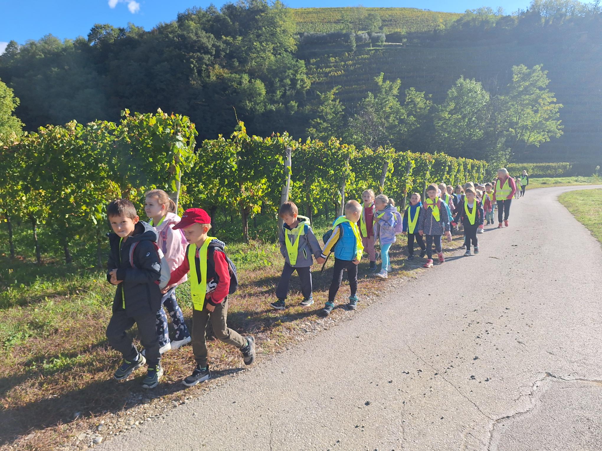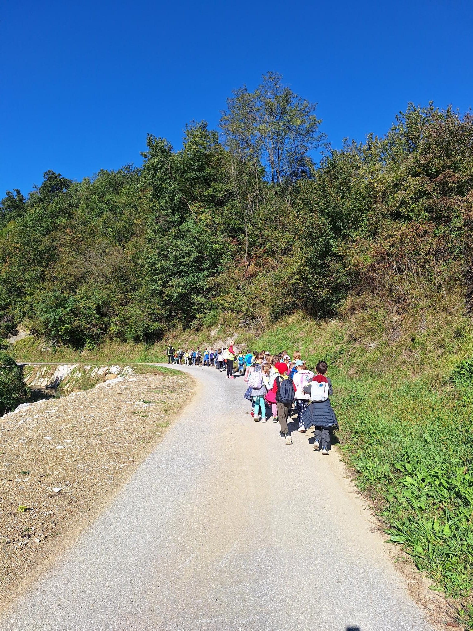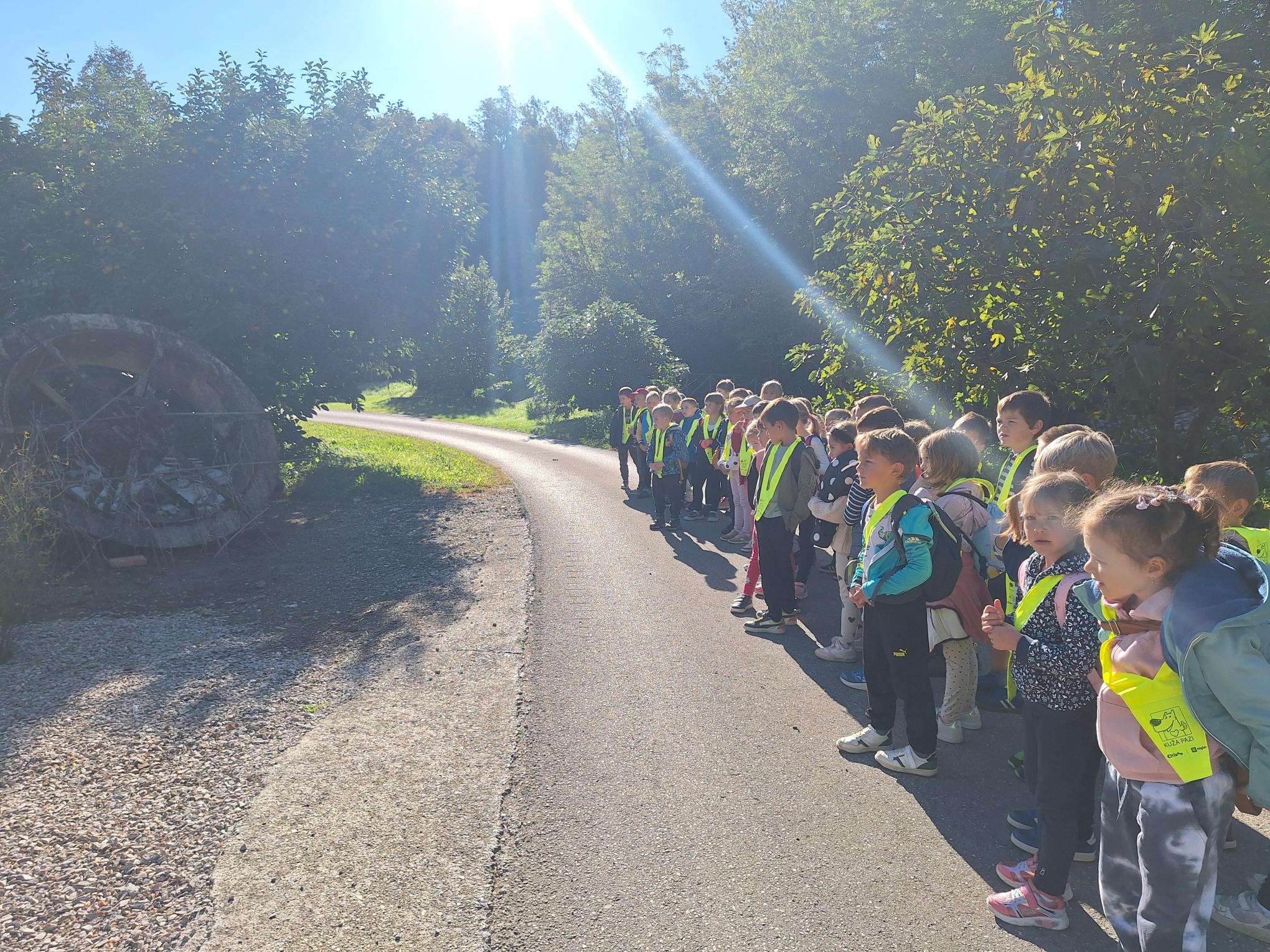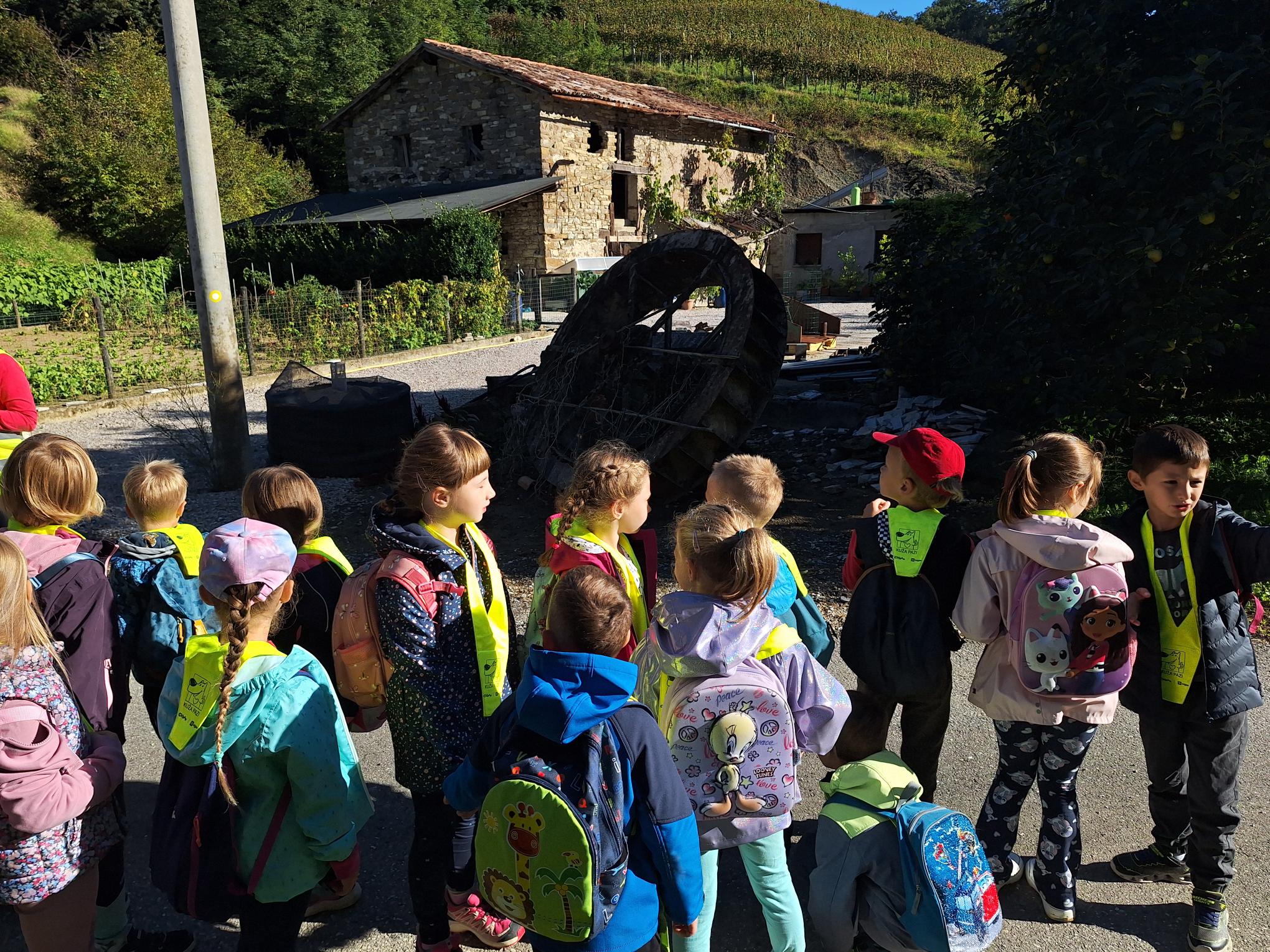 Na sončno, a nekoliko hladno jesensko jutro smo se prvošolci podali na naš prvi pohod. Po kratkem osvežitvenem pogovoru o varnosti v prometu smo veselo zakorakali proti Vedrijanu. Naš cilj je bil ogled starega mlina oziroma kot pravijo domačini Mlini.