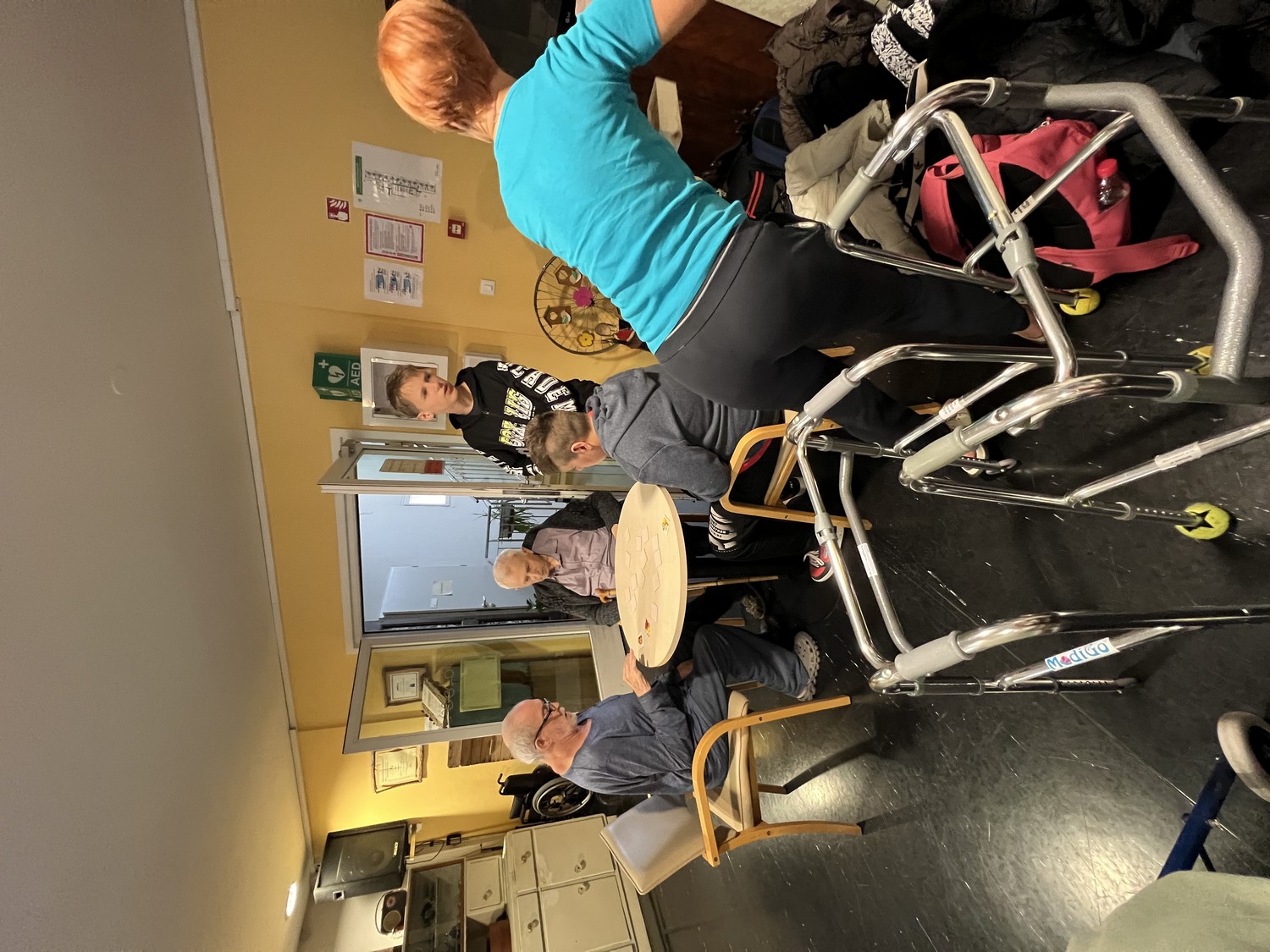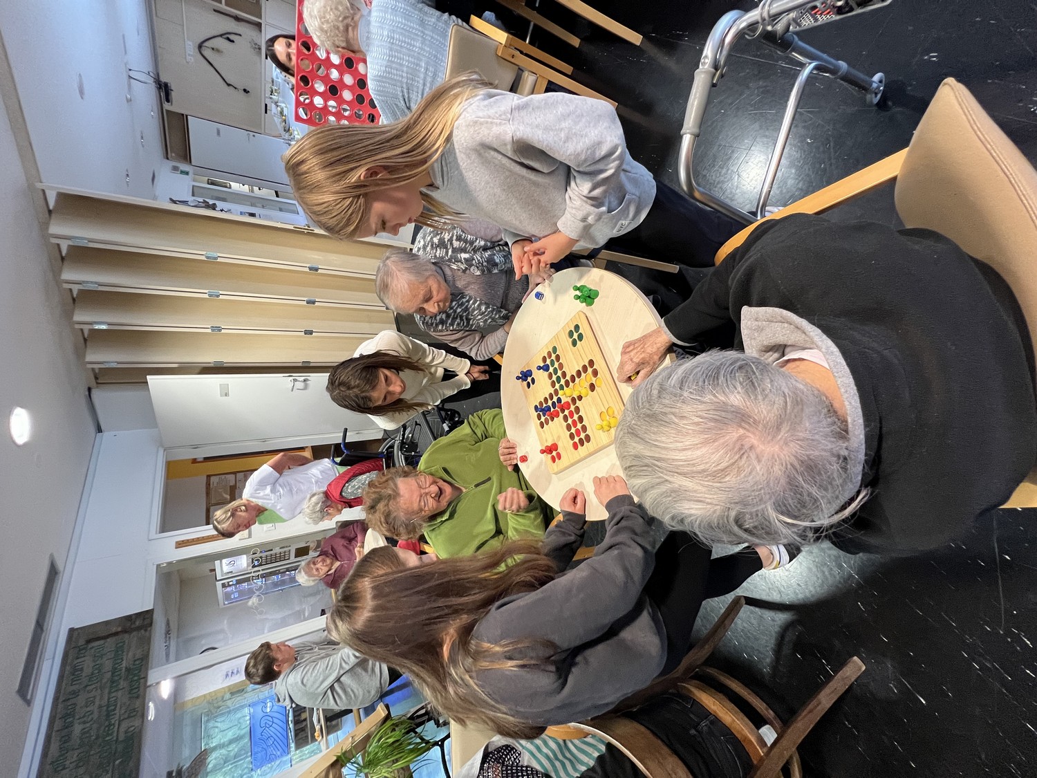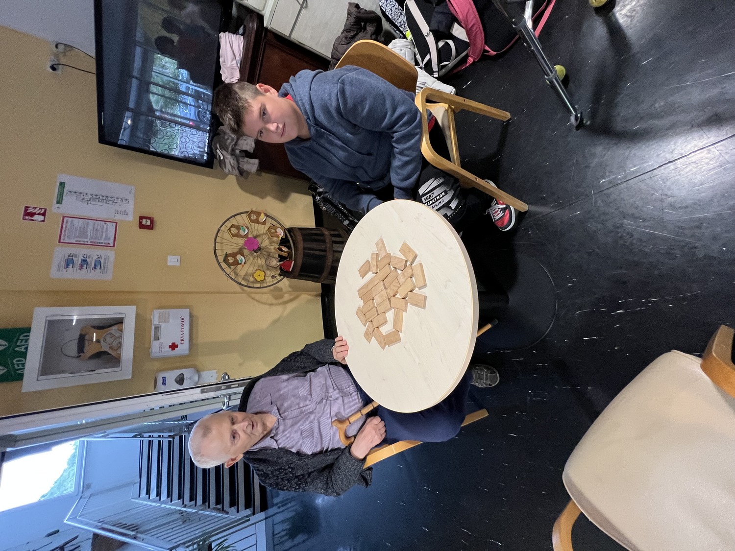 V sredo, 18.oktobra, so se naši učenci prvič po nekajletnem odmoru srečali s stanovalci doma v Podsabotinu. Z različnimi pričakovanji so učenci vstopili v stavbo in z negotovostjo pričakovali prihod stanovalcev v skupni prostor. Ni bilo potrebno dolgo čakati, da so stekle družabne igre in se je prostor napolnil z glasnim pogovarjanjem.
