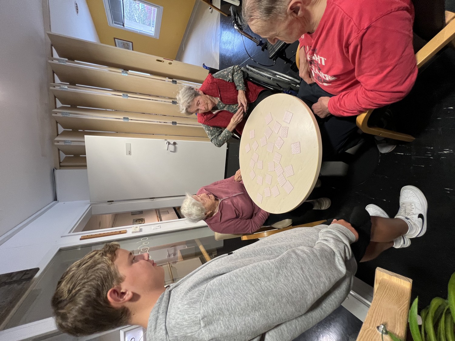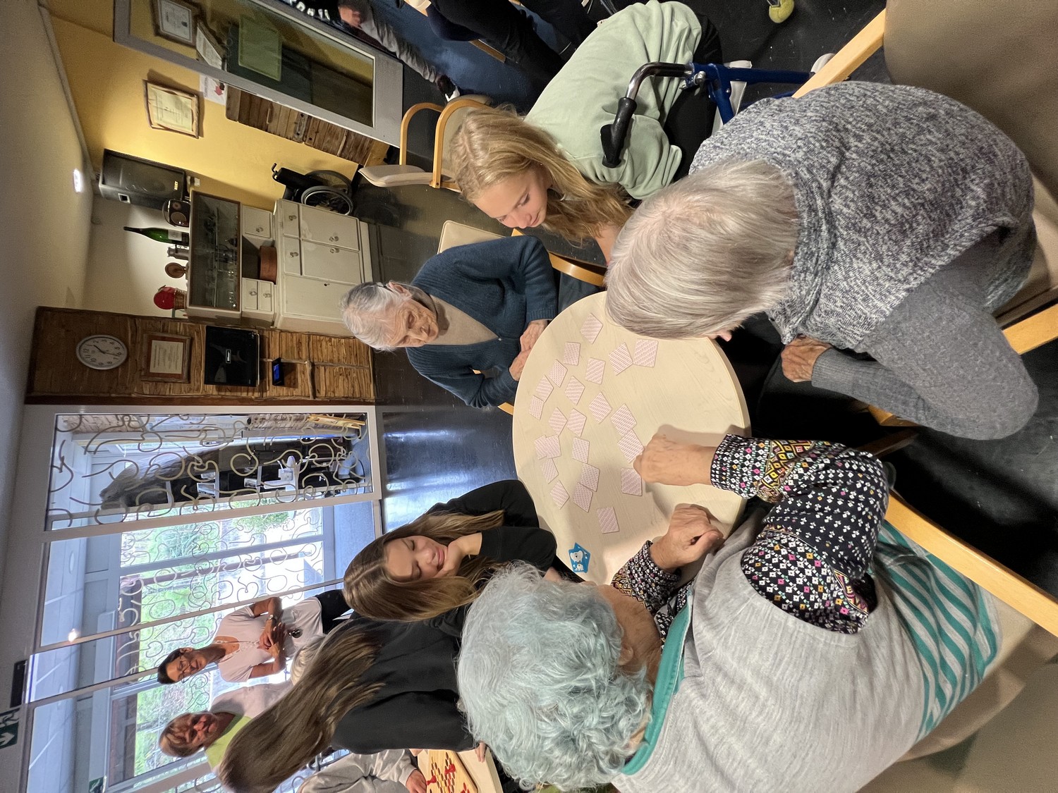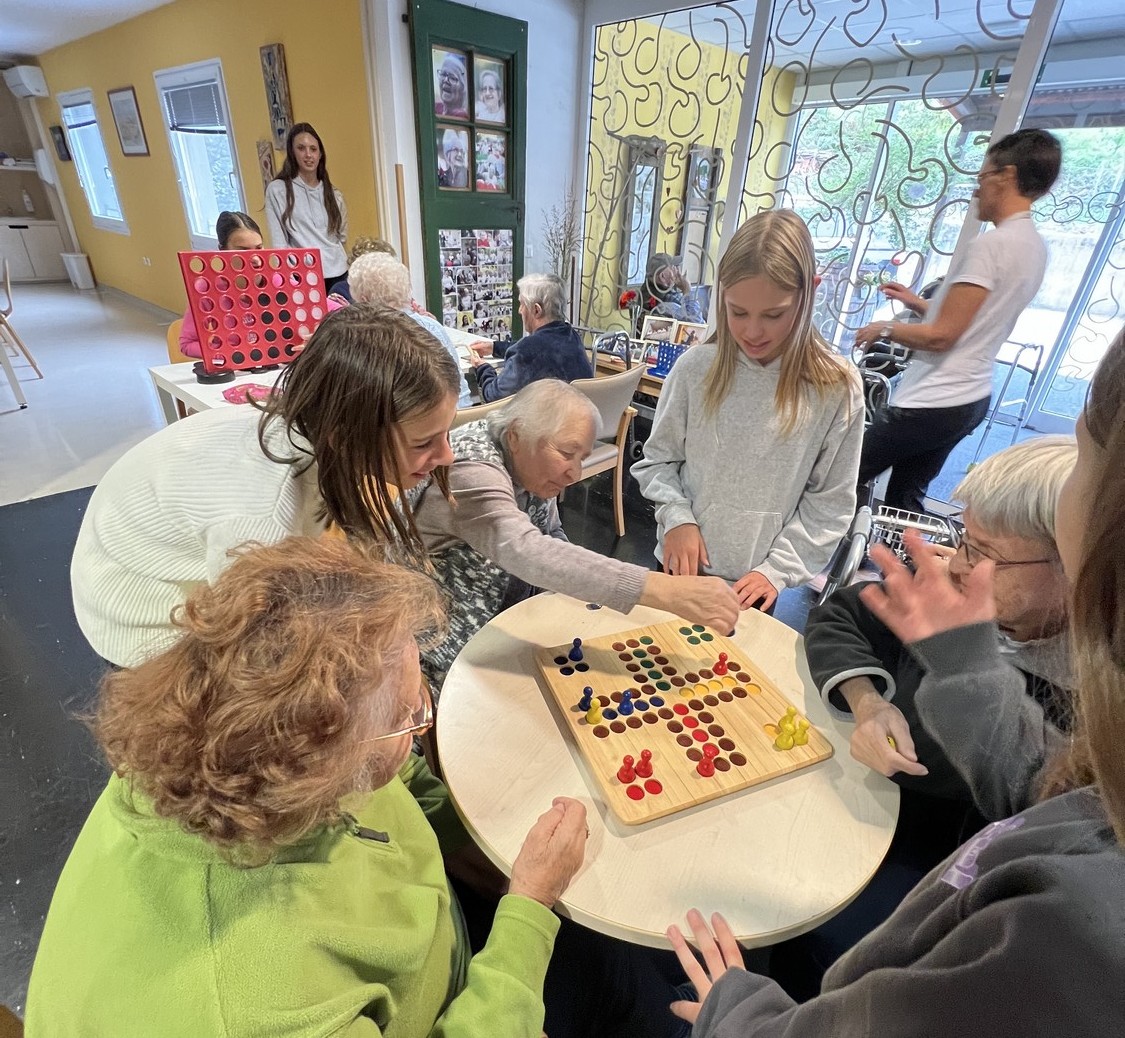 V sredo, 18.oktobra, so se naši učenci prvič po nekajletnem odmoru srečali s stanovalci doma v Podsabotinu. Z različnimi pričakovanji so učenci vstopili v stavbo in z negotovostjo pričakovali prihod stanovalcev v skupni prostor. Ni bilo potrebno dolgo čakati, da so stekle družabne igre in se je prostor napolnil z glasnim pogovarjanjem.