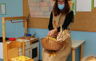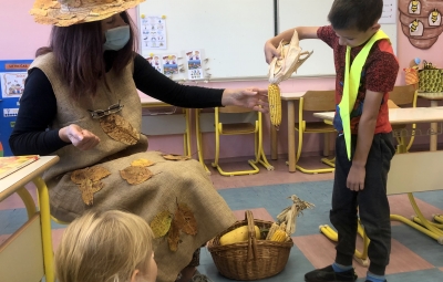 Učencem je prebrala pravljico in jim prinesla jesenske plodove. Naročila jim je, naj pozorno opazujejo njeno delo v naravi.