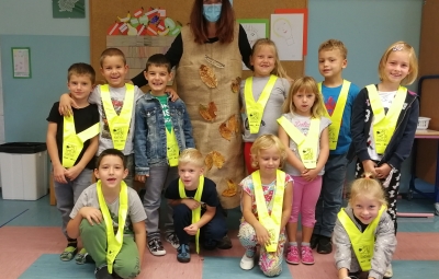 Prvi jesenski dan je bil za prvošolce še zlasti poseben dan. Zjutraj jim je na vrata potrkala tetka Jesen.