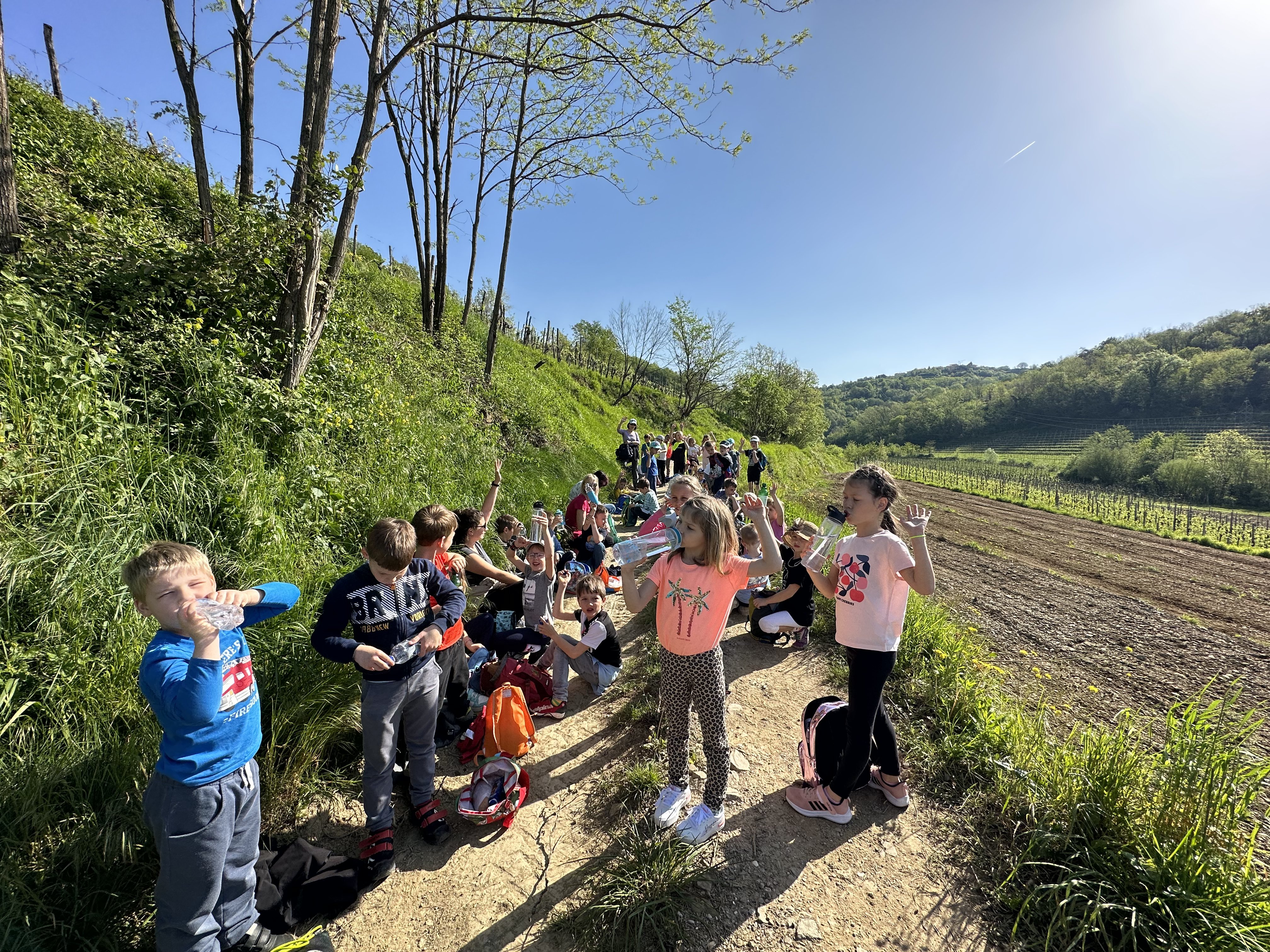 Na topel pomladni dan smo se prvošolci z matične in podružnične šole skupaj odpravili na pohod do vasi Vedrijan. Med potjo sta nas spremljali pesem in dobra volja. Še zdaj za nami odmeva Kekčeva pesem ...
