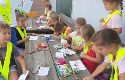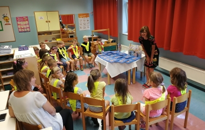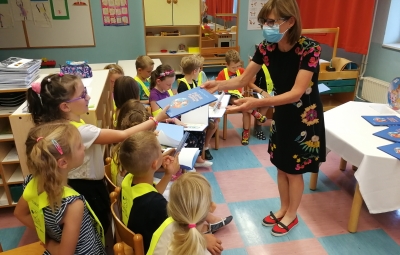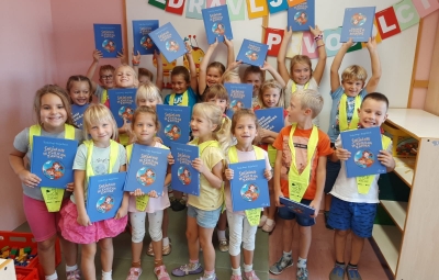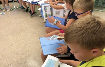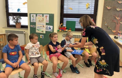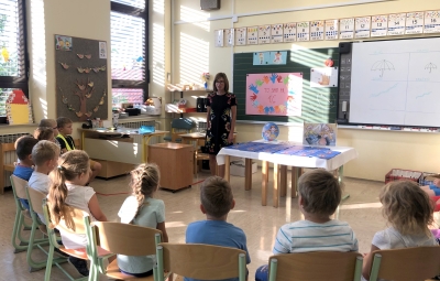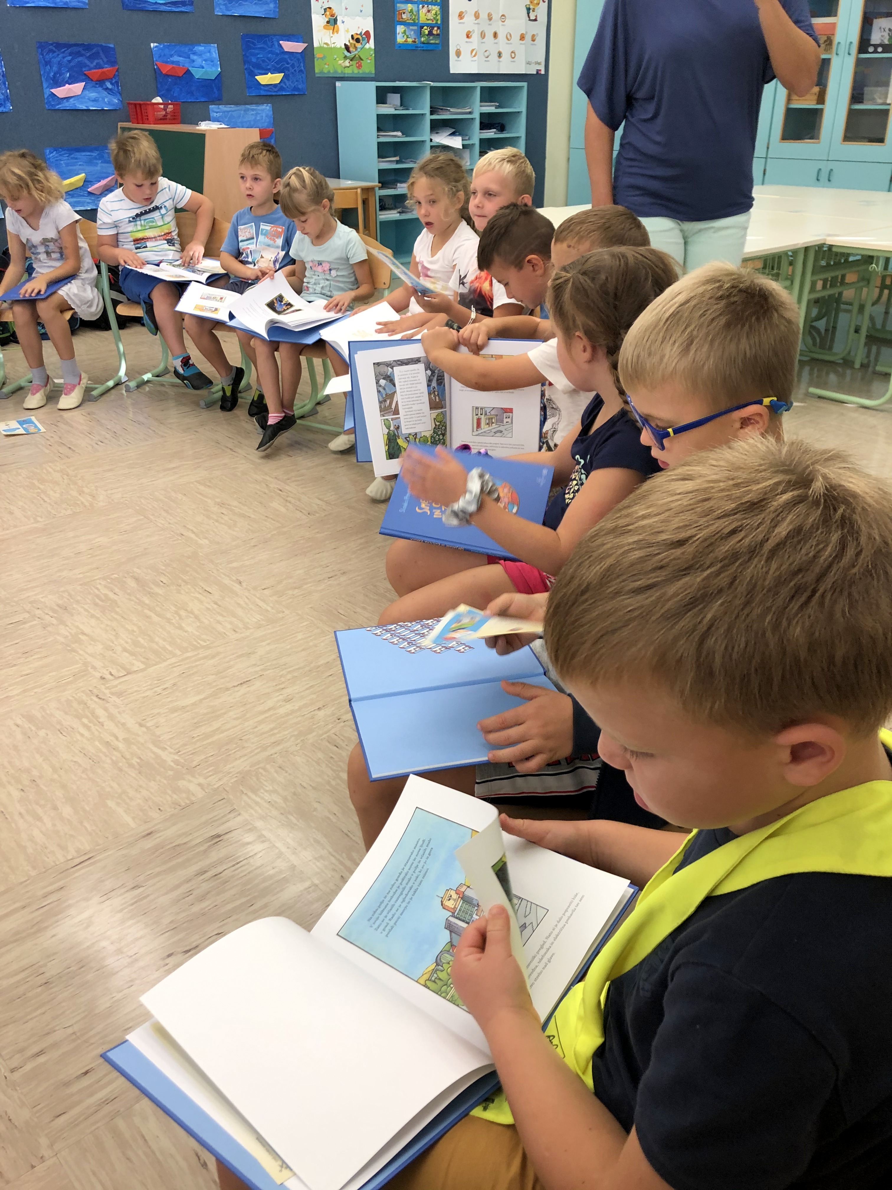 Šolska knjižničarka je prvošolce obiskala v njihovih učilnicah. Z navdušenjem so prisluhnili pravljici in se razveselili darilne slikanice. Vključili smo smejalnike in zategnili cvililne zavore. V učilnicah se je razlegel smeh in dobra volja, ki se je širila na vse strani. Darilna slikanica je prvošolce navdihnila za ustvarjanje.