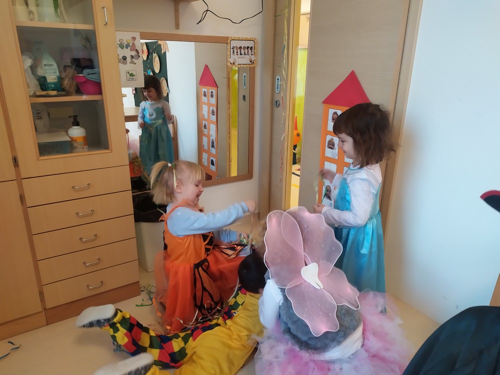 Na pustni torek so prišle v vrtec pustne maškare. Mastile so se s krofi in s petjem in vriskanjem preganjale zimo iz Kojskega. Prijazna gospa jih je bila tako vesela, da jih je pogostila z lizikami. Maškare so obljubile, da pridejo spet drugo leto.