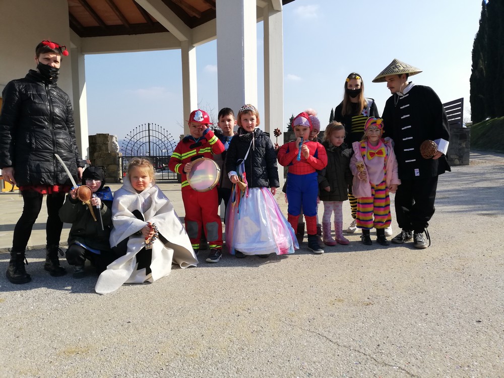 Gozdarji in Gozdičkarji smo si oblekli pustne kostume in preganjali zimo. Najprej smo rajali v igralnici nato pa smo se v pustnem sprevodu sprehodili po Biljani.