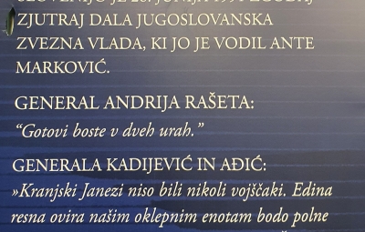 Razstava predstavlja obdobje od plebiscita do odhoda zadnjega vojaka JLA iz Slovenije, vojno in pomembne naloge, ki so jih takratna milica in drugi organi za notranje zadeve ter TO opravili za varovanje in obrambo slovenskega naroda.