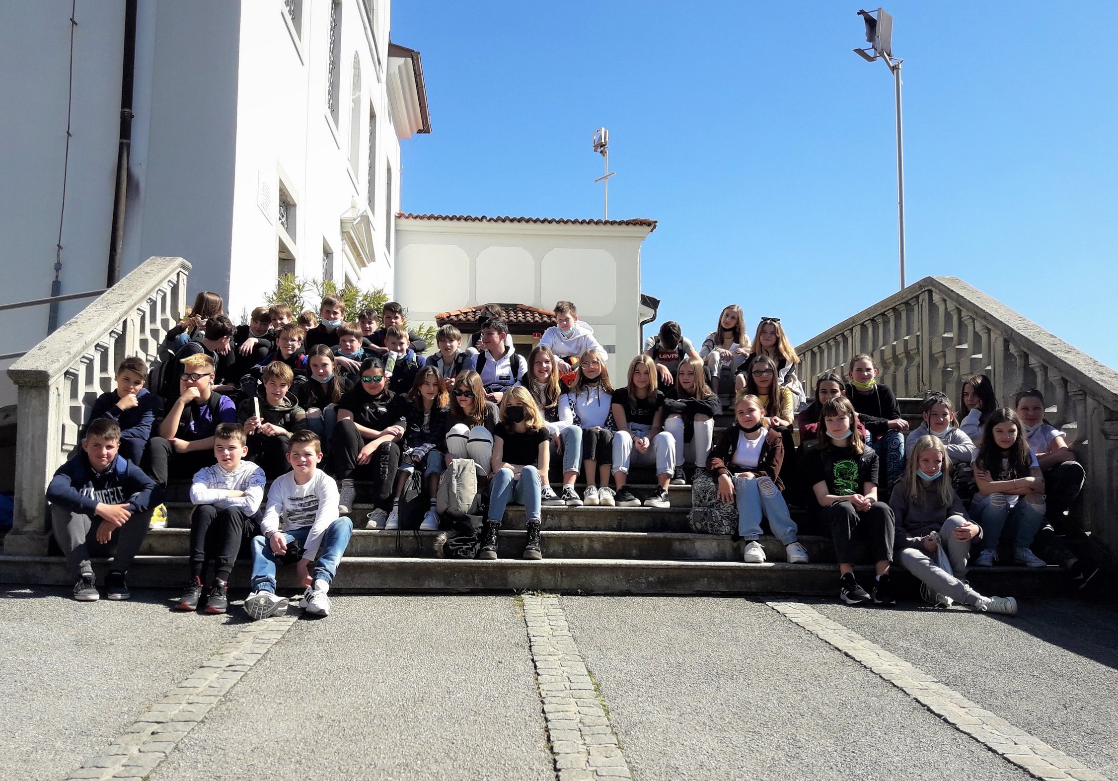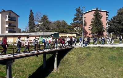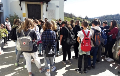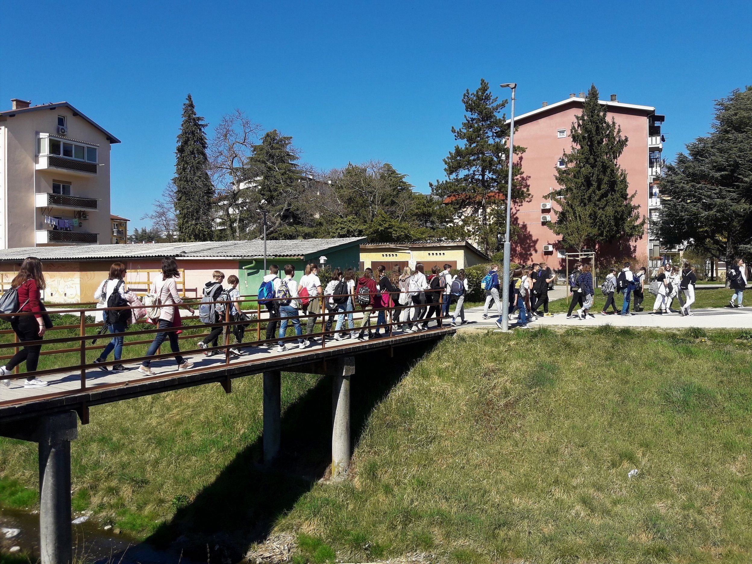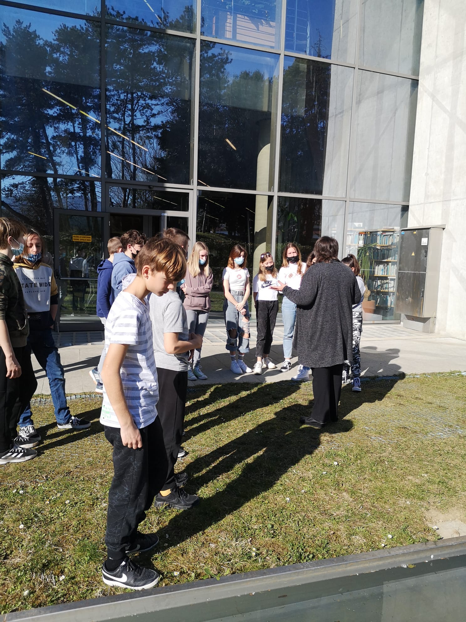 Po malici so se učenci peš odpravili na grič Kostanjevica nad Novo Gorico, kjer so si ogledali cerkev, rožni vrt vrtnic burbonk, grobnico Burbonov in Škrabčevo knjižnico. Kompleks frančiškanskega samostana nam je predstavila gospa Mirjam Brecelj.Vir: https://www.jakrs.si/bralna-kultura/rastem-s-knjigo/ (pridobljeno na spletni strani 27. 3. 2022).