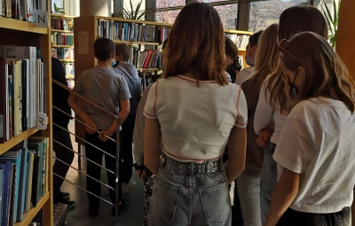 V četrtek, 24. marca, so se učenci sedmih razredov odpravili v Novo Gorico. V sklopu projekta Rastem s knjigo so obiskali Goriško knjižnico Franceta Bevka. Tam so si – razdeljeni v tri skupine – z bibliotekarji ogledali posamezne oddelke knjižnice. Najbolj zanimivo je bilo na mladinskem oddelku, kjer so jih pritegnile raznovrstne knjige, atlasi, učbeniki in zgoščenke. Vsak od učencev je v dar prejel tudi knjigo Vinka Möderndorferja z naslovom Jaz sem Andrej. Rastem s knjigo je nacionalni projekt Ministrstva RS za kulturo, ki je namenjen spodbujanju mladih k branju mladinskega leposlovja slovenskih avtorjev in motiviranju osnovnošolcev ter srednješolcev za obiskovanje splošnih knjižnic.