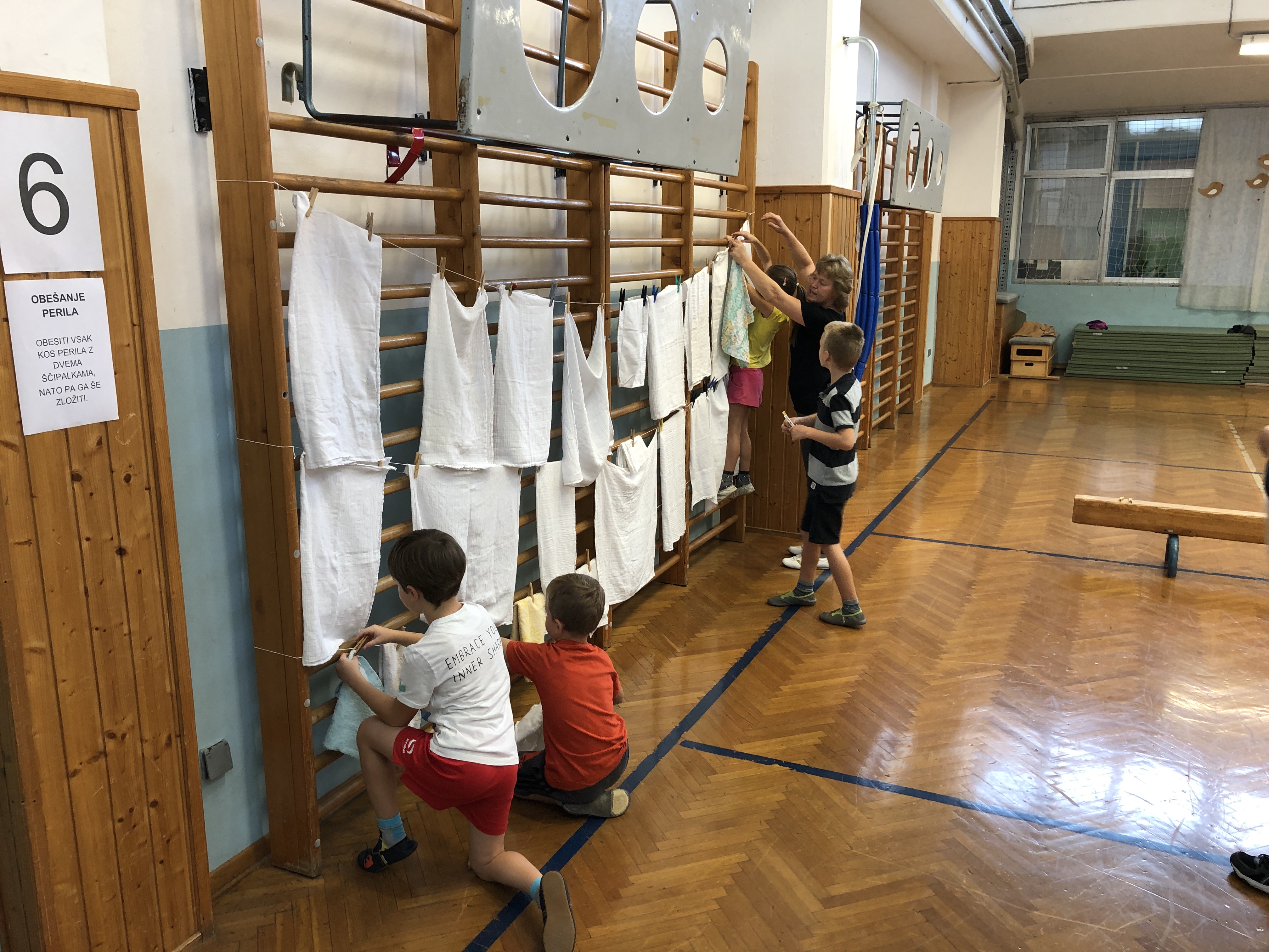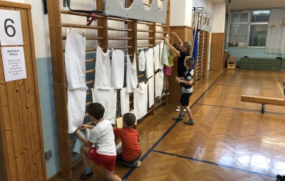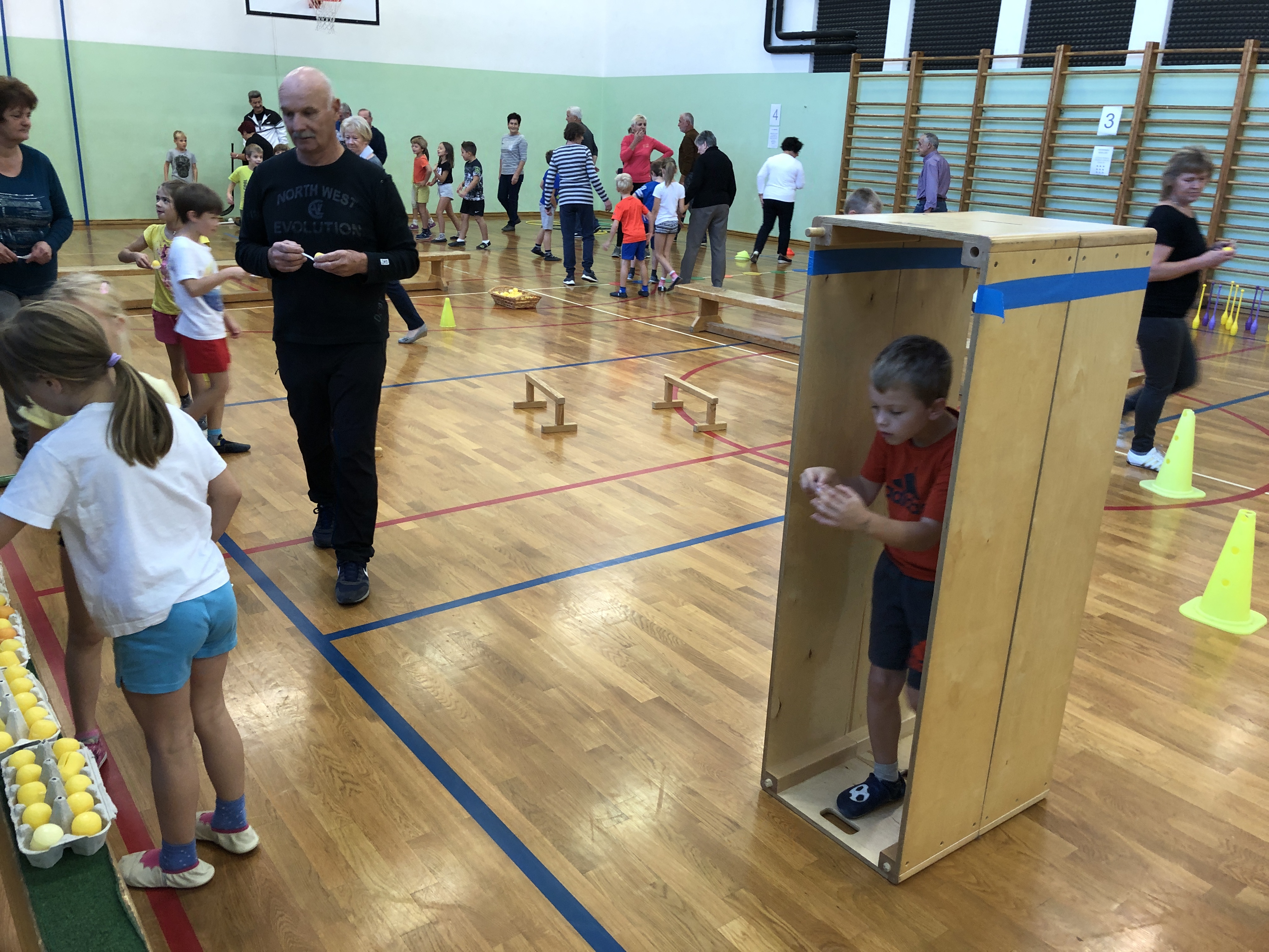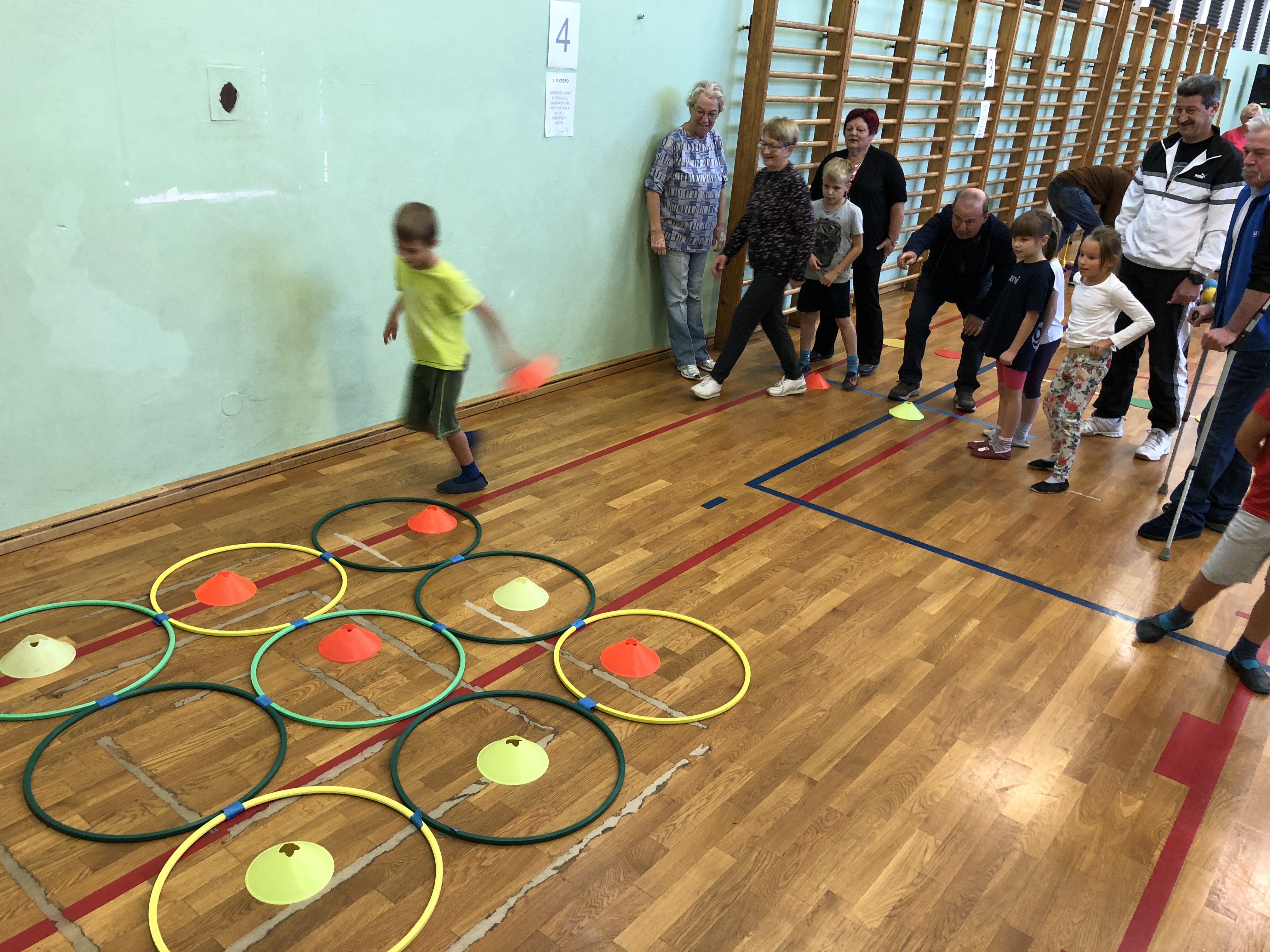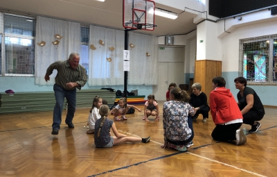Učenci, učitelji ter stari starši smo si na skupni uri zabavnih iger podelil veliko veselja in zadovoljstva. V četrtek, 17. 10. 2019, se je namreč v okviru Simbioze giba v telovadnici naše osnovne šole ob 37 drugošolcih zbralo kar 35 njihovih starih staršev. Podirali smo keglje, igrali igro Gnilo jajce, obešali in zlagali perilo, poskusili »prelisičiti« vrtečo se kolebnico in iti pod njo, ne da bi nas oplazila, na žlici prenašali jajčka mimo različnih ovir, s hokejsko palico usmerjali žogico v gol in si prizadevali v vrsto postaviti tri enake markerje, preden bi to storila nasprotna ekipa. Na koncu smo stare starše naučili še ples Ko, ko, ko, ki nas poživi, ko smo med poukom utrujeni. Čas je za naše učence minil prehitro, zato si nadejamo, da se nam bo uspelo še kdaj srečati in se zabavati na tak ali podoben način.