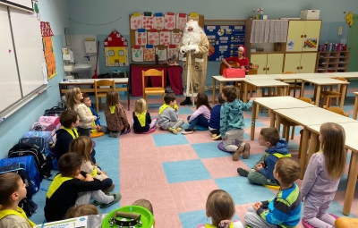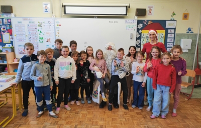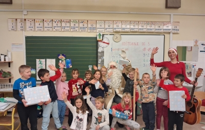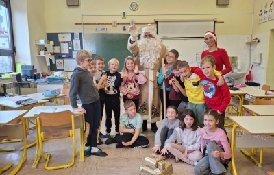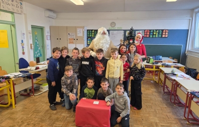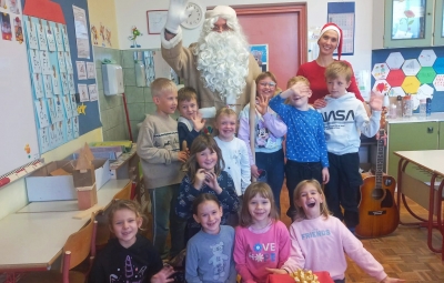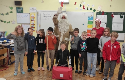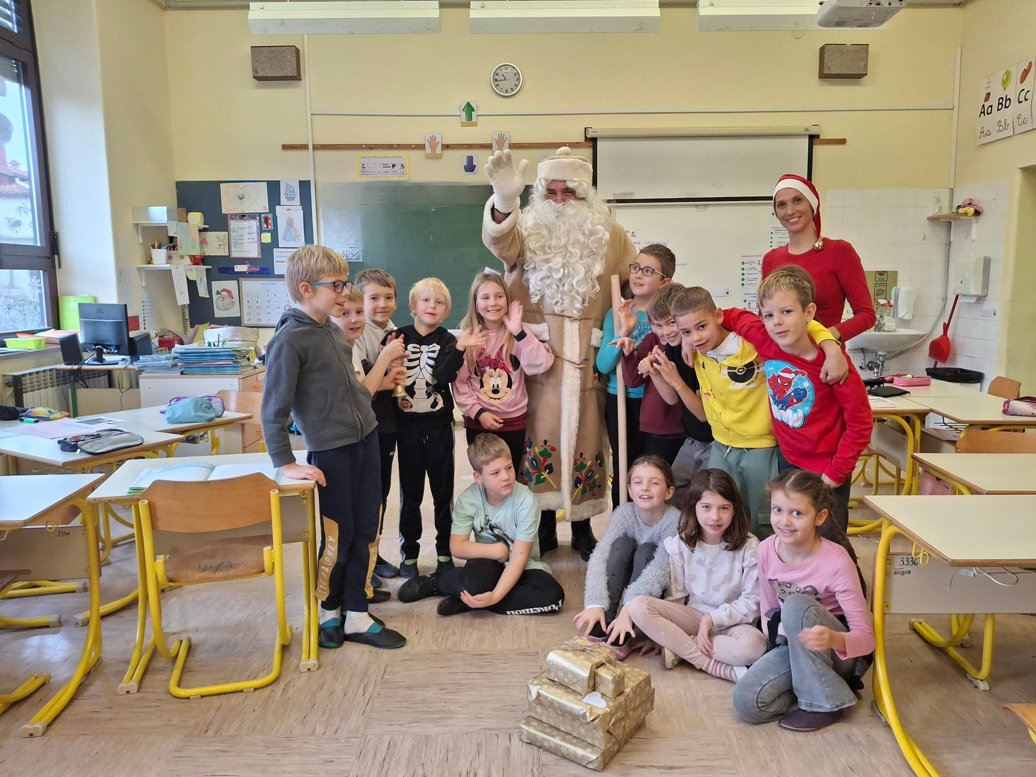 ... topel kožuh, zvrhan koš. Pa je prišel tudi med nas, stari dobri dedek mraz. Učence prve triade je razveselil z darili in pesmijo ter lepimi željami za leto, ki prihaja. Dedku mrazu in njegovemu palčku se iskreno zahvaljujemo za prijeten obisk.
