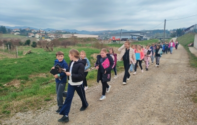 Opazovali smo prve spremembe v naravi, ki jih prinaša pomlad. Med potjo smo se večkrat ustavili, saj so četrtošolci drugošolcem razložili, zakaj pride do poplav, kaj je vodohran in kaj pomeni orientirati se v naravi.