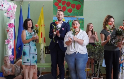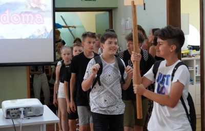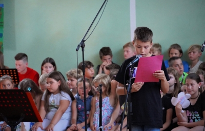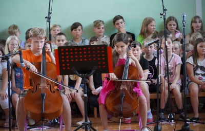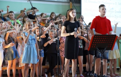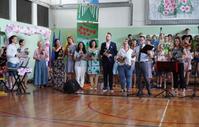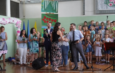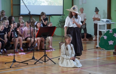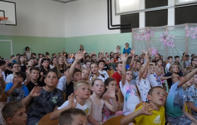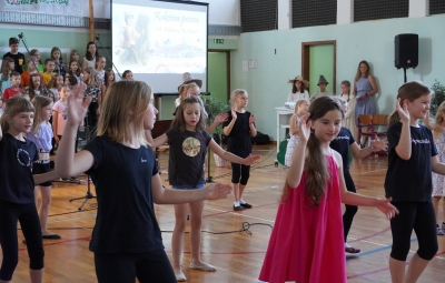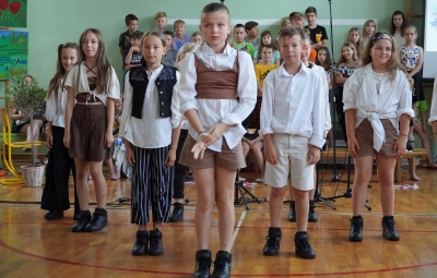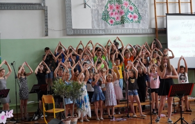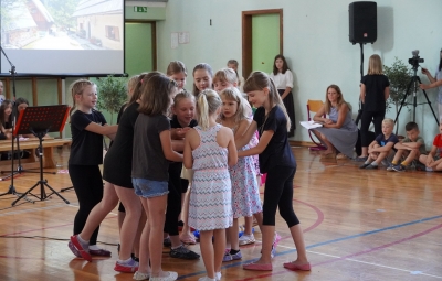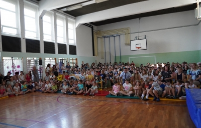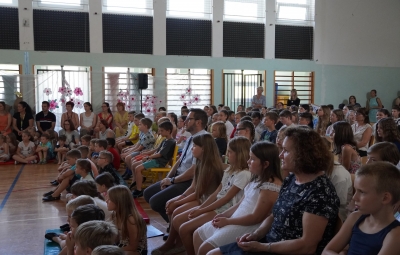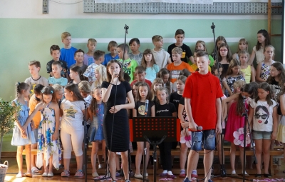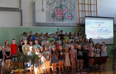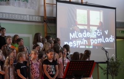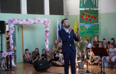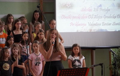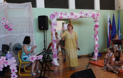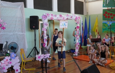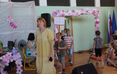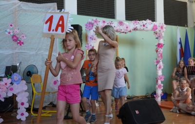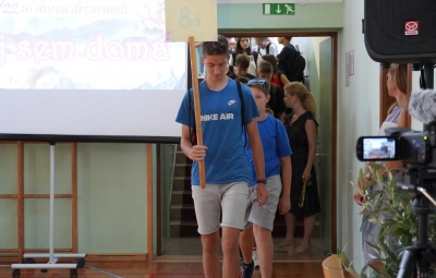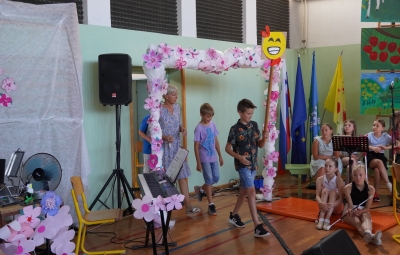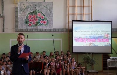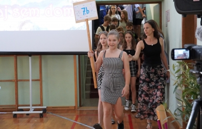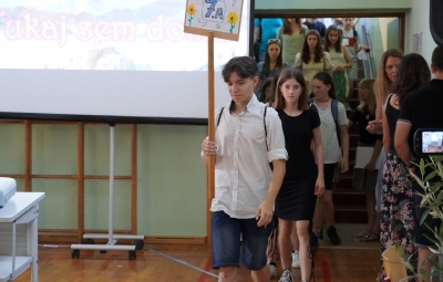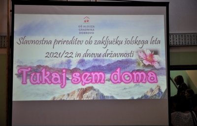 Zadnji šolski dan smo na centralni šoli zaključili slavnostno, in sicer s prireditvijo Tukaj sem doma. Na dogodek smo se začeli pripravljati že spomladi, ko smo na avdiciji izbrali nastopajoče učence in učenke ter repertoar zborovskih skladb, zadnji mesec pa so učenci spoznali legendo o zlatorogu in izdelovali triglavske rože ter ostale dekorativne motive za okrasitev velike telovadnice.