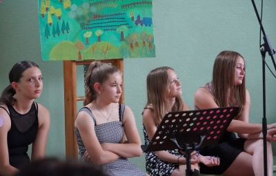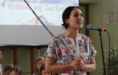 Prisluhnili smo učiteljici angleščine in španščine Sari Remžgar, ki je interpretirala VIII. pesem iz Pavčkovega pesniškega cikla Šentjurje, ki govori o domu, ter svojo avtorsko pesnitev Večer.