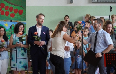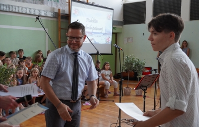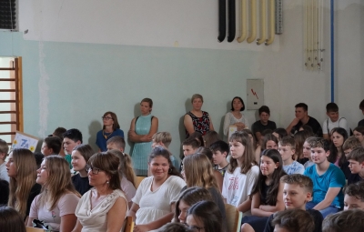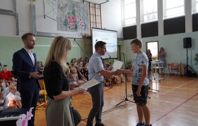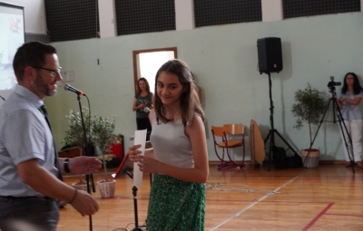 Ravnatelj je učencem in delavcem šole ponosen čestital za dosežke tako na učnem kot drugih področjih. Skupaj z voditeljem sta podelila priznanja za posebne dosežke učencem Neji Marušič Črv (zlato priznanje na državnem tekmovanju iz geografije), Arneju Plesničarju (srebrno priznanje na državnem tekmovanju iz astronomije), Simonu Reščiču in Viti Naji Velišček (srebrno priznanje na regijskem tekmovanju iz matematike). Vsi so učenci 7. a. Srebrno Cankarjevo priznanje je prejela tudi učenka 8. b Juta Lavrenčič.