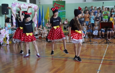Zaključili smo s plesnima točkama, v katerih so se predstavili učenke in učenec naše šole, ki obiskujejo plesni klub Los Pravilos. V prvi točki smo bili na rojstnodnevni zabavi Mikija Miške, v drugi pa smo plesali s piratom in piratkami. Obe koreografiji je sestavila Anja Pertovt.