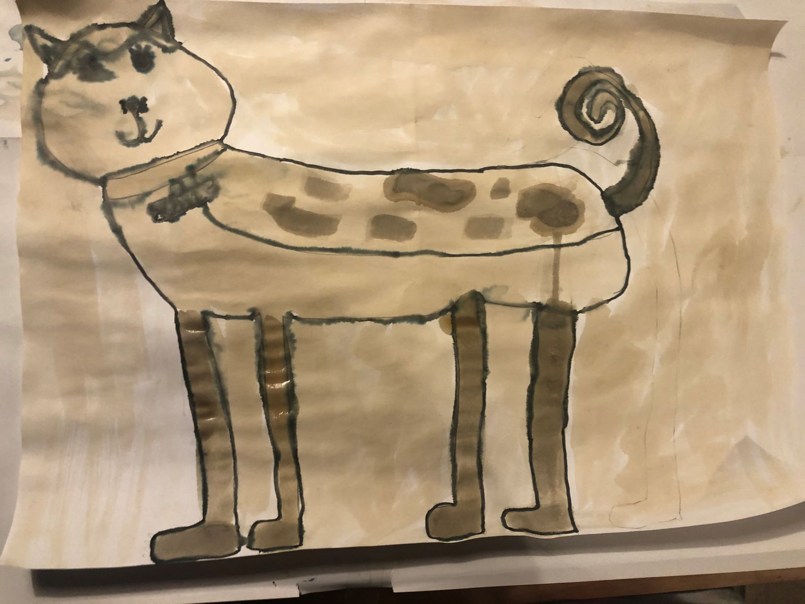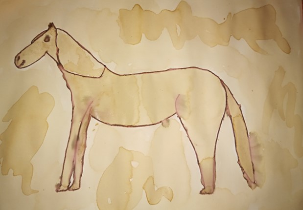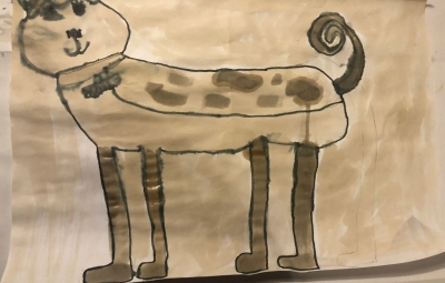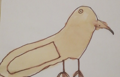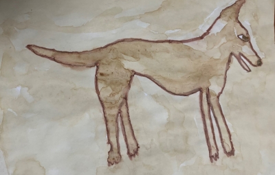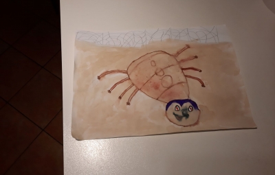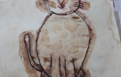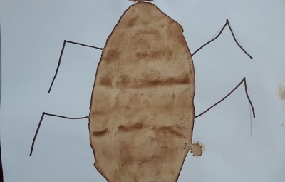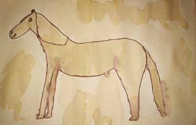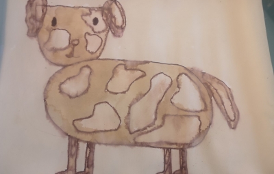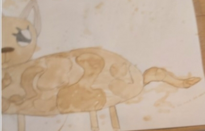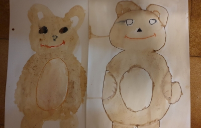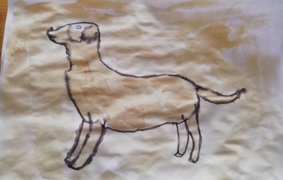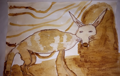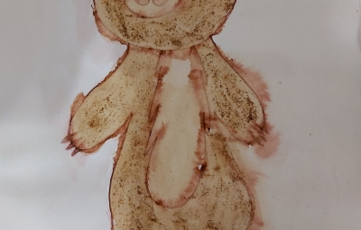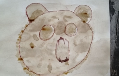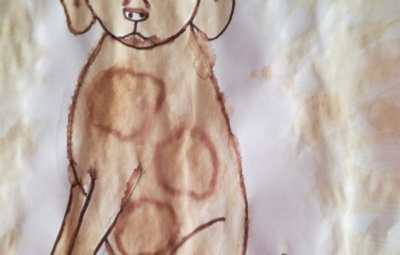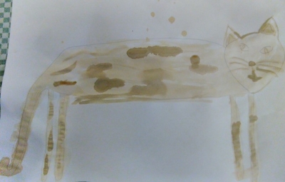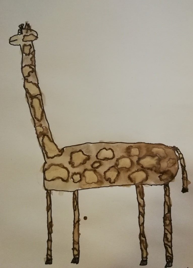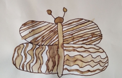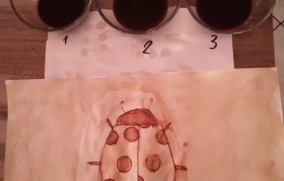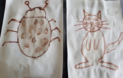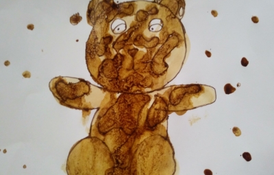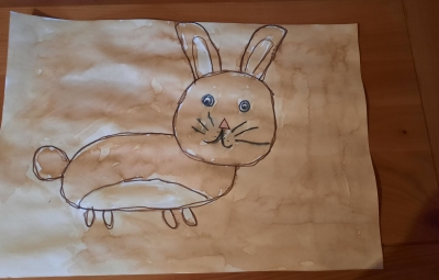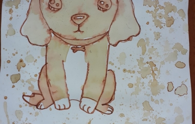 Ker so naše tempera in vodene barve ostale v šoli, smo si zmešali svojo barvo – kavno barvo. Nastale so krasne kavne slike.