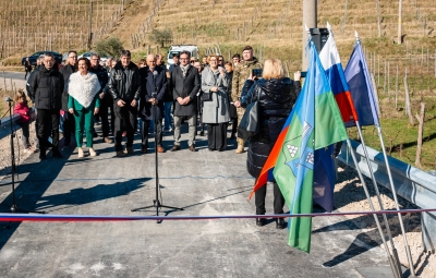 Naši učenci tudi med počitnicami ne počivajo in tako sta se Vita Marc in Tinkara Prinčič iz 6. B na povabilo Občine Brda z recitacijama pesmi Prijazna cesta in Razpotje Toneta Pavčka udeležili predaje namenu montažnega mostu pod Snežečami. Most je bil namreč med jesenskimi poplavami uničen. Dekleti sta se odlično odrezali in imeli tudi to čast, da sta predali škarje za prerez traku. Naj bo tako, kot je sklenil častni gost, minister za obrambo, g. B. Sajovic: da bi bilo tudi med nami čim manj razpotij in naj nam pride naproti čim več prijaznih cest.
