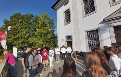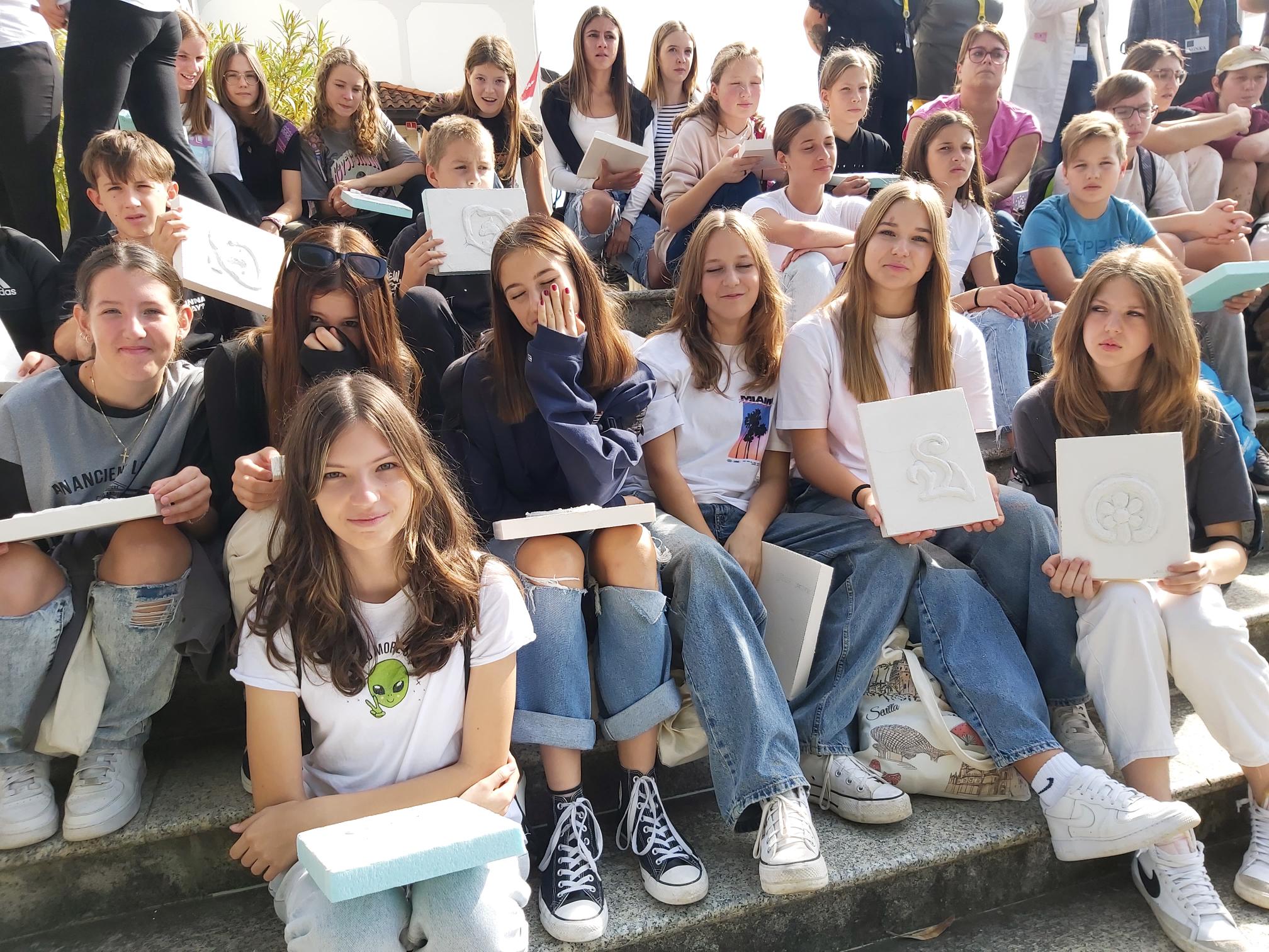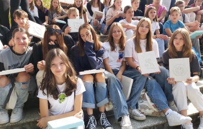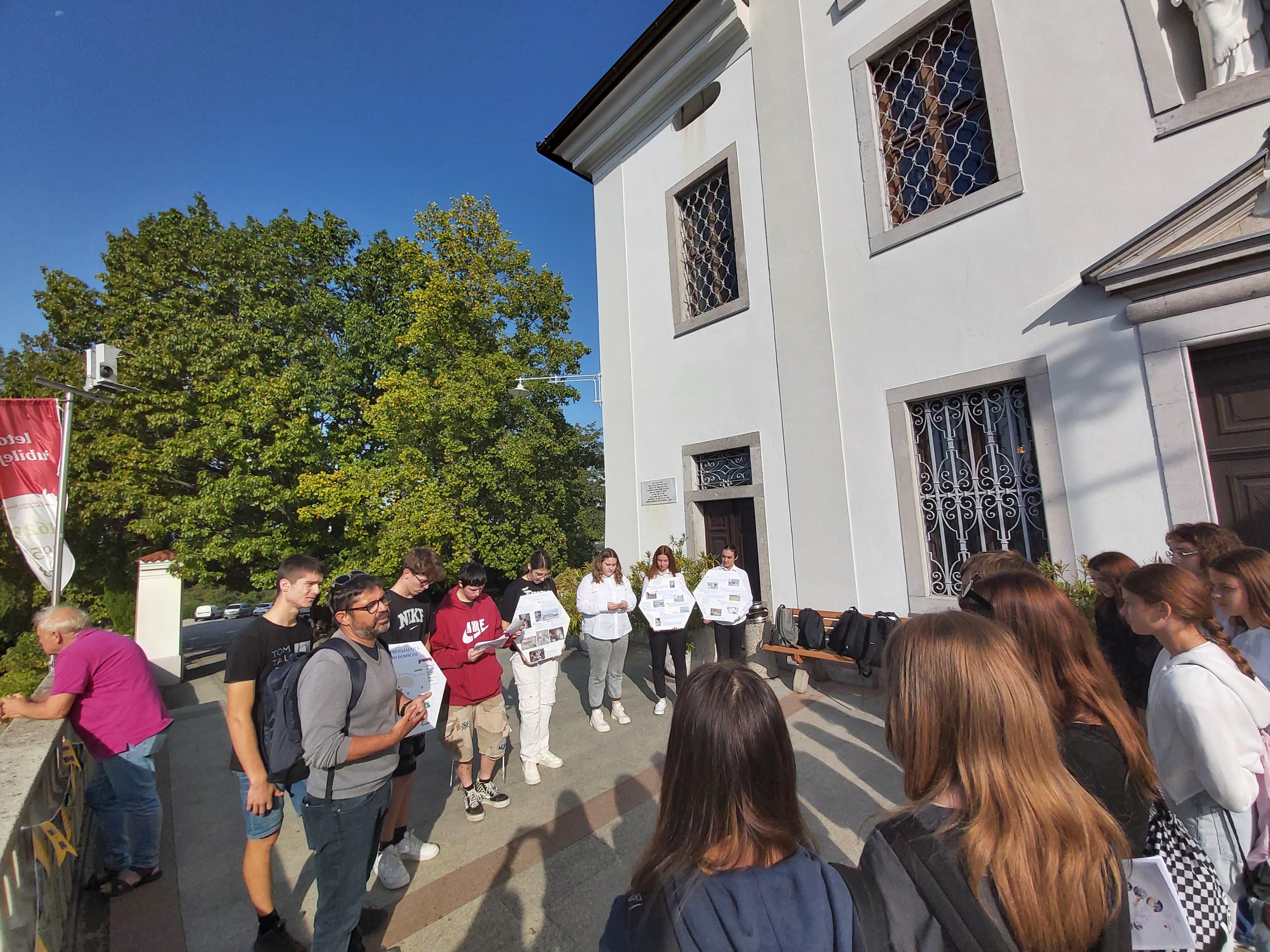 V četrtek, 5. oktobra 2023, je bil za sedem devetošolk pouk nekoliko drugačen. Udeležile so se namreč zgodovinske-umetniške-literarne delavnice na Kostanjevici nad Novo Gorico, ki jo je v okviru Mreže Unescu pridruženih šol organizirala Biotehniška šola. Na Kostanjevici ali Kapeli, kakor hrib imenujejo domačini, sta že v 17. stoletju stala samostan in samostanska cerkev, ki v sebi skrivata dragocene bisere naravne in kulturne dediščine. Učenke so v skrbno načrtovanem "sprehodu" po Kapeli spoznale tri dragocenosti, ki so vpisane v Register nepremične kulturne dediščine - samostansko cerkev z vsemi njenimi skrivnostmi, grobnico Burbonov s posmrtnimi ostanki zadnjih članov te francoske rodbine ter Škrabčevo knjižnico z izjemno starimi in redkimi knjižnimi deli, kjer ima še prav posebno mesto podpisan izvod Bohoričeve slovnice Zimske urice. Za piko na i so se učenke preizkusile v restavratorstvu, tako da so oblikovale štukature po vzorcih, ki jih najdemo v cerkvi, manjkala pa ni niti pokušina kostanjeviškega presneca - krhkega, bogato nadevanega peciva iz nekvašenega testa, ki so ga že pred sto in več leti pekli menihi v kostanjeviškem samostanu.