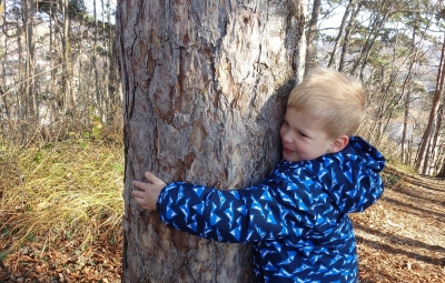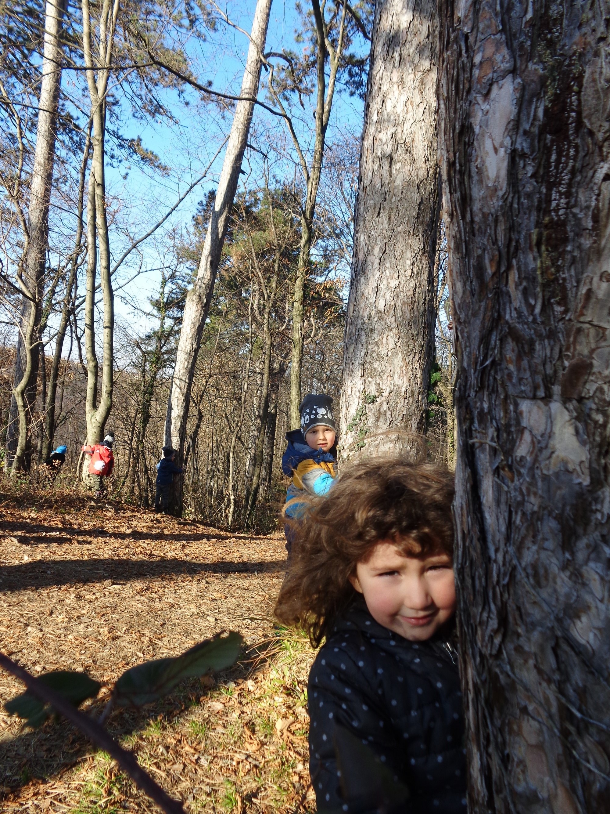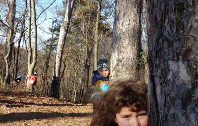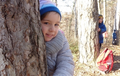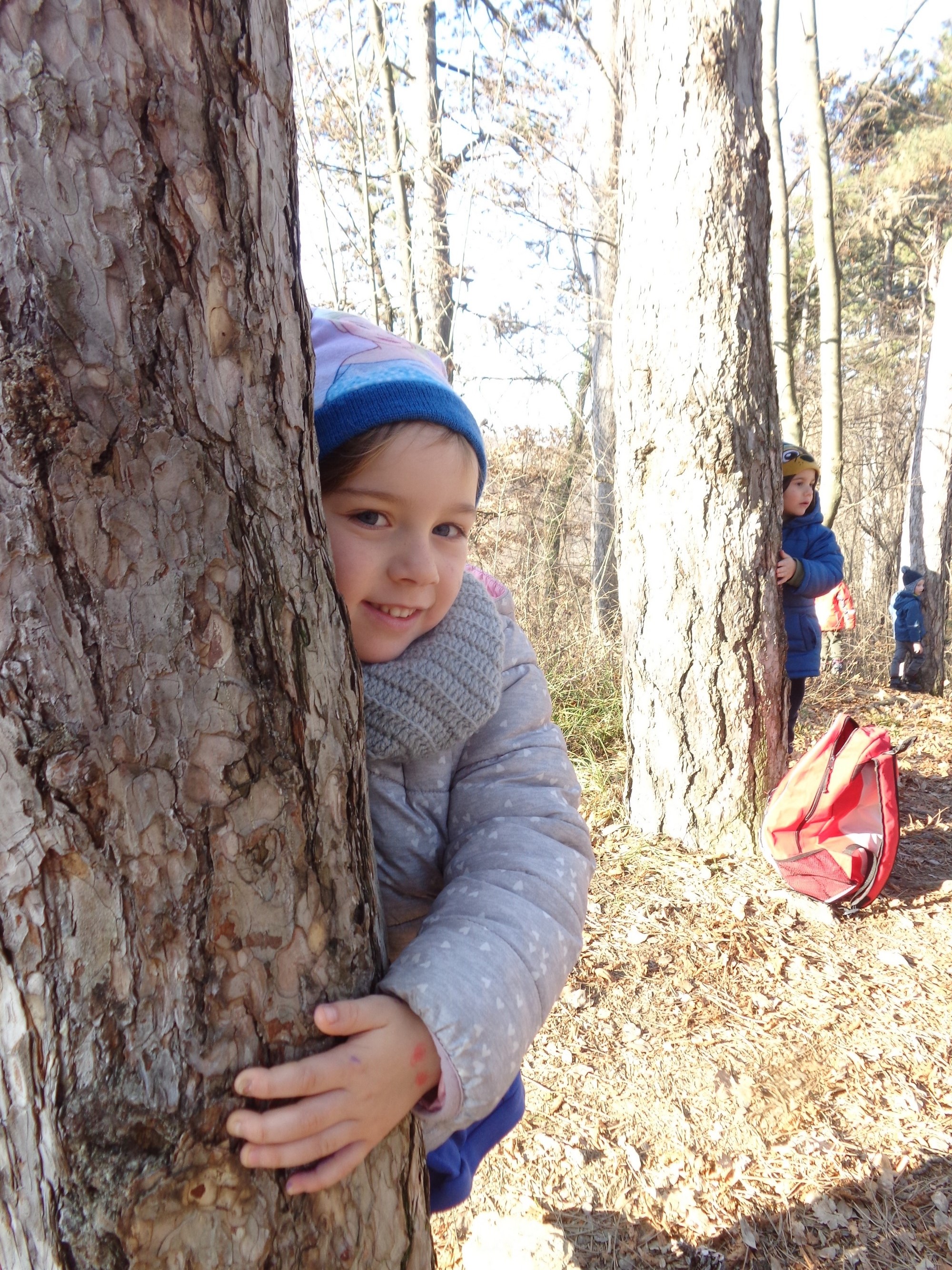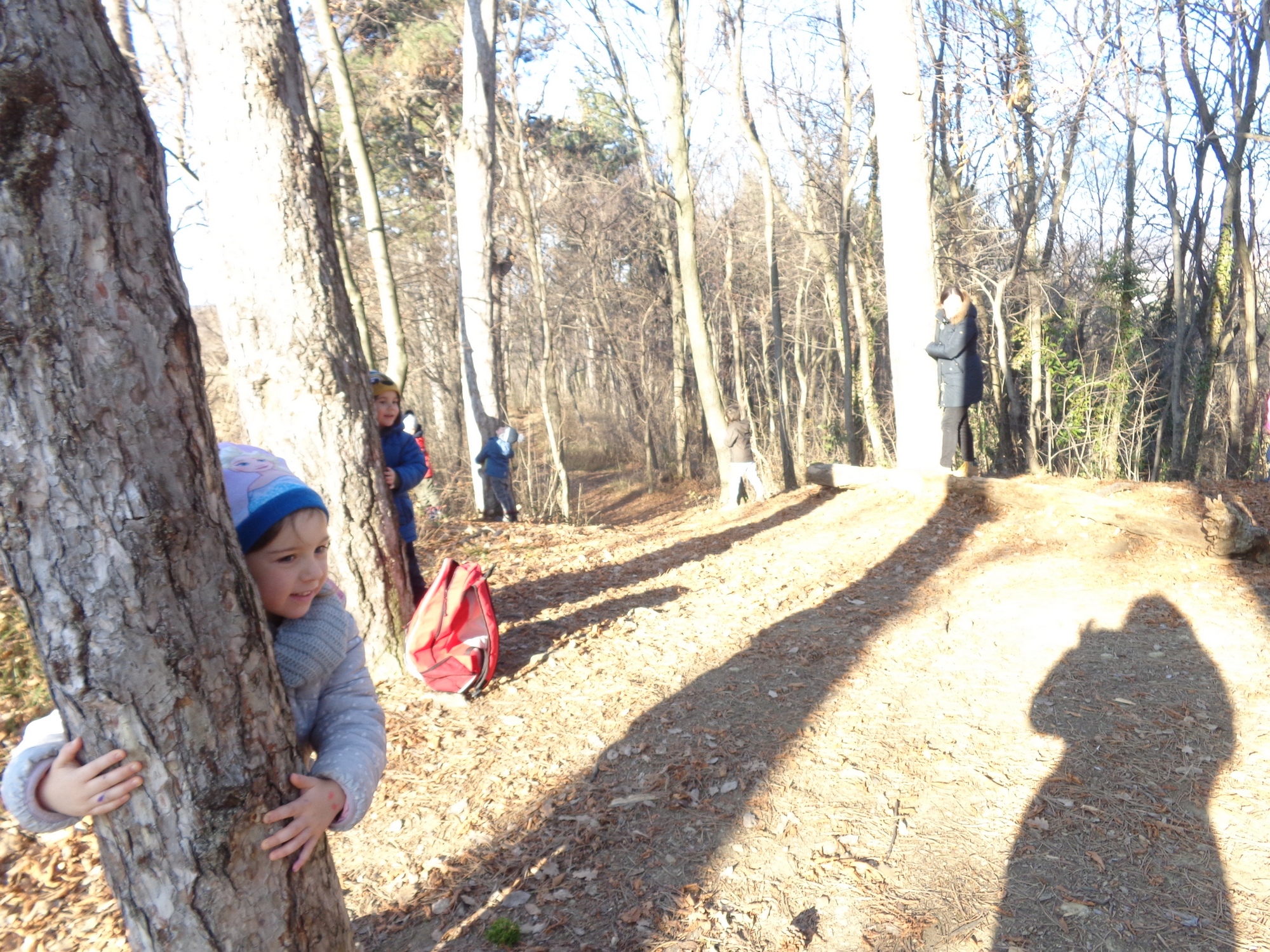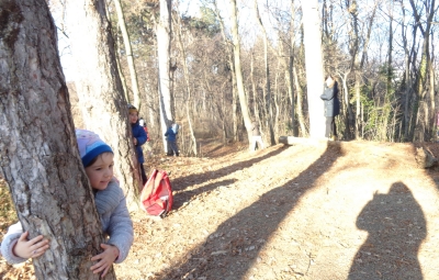V gozdičku smo se igrali igro Ujemi svoje drevo. Tudi s tem smo pri otrocih razvijali spoštljiv odnos do narave in okolja.