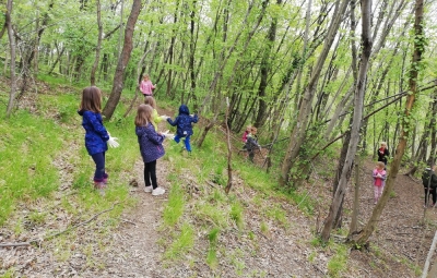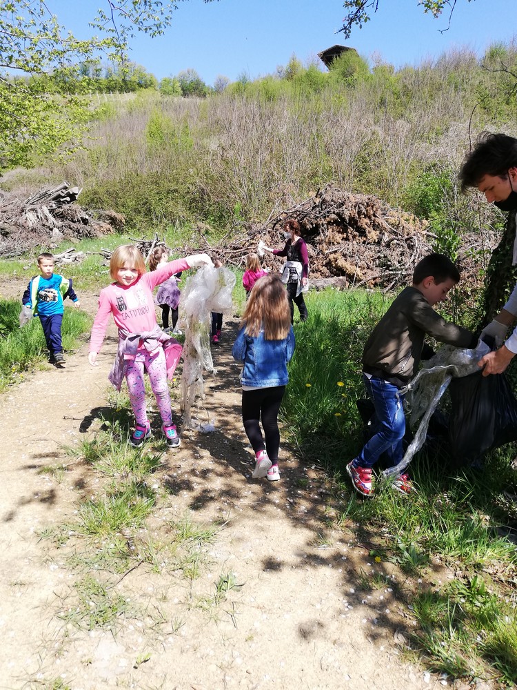 Nataknili smo rokavice, vzeli vreče za smeti in se podali na lov za smetmi. Najprej smo očistili gozdiček v katerem se vsakodnevno igramo nato pa pobrali smeti v dolini med Biljano in Kozano.