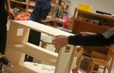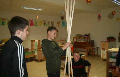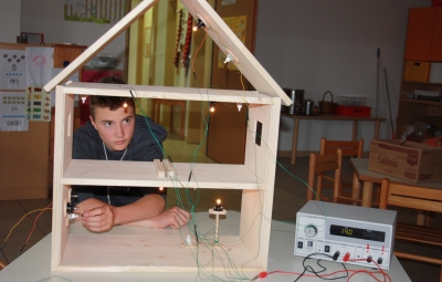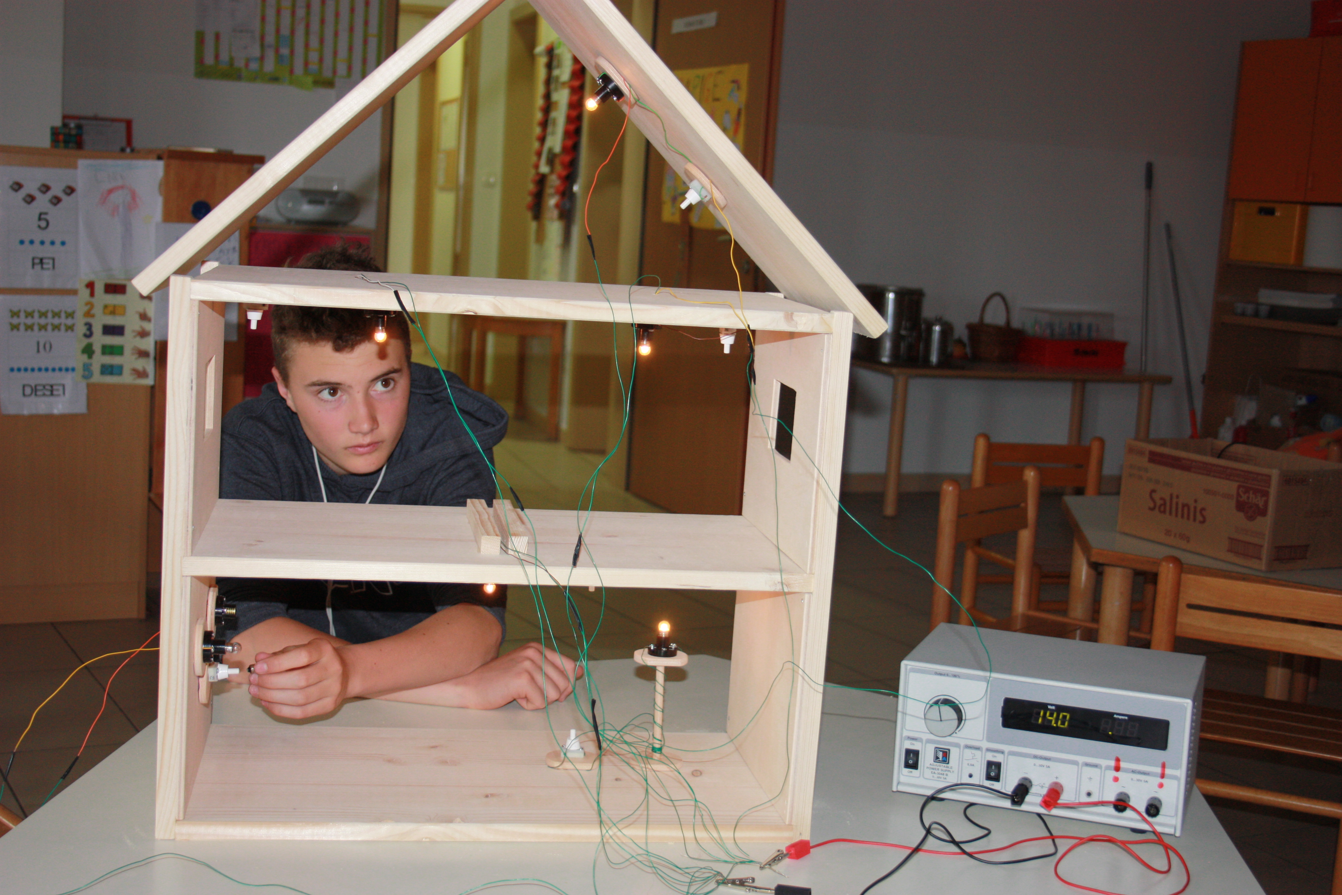 Ena izmed ekip je izdelala in sestavila leseno hiško. Pravi izziv je bilo v to hišo napeljati razsvetljavo.