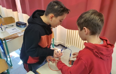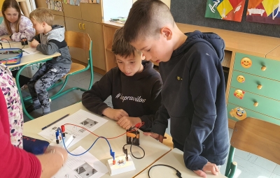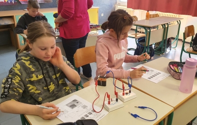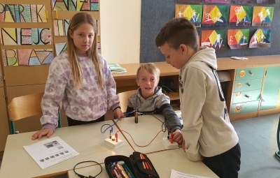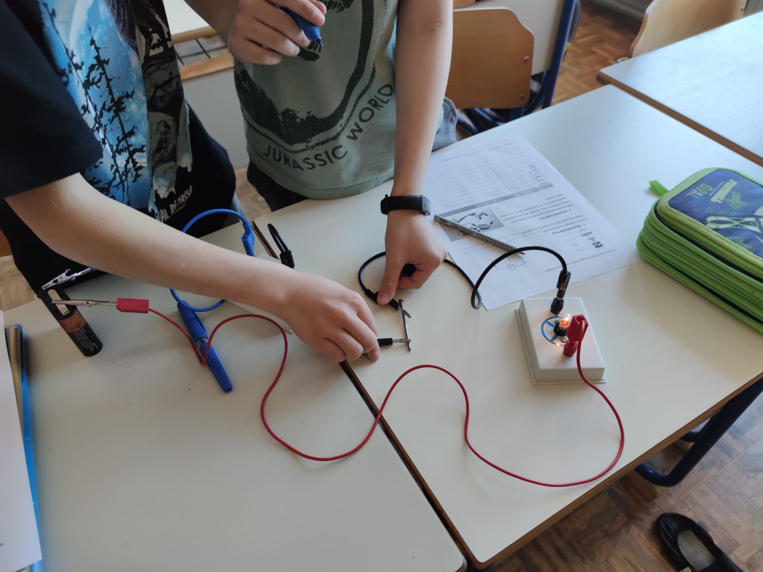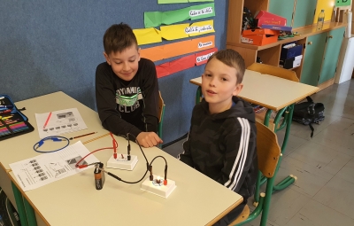V tem tednu smo četrtošolci na Dobrovem izpeljali tehniški dan o elektriki. Po uvodnem delu, v katerem smo izdelovali plakate ter utrjevali teorijo, smo se preizkusili še v risanju električnih shem in sestavljanju električnih krogov. Spoznavali smo izolatorje in prevodnike, na koncu pa še različne vrste vezav. Preživeli smo zelo zanimiv dan.