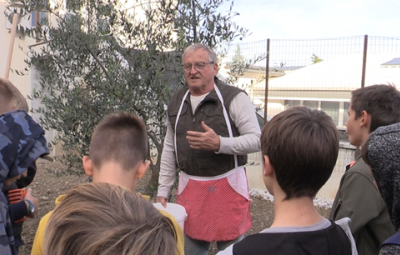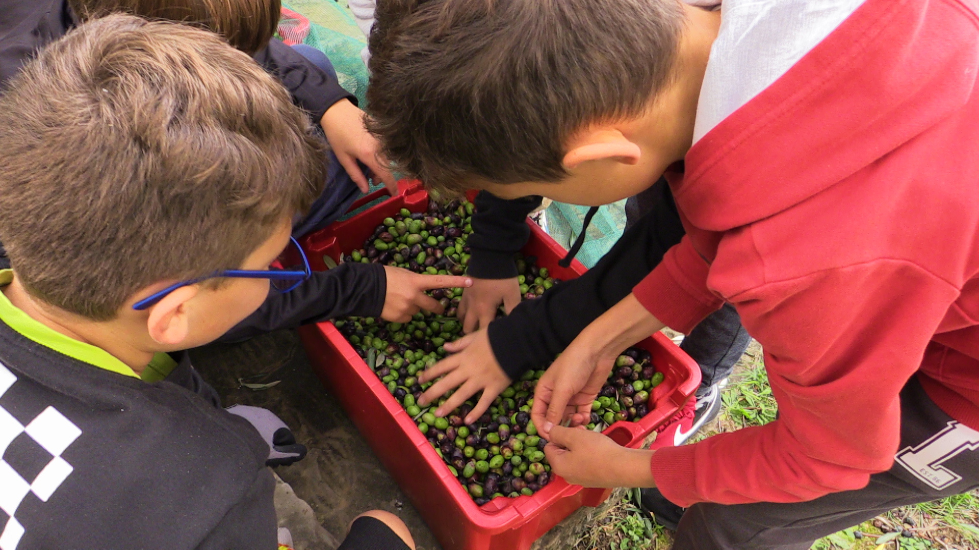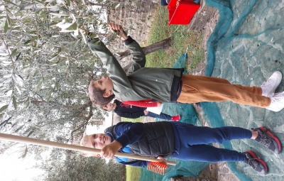 Učenci 6. razredov so dan začeli s spoznavanjem oljke, sledil je kviz, nato pa malica. Predsednik Društva oljkarjev Brda, gospod Božo Slivnjak, je učencem prikazal različne načine obiranja oljk in pripomočke, ki jih pri tem lahko uporabljamo. Učenci so se nato razdelili - eni so obirali oljke ob šolski stavbi, drugi pa oljke pri gradu, kar nam je prijazno omogočila Občina Brda.