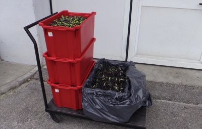 Sledil je ogled Oljarne Brda, kjer so učenci nabrane oljke najprej stehtali - nabrali so jih kar 94 kg, nato so si ogledali naprave in prisluhnili g. Zamarju, ki jim je predstavil postopek pridobivanja olja.