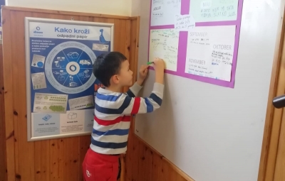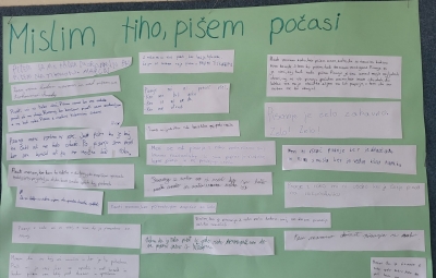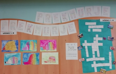 Učenci 1. a so v tednu pisanja z roko v tabelo vpisali vsak svoje ime in priimek. Potem so vsako črko posebej izrezali in glede na ogledane posnetke o Prekmurju so skupaj sestavljali črkovno sestavljanko na temo Prekmurja.