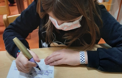 Tretješolci smo v CŠOD-ju napisali razglednico in jo poslali svojim domačim.