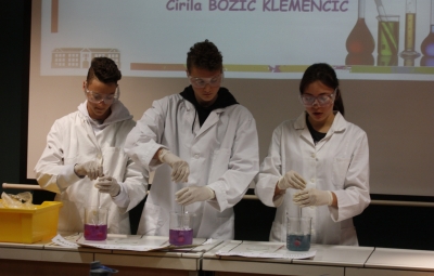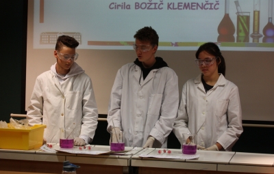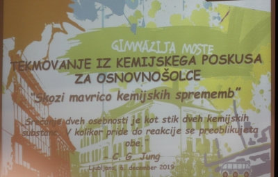 Da imajo veselje do kemije, eksperimentiranja in so pri tem ustvarjalni, so dokazali trije učenci naše šole, Miha Jančič, Mark Kocijančič ter Tijana Valentinčič, ko so v petek, 6. decembra 2019, v Ljubljani, na tekmovanju iz kemijskega poskusa predstavili svoj poskus, navdušili komisijo ter prejeli zlato priznanje (3. mesto). Njihov poskus Z lizko do barvnih sprememb si je tudi prislužil naziv najbolj inovativni poskus.