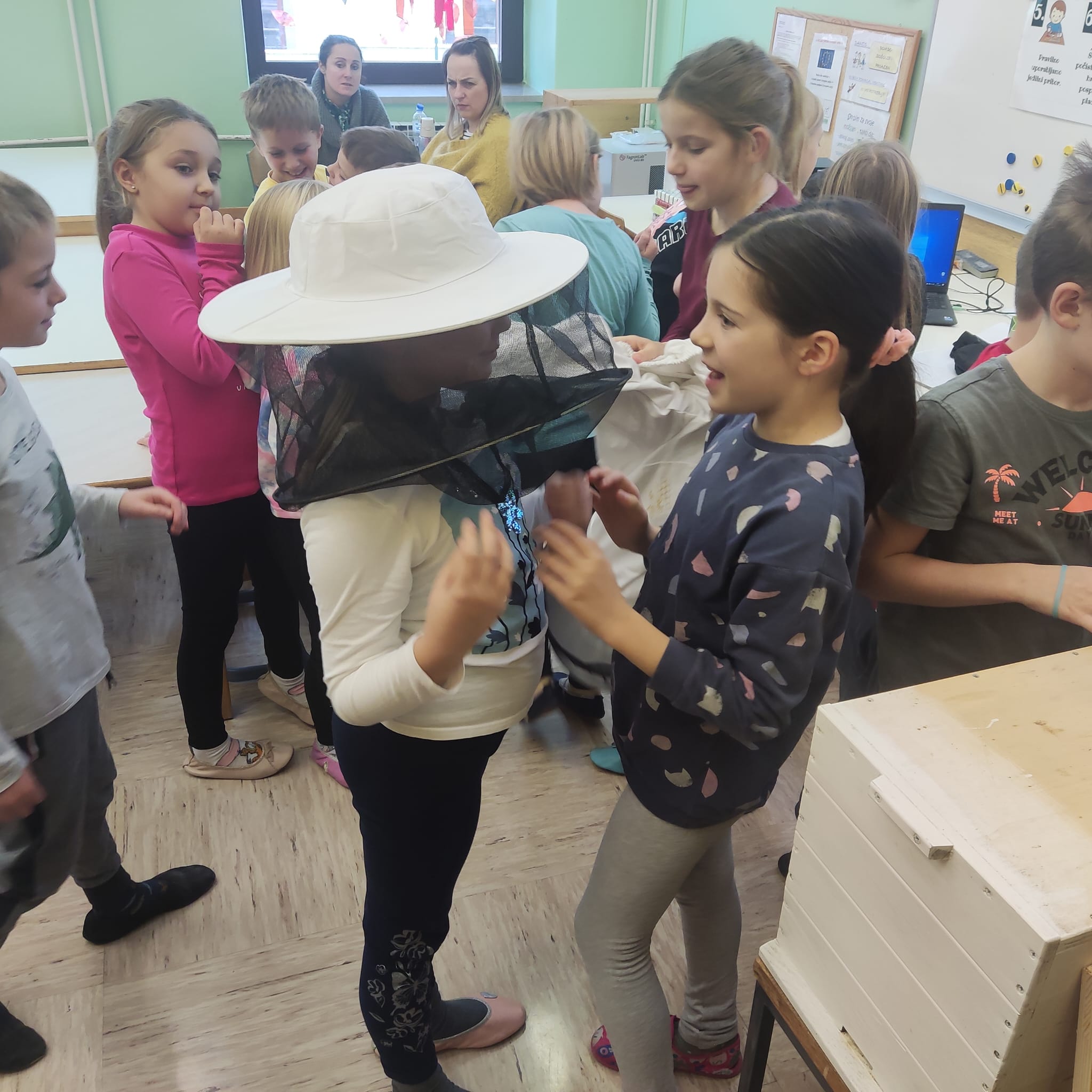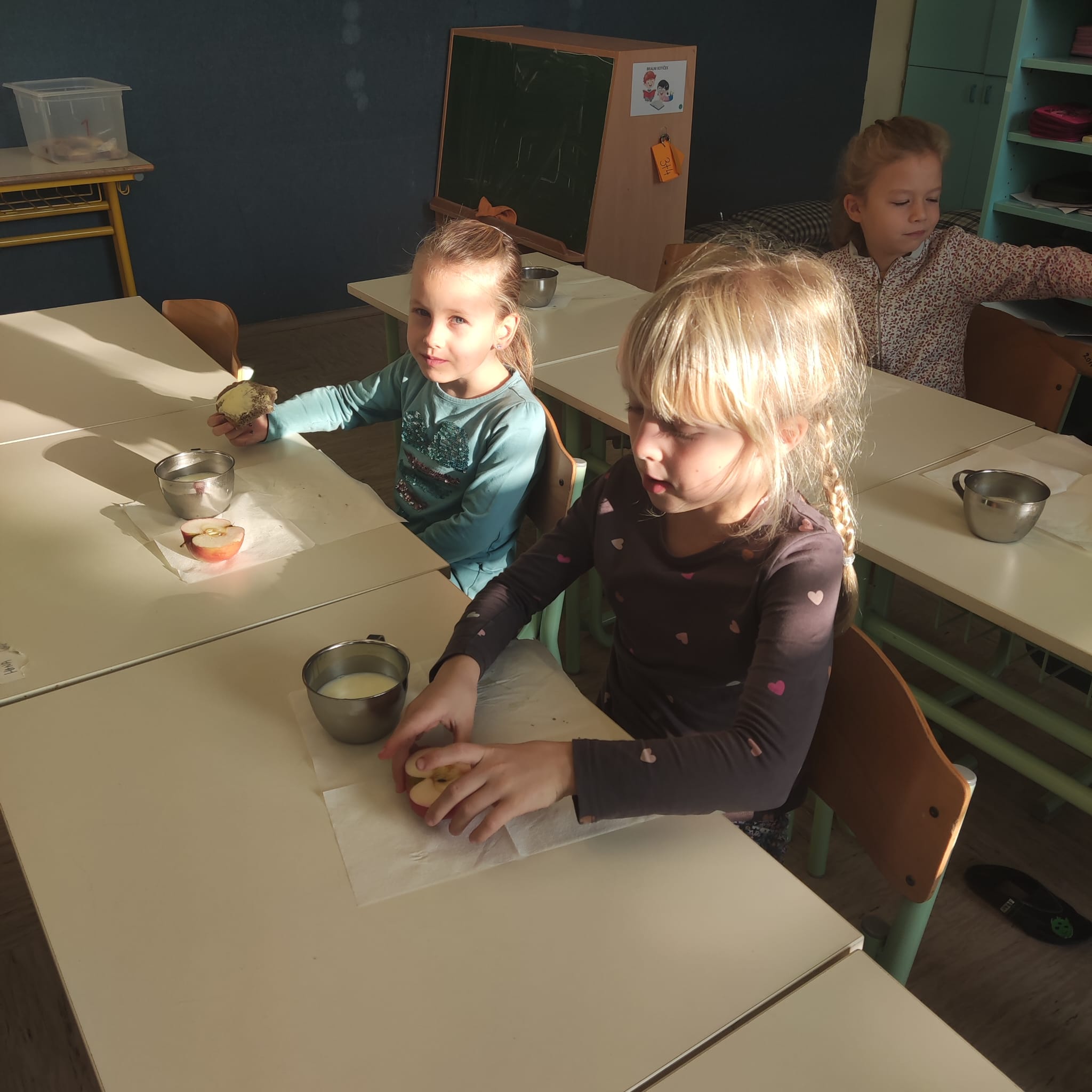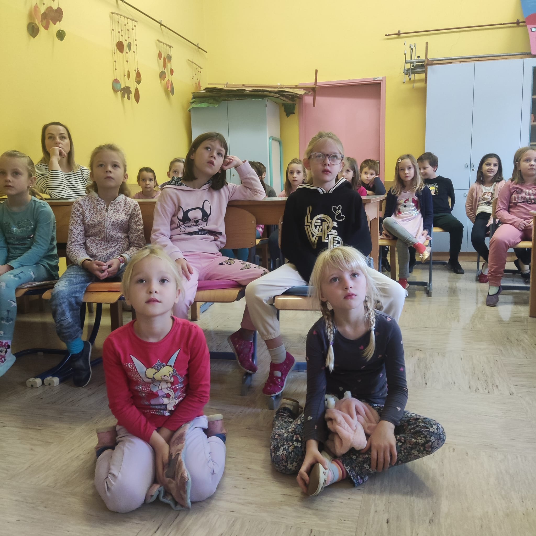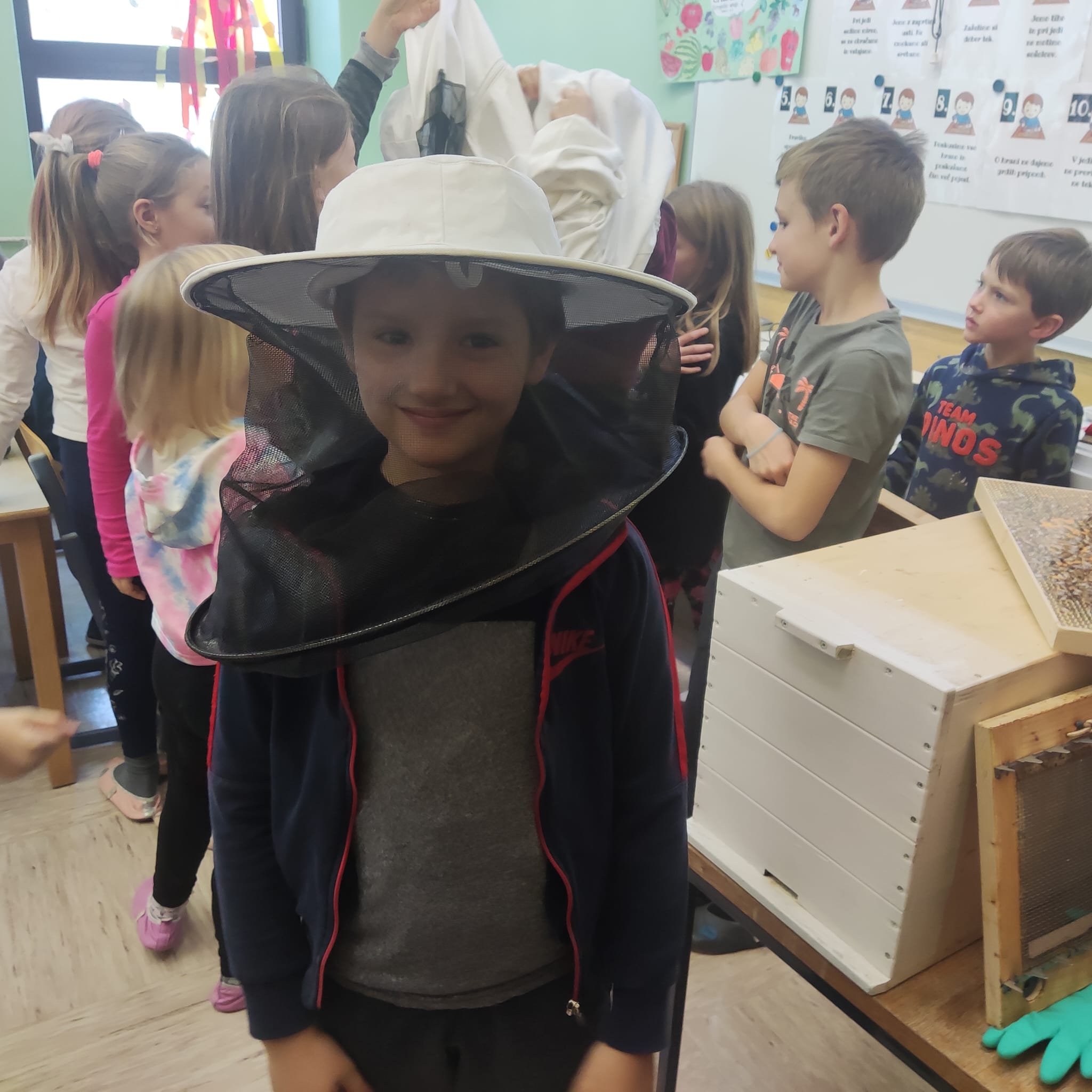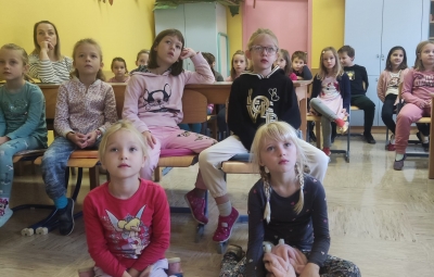Na podružnični šoli smo teden zaključili s Tradicionalnim slovenskim zajtrkom. Dan smo začeli z ogledom posnetka o omenjenem dogodku, nato pa sta učiteljici Monika in Andrejka za nas uprizorili slovensko ljudsko pravljico o bogati in revni sestri. Končno je sledil že težko pričakovani zajtrk: kruh, maslo, med, jabolka in mleko. Ko smo napolnili želodčke, nas je obiskala čebelarka Elis iz čebelarstva Batištuta in nam dala možnost, da smo preizkusili različne vrste medu ter cvetni prah. Za njen obisk se ji lepo zahvaljujemo. Veseli smo, da sta na ta dan bili z nami tudi učiteljici s Poljske in tako spoznali delček naše kulture.