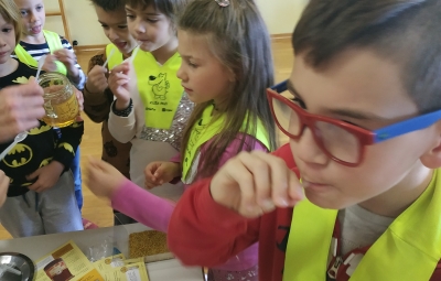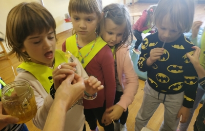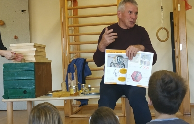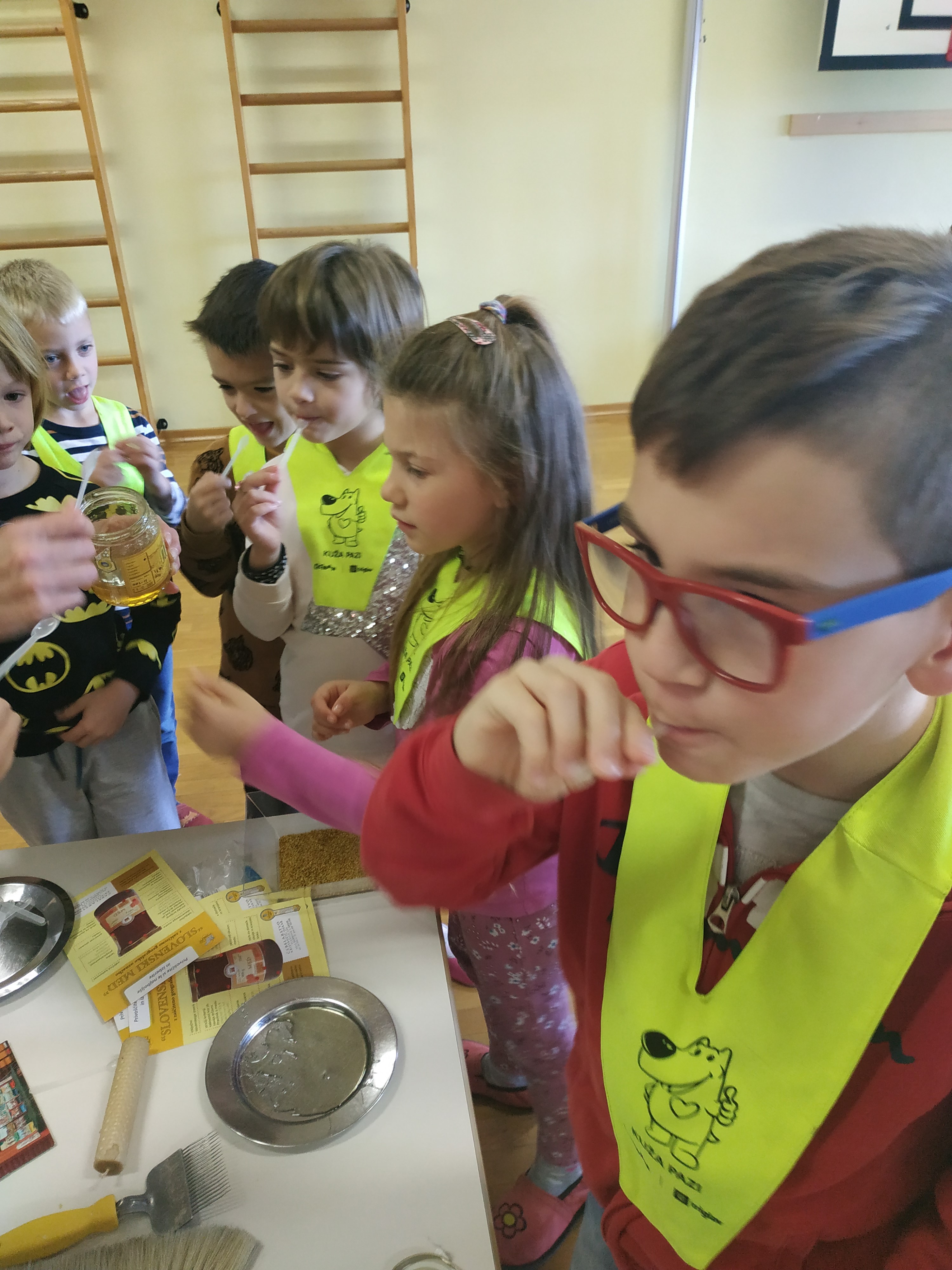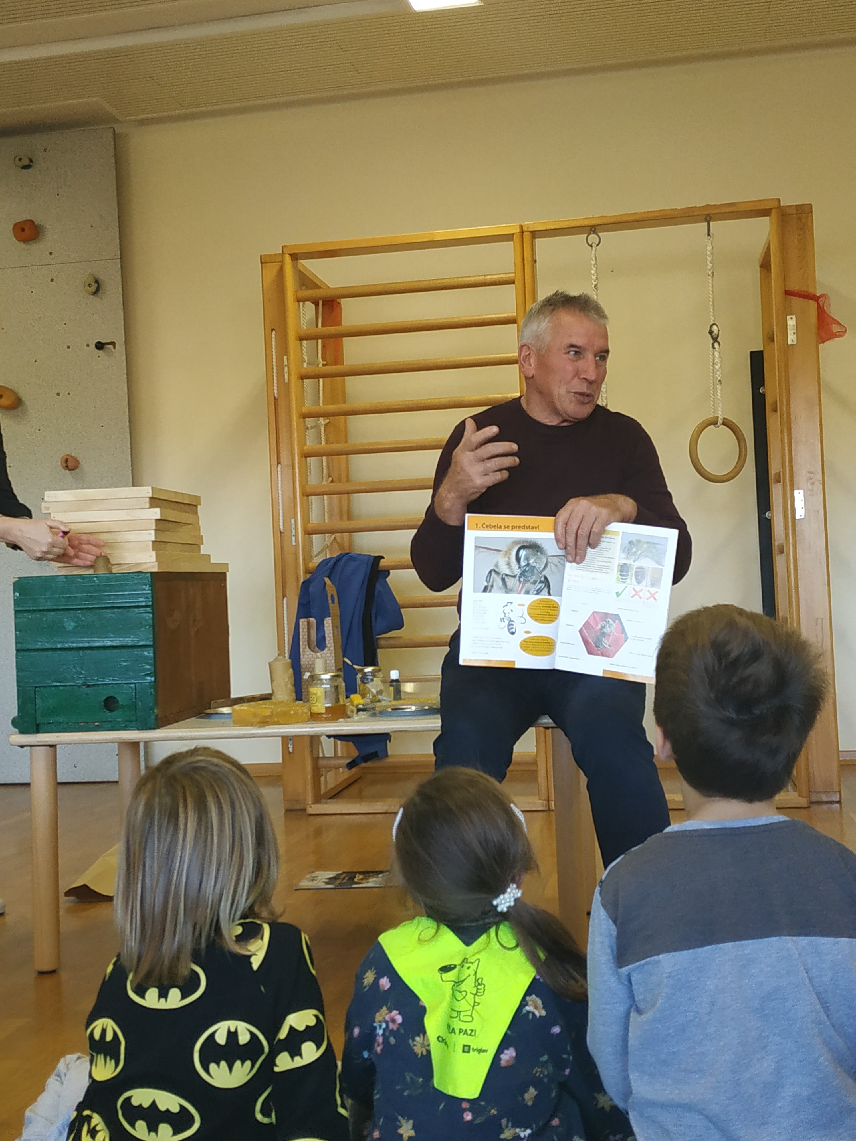V sklopu tradicionalnega slovenskega zajtrka nas je obiskal čebelar Oskar. Predstavil nam je življenje čebel in delo čebelarja. Ogledali smo si pripomočke, ki jih pri delu okrog čebel uporablja. Poskusili smo tudi čebelje pridelke; sladki med in cvetni prah. Njami!