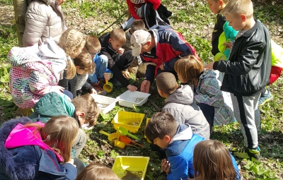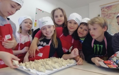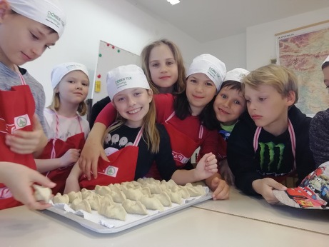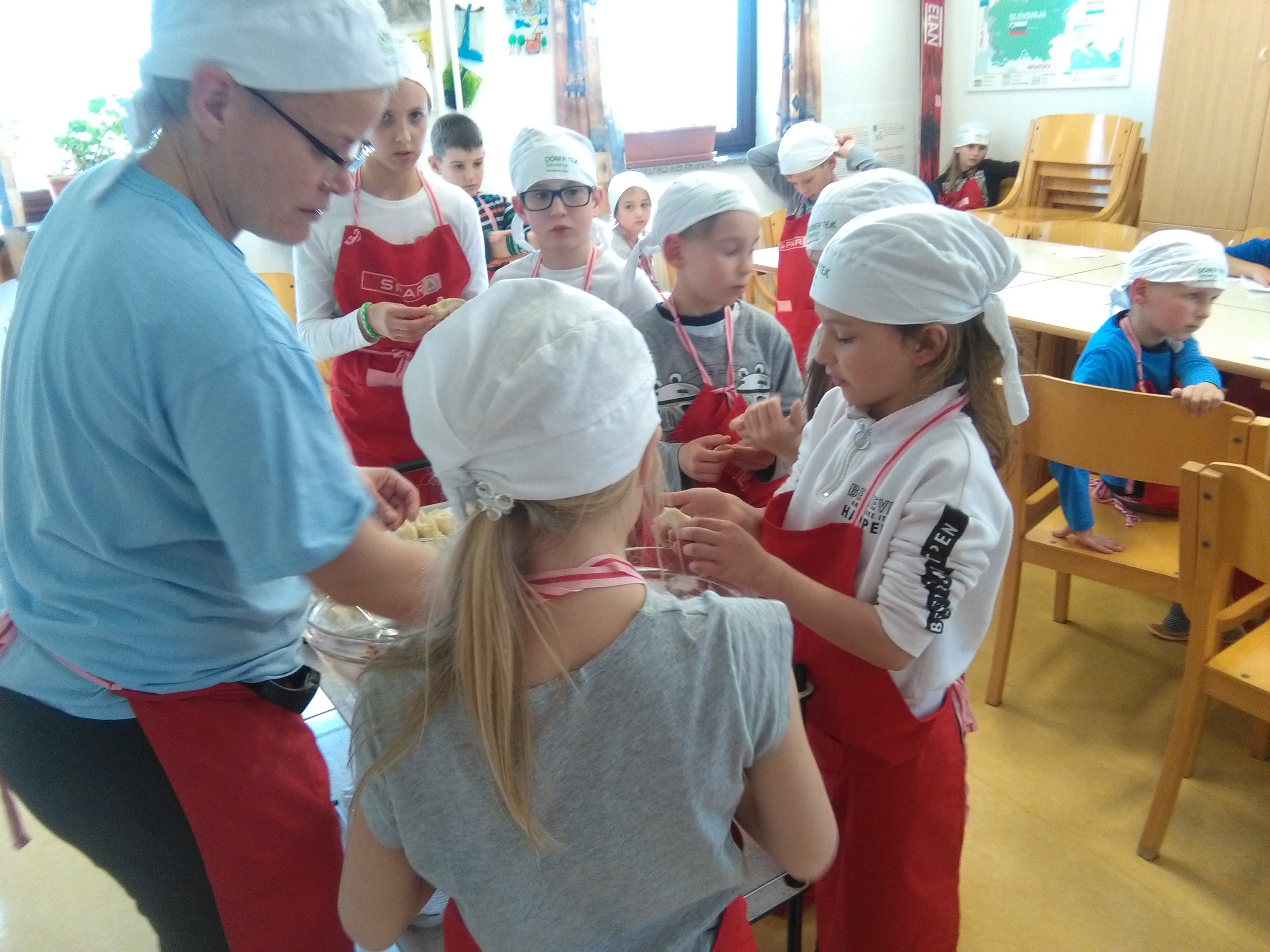 Tretješolci vam z nadmorske visine 1045 m pošiljajo sončne pozdrave. Danes so izdelovali kobariške štruklje, raziskovali v potoku in se preizkusili v nordijski hoji.