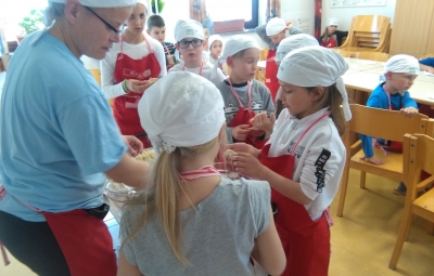 Danes so učenci izdelovali slike iz travniških rož, plezali, kuhali in se zabavali pri športnih igrah.