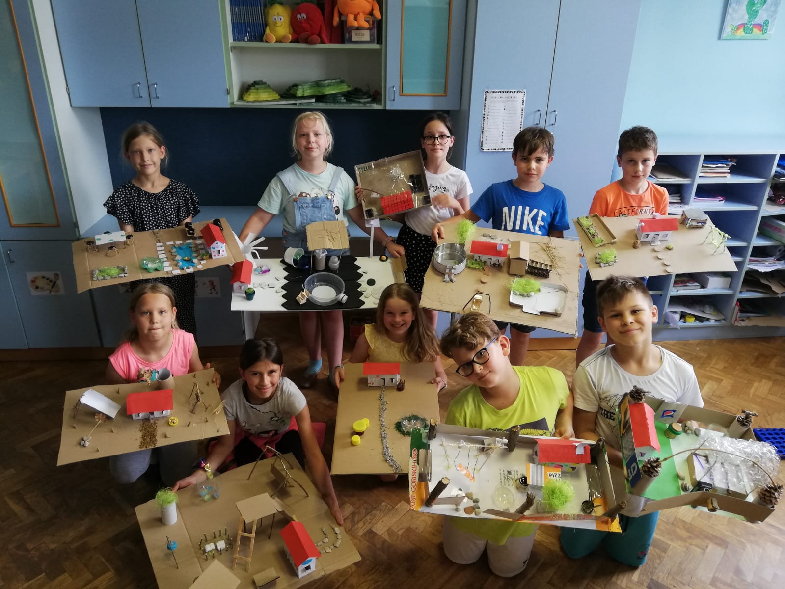 Četrtošolci smo pri NIT izdelali hišice iz kartona, nato pa smo pri LUM naredili še okolico. Pri ustvarjanju smo bili zelo motivirani in izvirni.