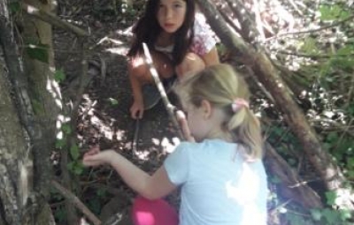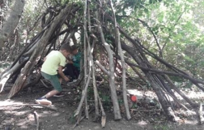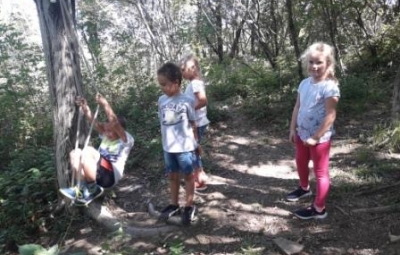 Nekateri učenci podaljšanega bivanja v Kojskem so delček petkovega popoldneva preživeli v bližnjem gozdičku. Naredili so si hiško in določili družinske vloge. Veliko so tekli, plezali, se gugali in raziskovali naravo. Drugi šolski teden so zaključili v pozitivnem duhu.