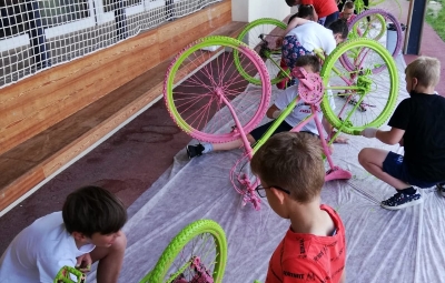 Tudi ta teden je bil na podružnični šoli v znamenju kolesarstva. V soboto, 12. 6. 2021, se bo namreč skozi naše kraje ponovno popeljala kolesarska karavana dirke po Sloveniji. Učenci smo kolesa prebarvali v zeleno, jih ponovno obesili na šolsko ograjo ter jo okrasili še z zelenimi in belimi trakovi. Zdaj pa komaj čakamo, da bomo lahko navijali in spodbujali naše kolesarje.