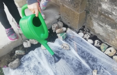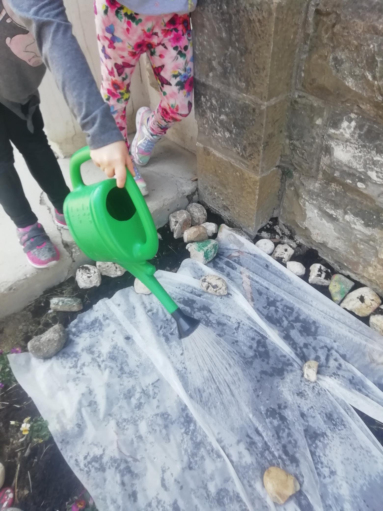 - skrbno so zalivali semena, čebulice ter nove rastline,