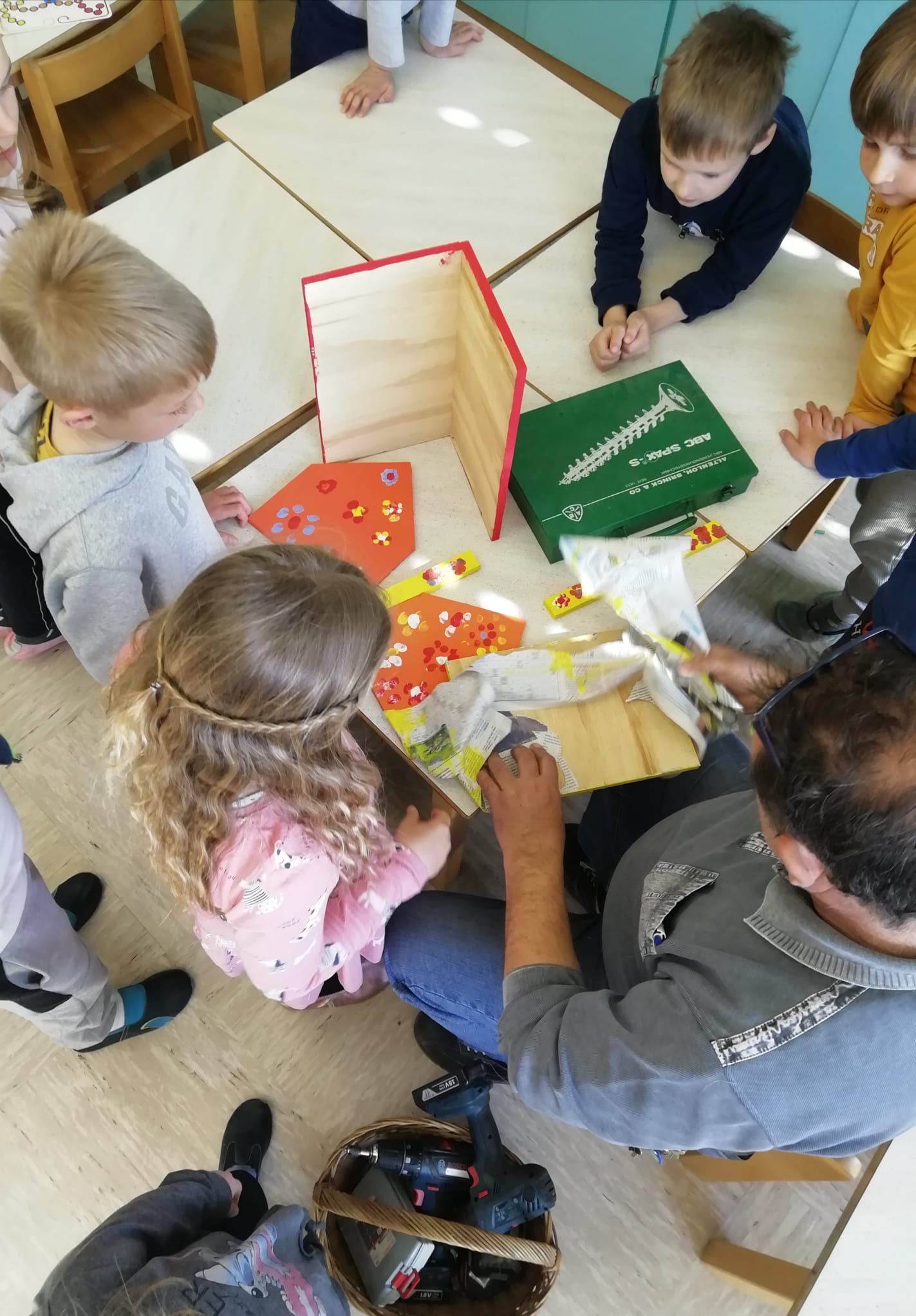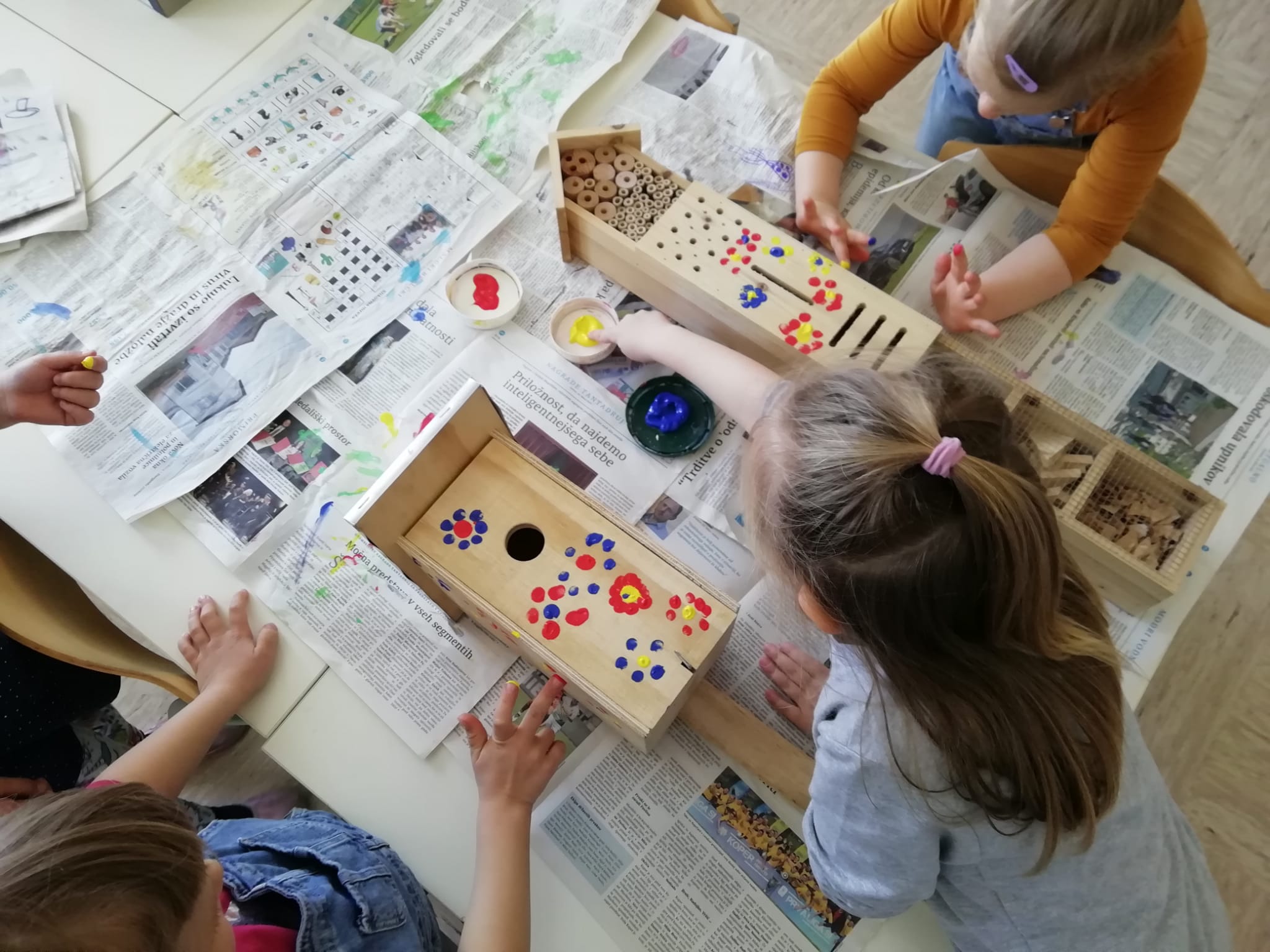 - hišnik Danilo je naredil ptičjo krmilnico in valilnico, ki so ju učenci pobarvali ter pomagali sestaviti,