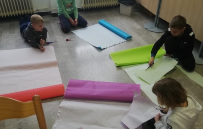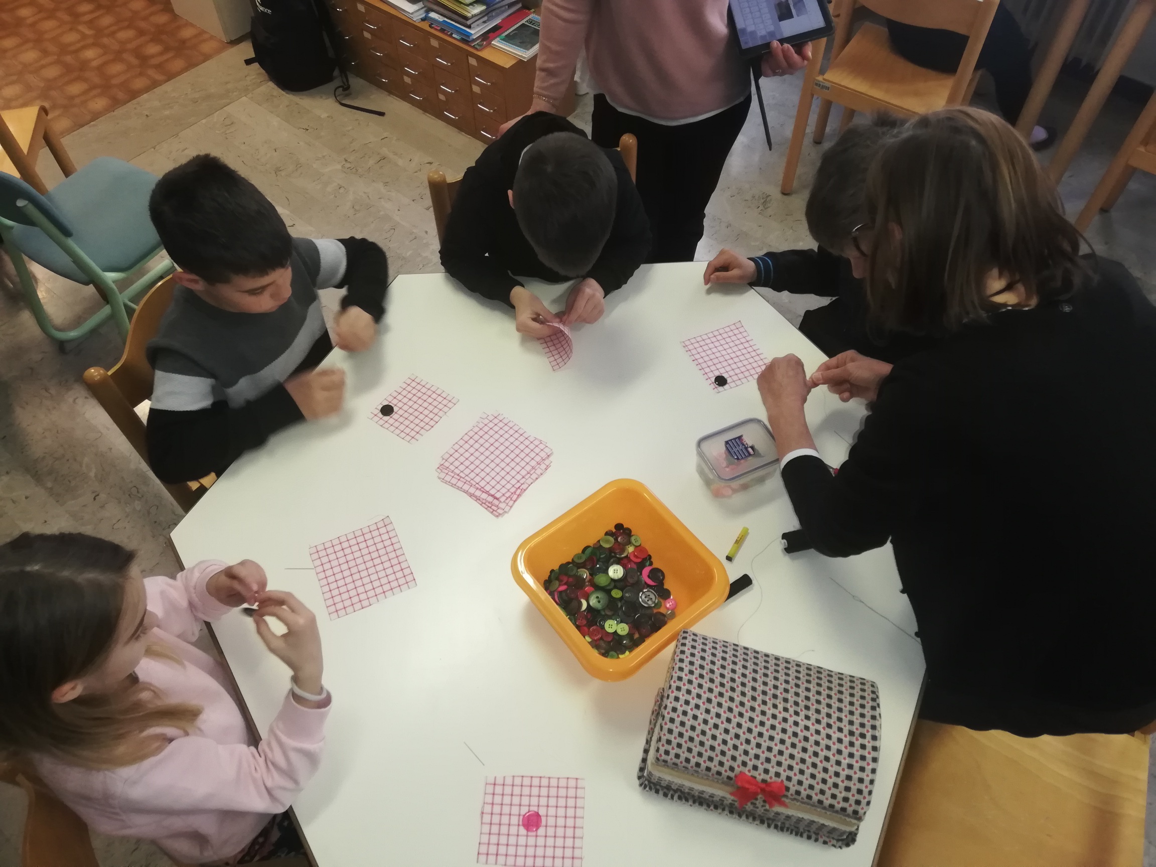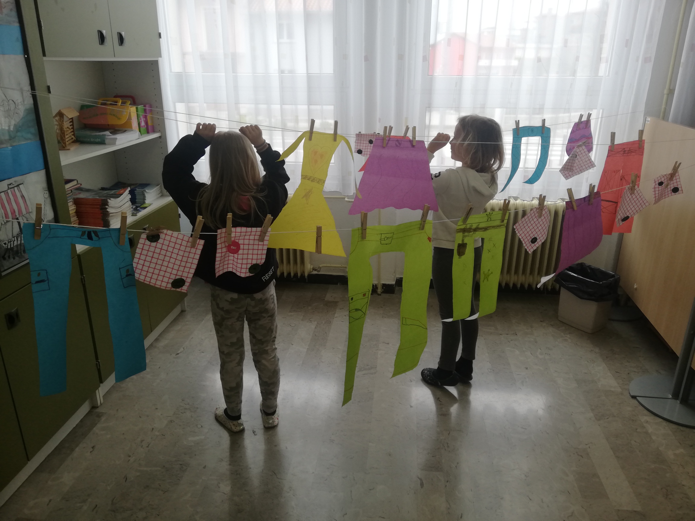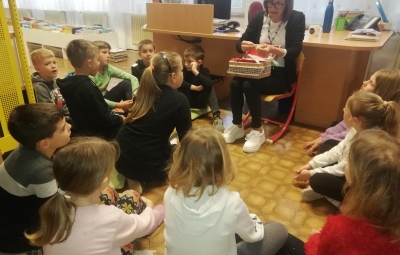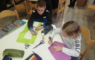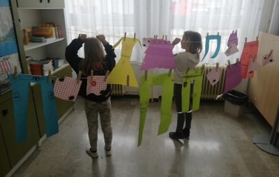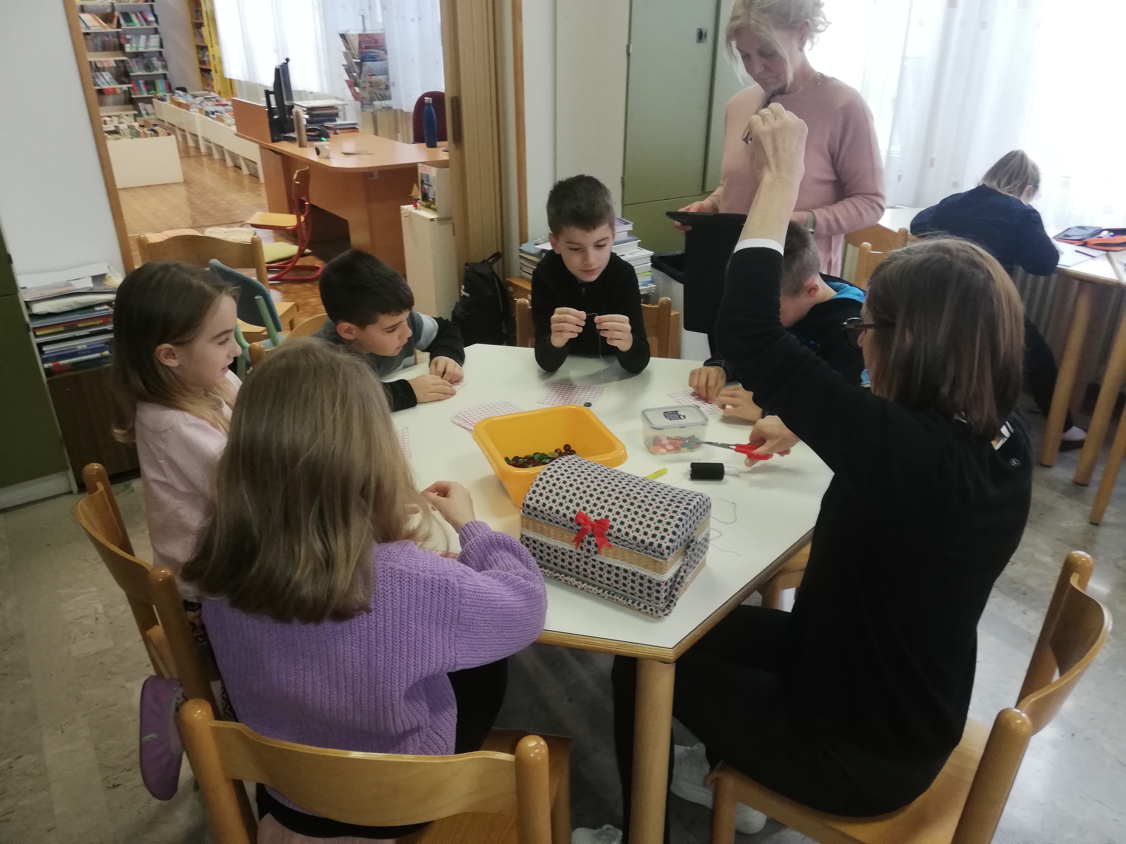 Učenci 2. razreda so bili povabljeni v šolsko knjižnico, kjer jim je knjižničarka Ivanka Škerlj predstavila pravljico pisatelja Dragotina Ketteja z naslovom Šivilja in škarjice. Sledile so dejavnosti po skupinah, v katerih so se učenci preizkusili kot šivilje oziroma krojači. Izdelali so papirnata oblačila ter urili svoje ročne spretnosti s šivanjem gumbov.
