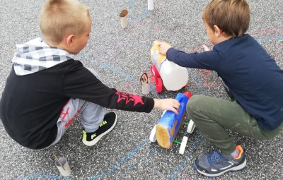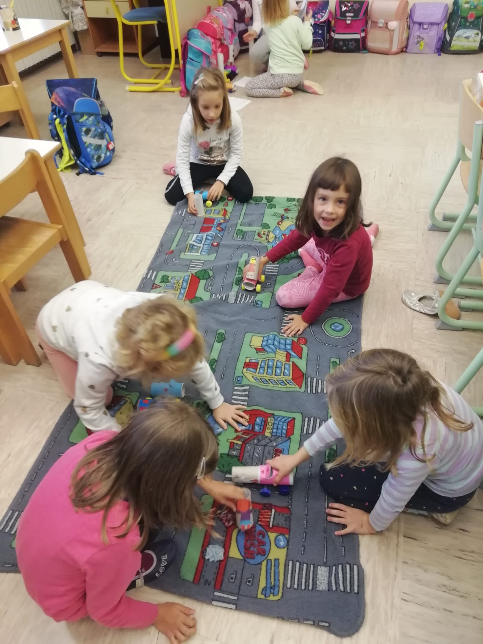 Danes smo se v 1.c in 3.c razredu pogovarjali o varnosti v prometu. Učenci so v učilnicah izdelali avtomobilčke, prometne znake ter pešce. Na igrišču pred šolo pa so s kredami in prometnimi znaki pripravili pravi poligon. Kot vozniki so upoštevani prometne znake, pešci pa so vadili hojo čez prehod za pešce.