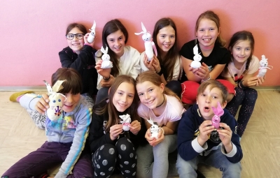 Tudi v četrtem razredu smo praznično razpoloženi. Pred velikonočnimi prazniki smo si sešili zajčke, ki bodo krasili naše domove.