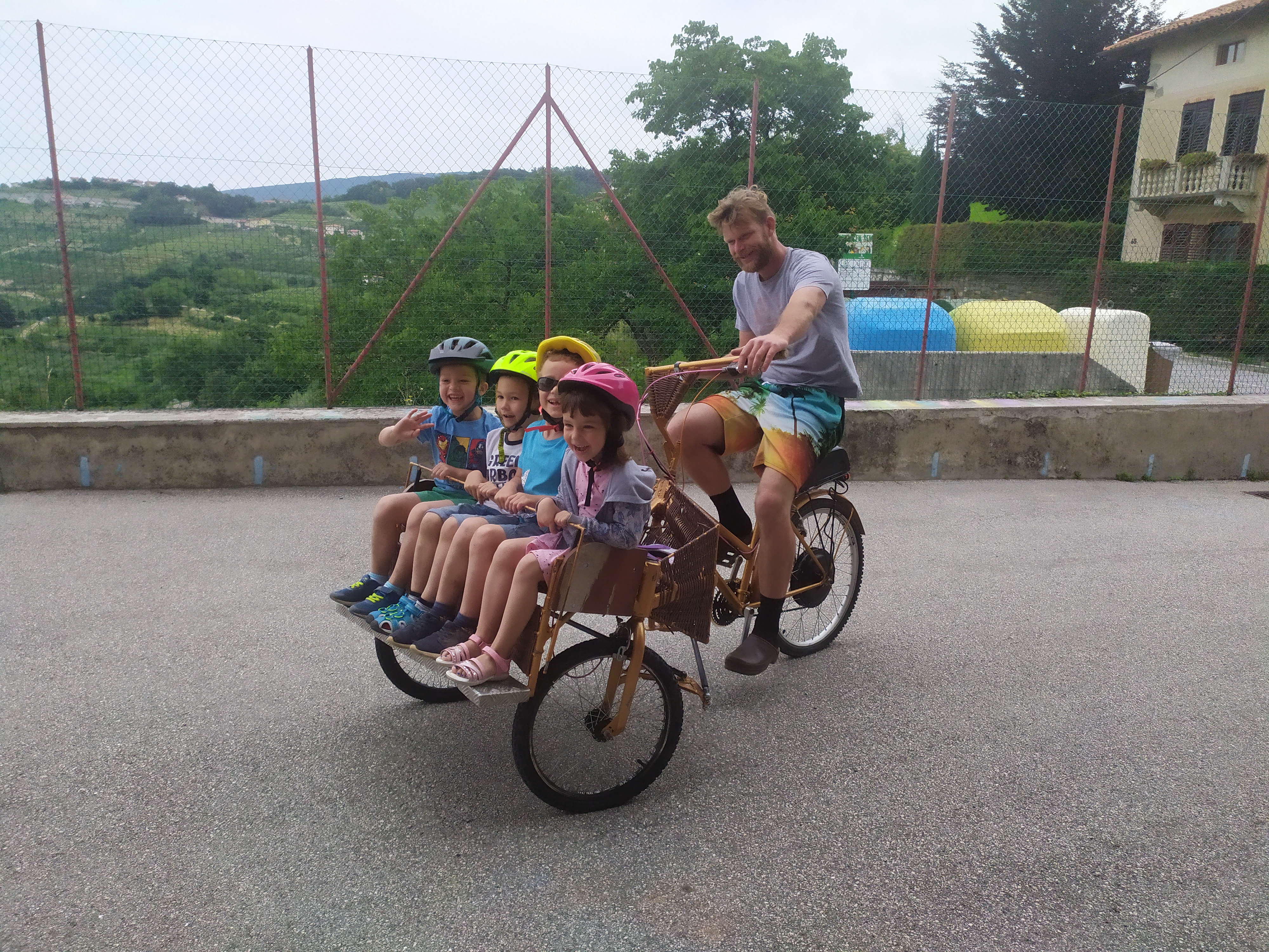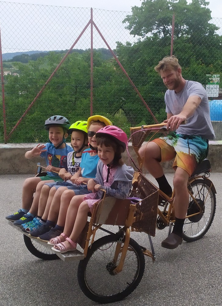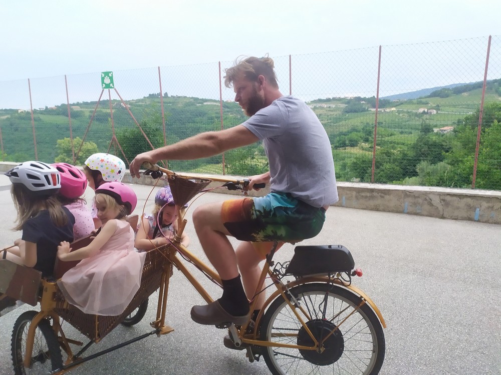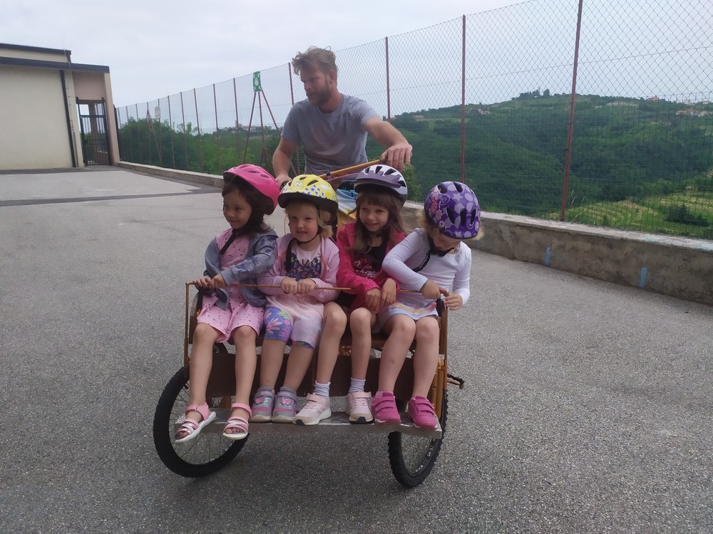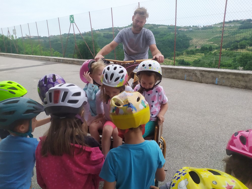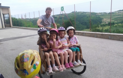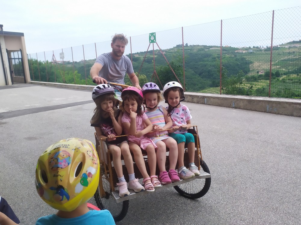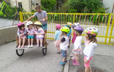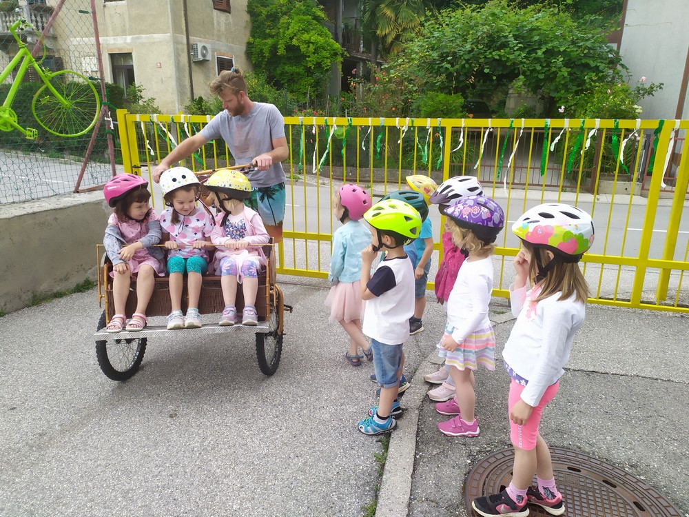 Danes je bil za čebelice iz vrtca Kojsko prav poseben dan. V vrtec smo prinesli čelade, saj nam je Aurorin tata obljubil, da nas bo peljal z rikšo. Komaj smo čakali, da se je pripeljal na vrtčevsko igrišče in že smo se gnetli na sedežke. Uživali smo v vožnji, se smejali, vriskali...Ta dan nam bo ostal v lepem spominu.