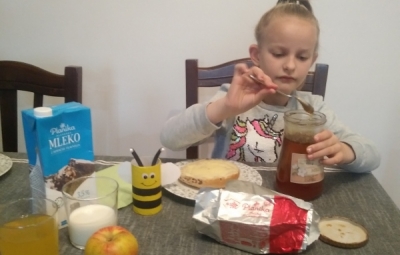 Kljub pouku na daljavo smo tretješolci tudi letos obeležili Tradicionalni slovenski zajtrk. O njem smo se pogovarjali že v torek, na skupnem srečanju. V četrtek smo si po navodilih izdelali čebelice, saj brez njih ne bi imeli kaj jesti. Potrudili smo se, da je bil na mizi med ter druga zdrava in doma pridelana hrana, ki je bolj sveža in okusna.